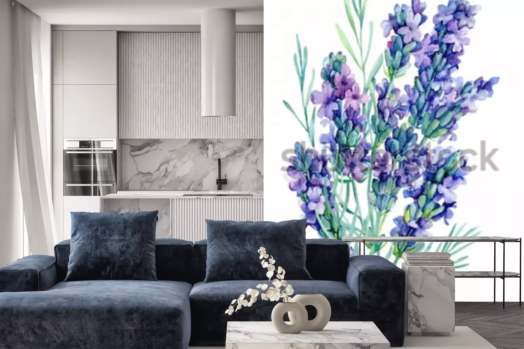 Sticker Lavendelbloemen geschilderd met aquarellen