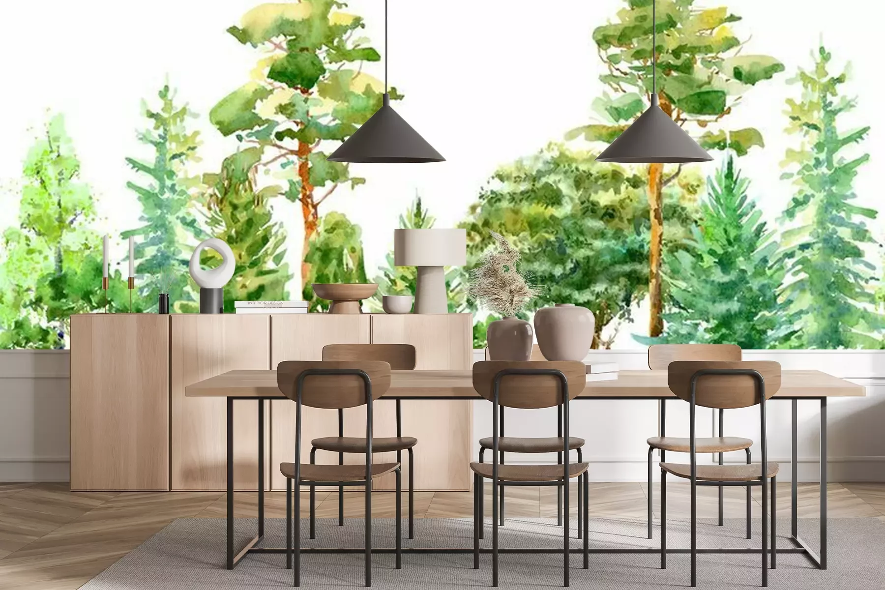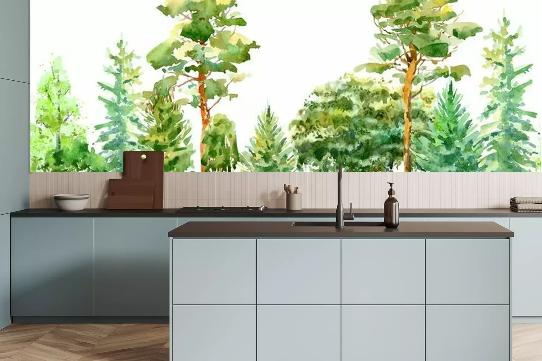 Sticker Lentebomen in een Europees bos
