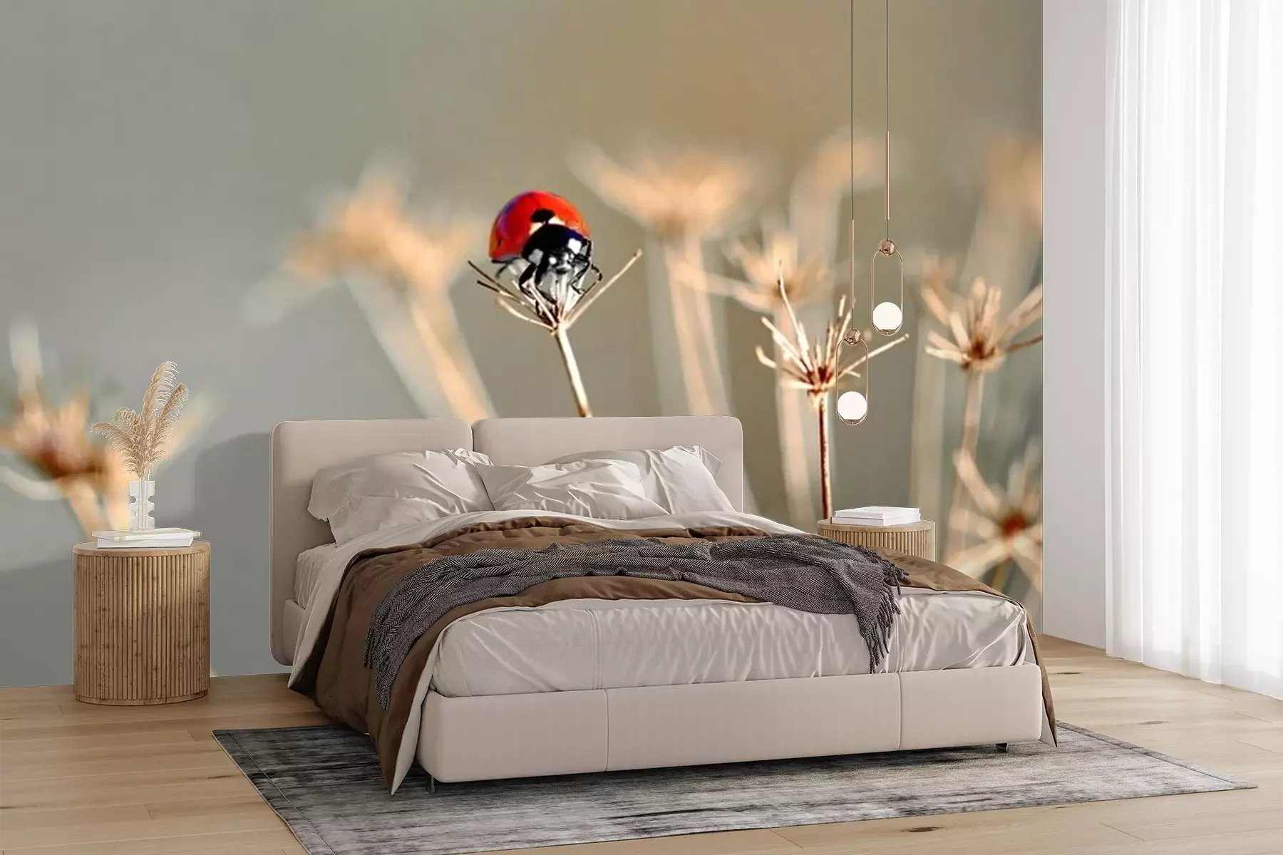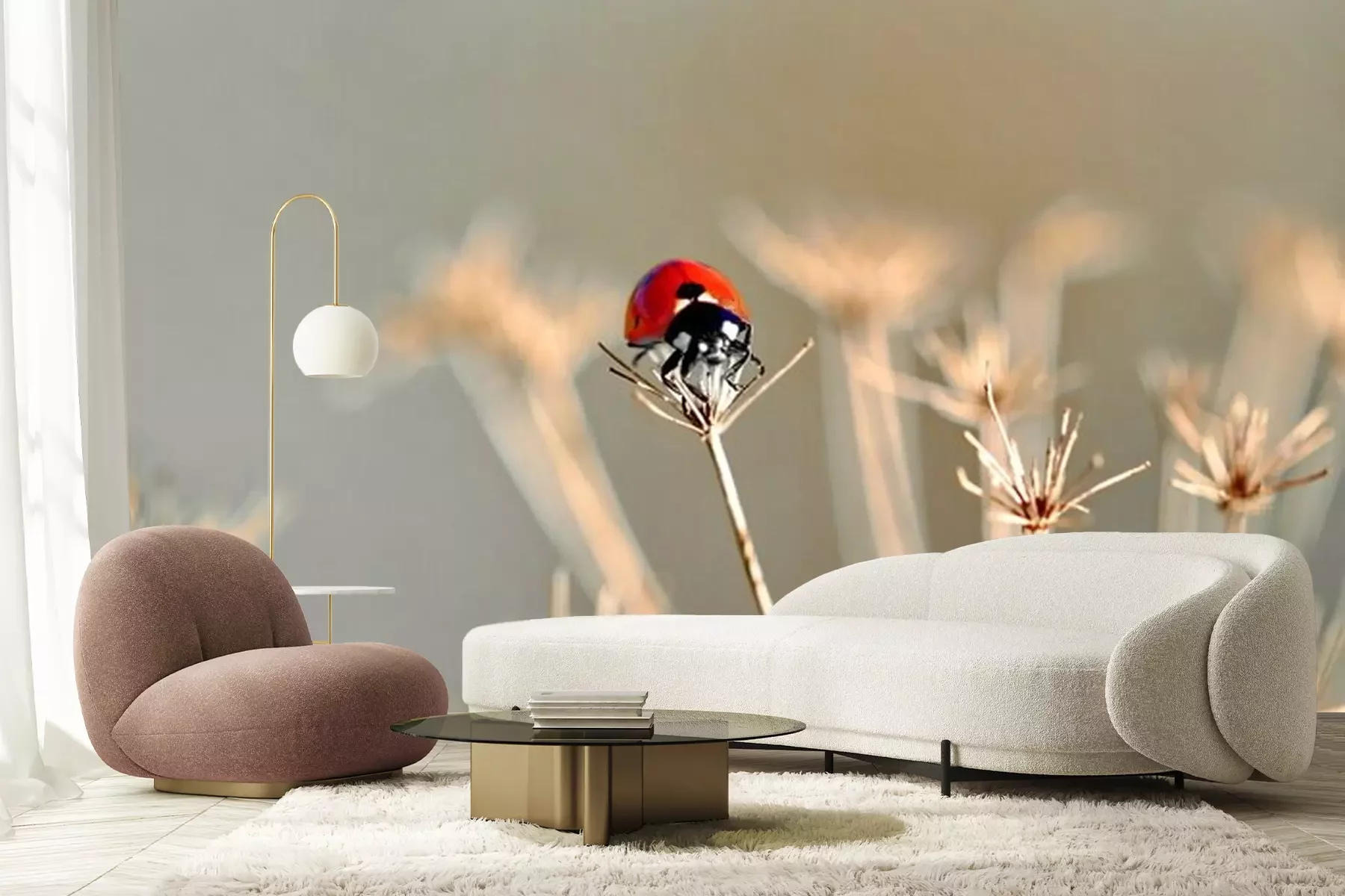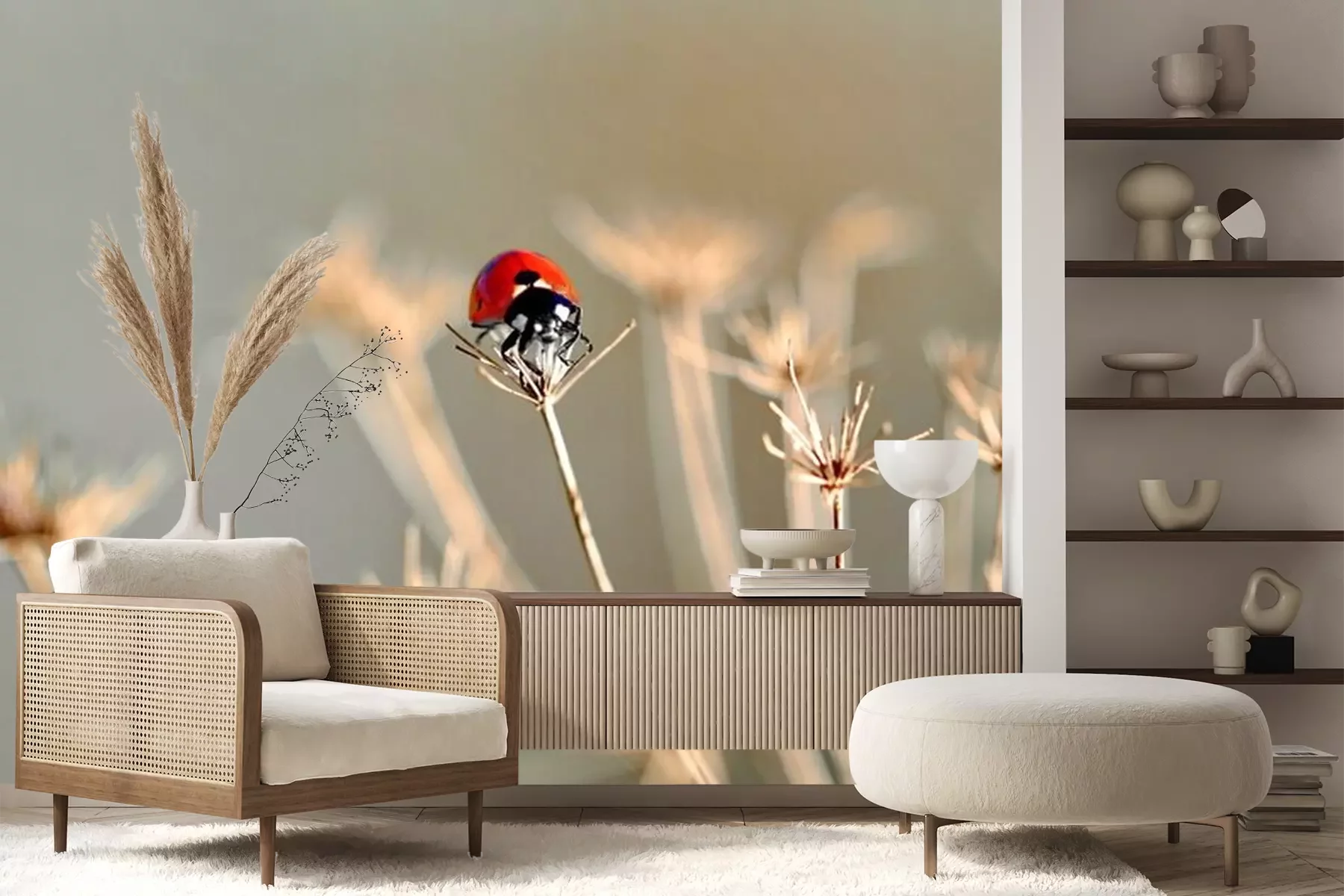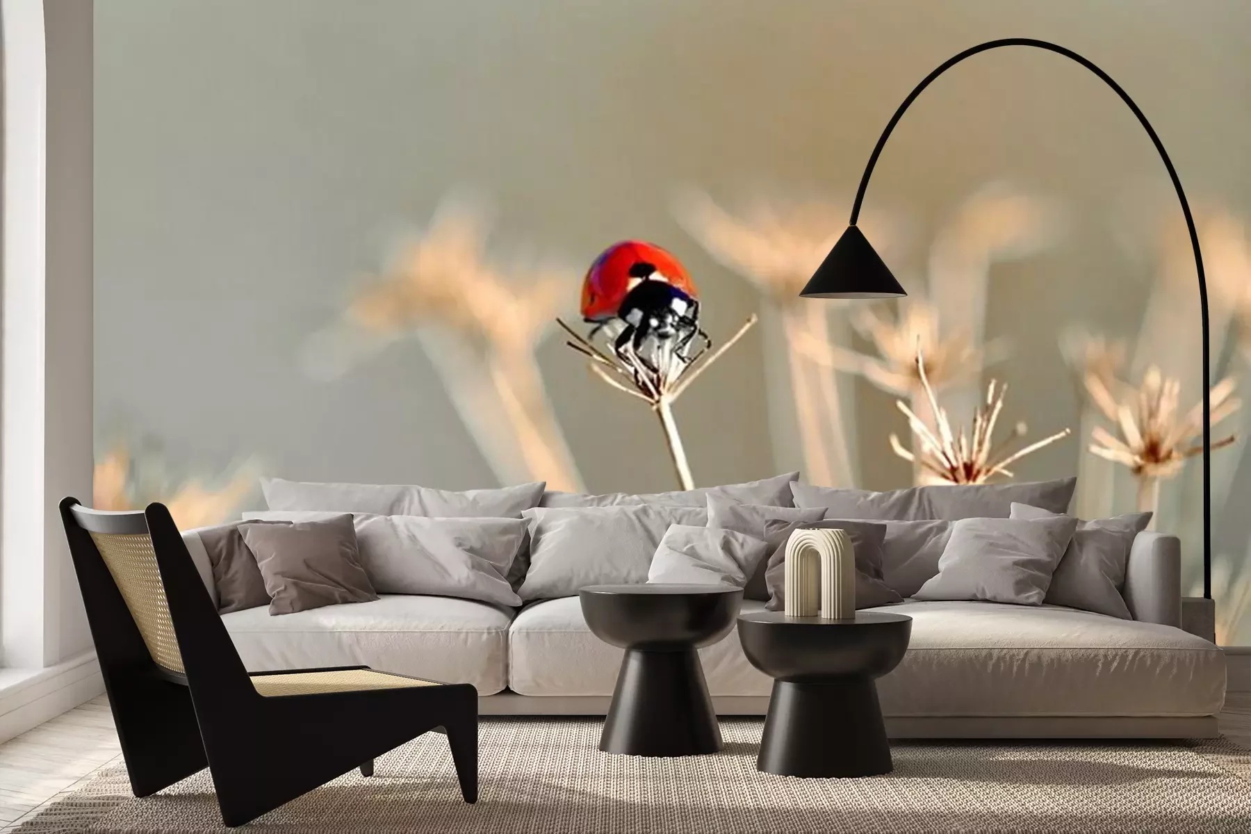 Sticker Lieveheersbeestje op een gedroogde bloem