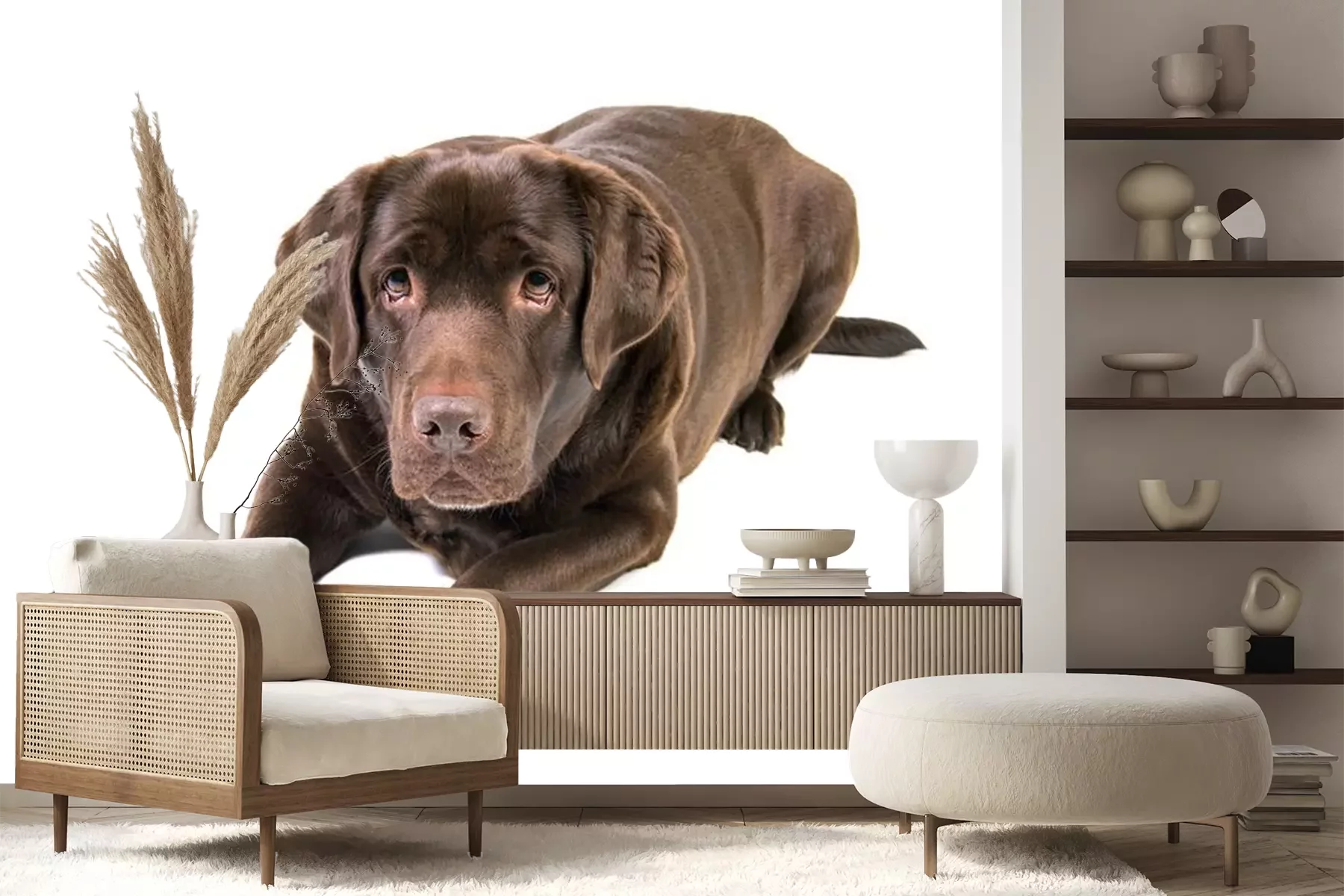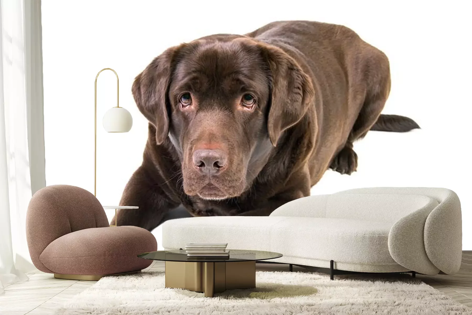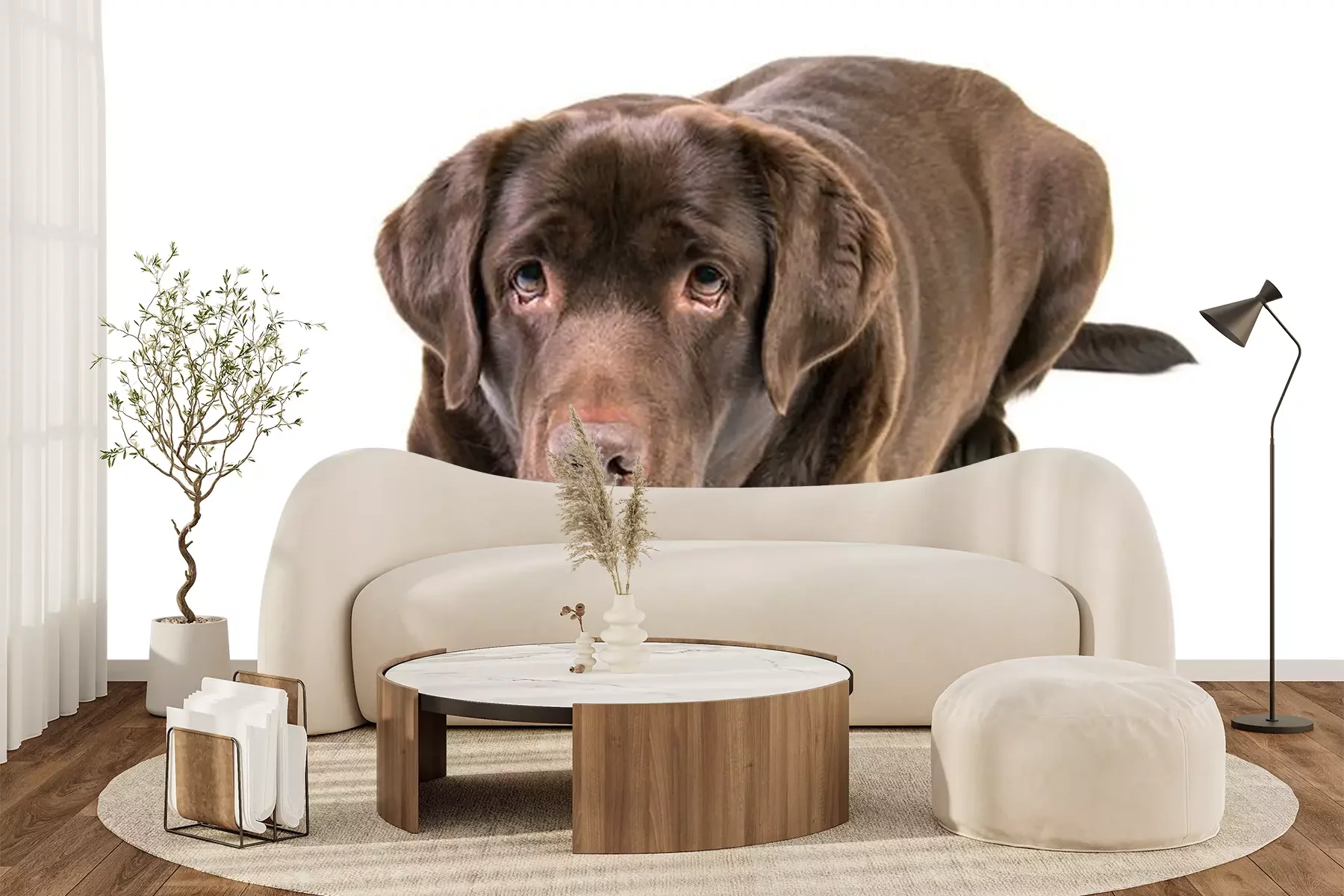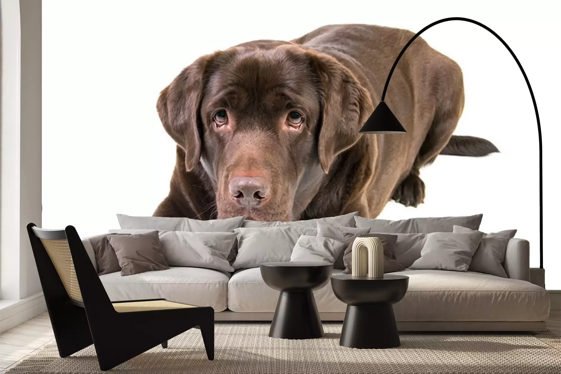 Labrador op witte achtergrondProbleemloze bezorging verzorgd door vertrouwde vervoerders