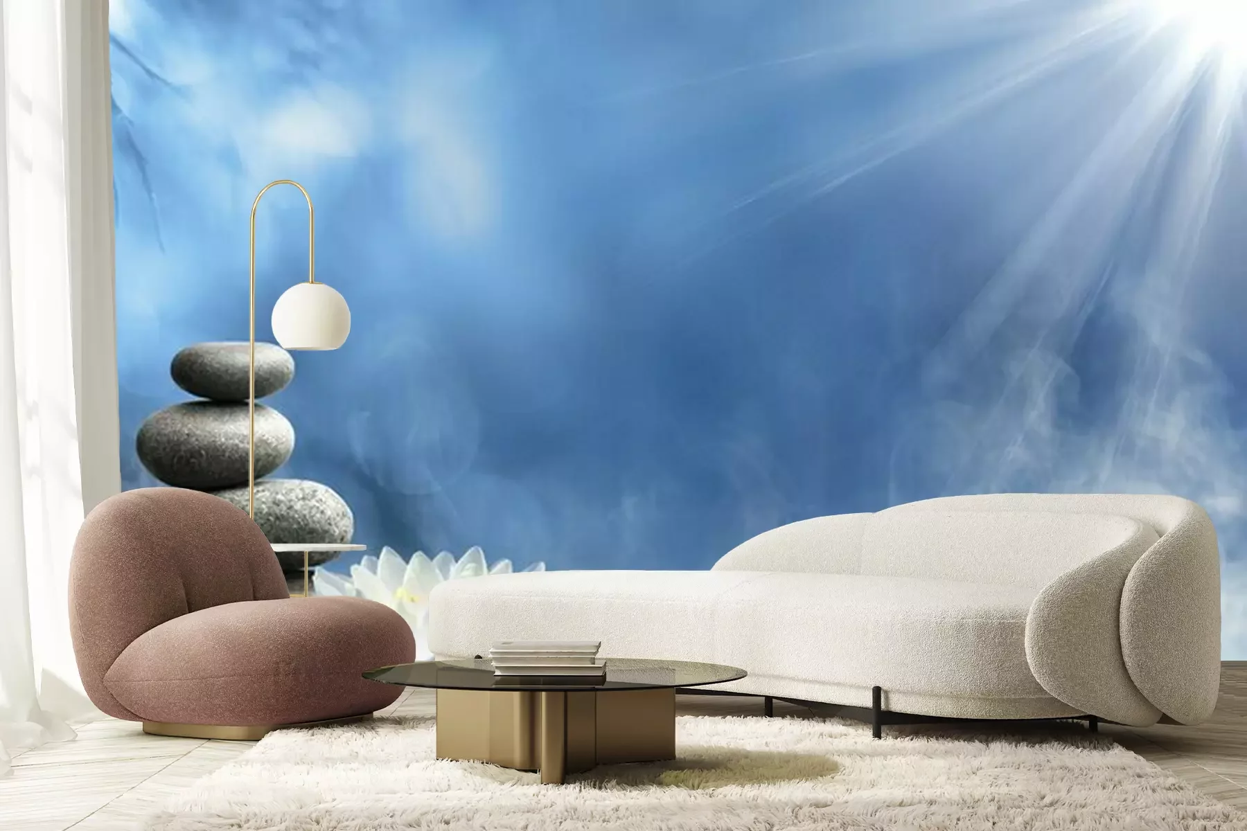 Bamboebloemen en stenenFotobehang