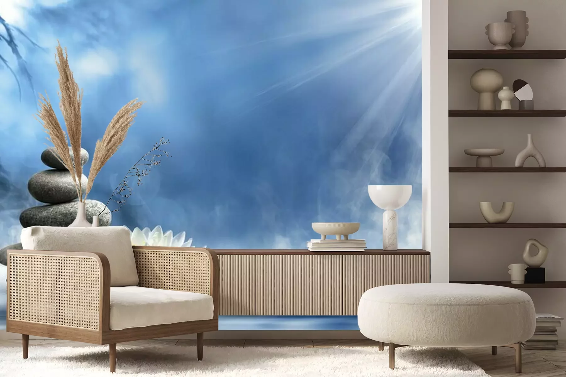 Natuur met stenen en waterlelieFotobehang