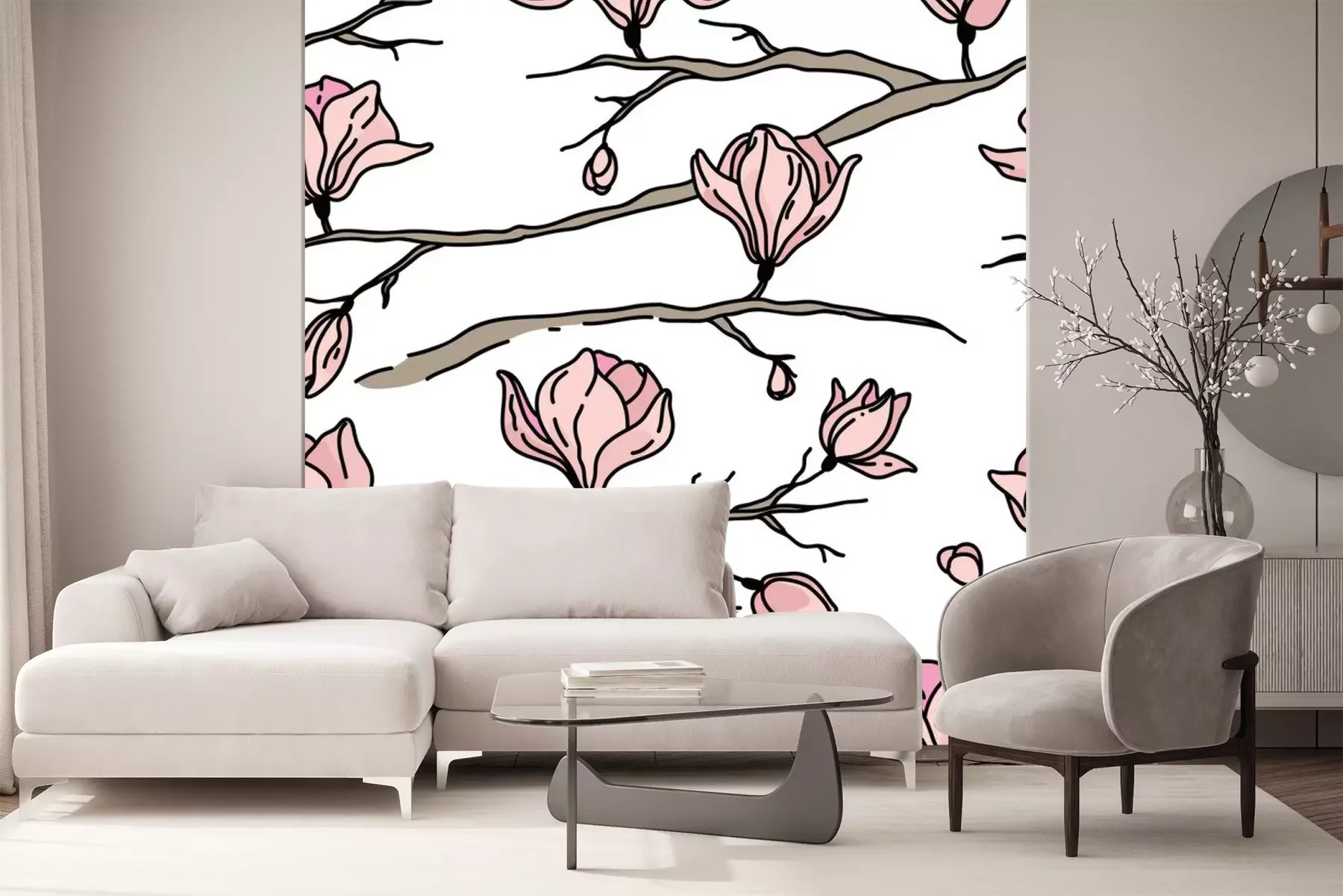 Blauw en roze bloemmotiefBehang