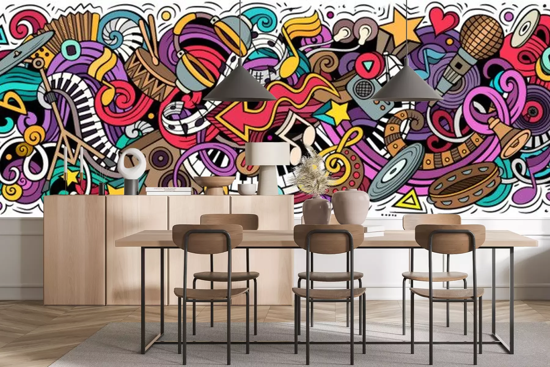 Noten en instrumenten kleurrijke compositieProbleemloze bezorging verzorgd door vertrouwde vervoerders