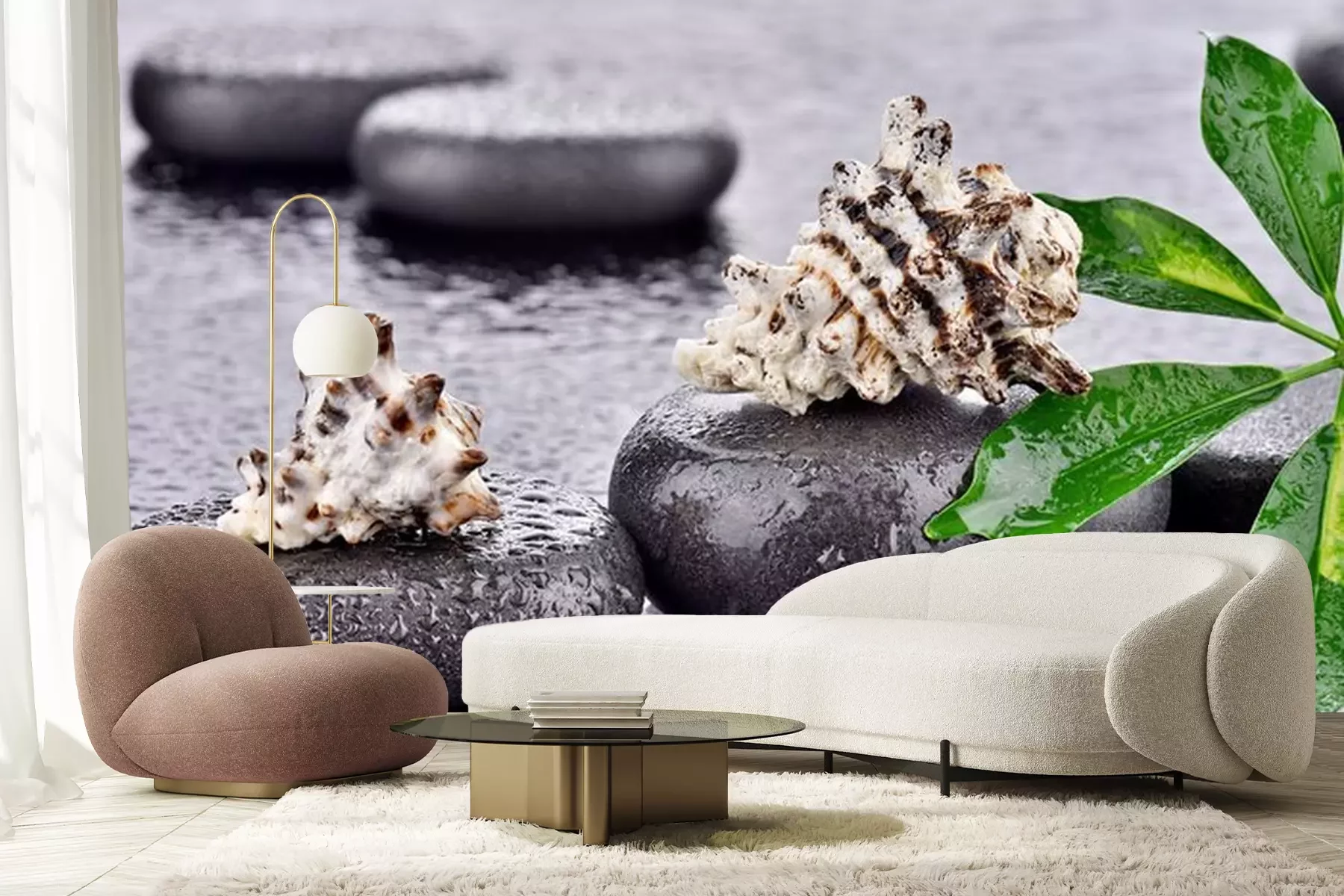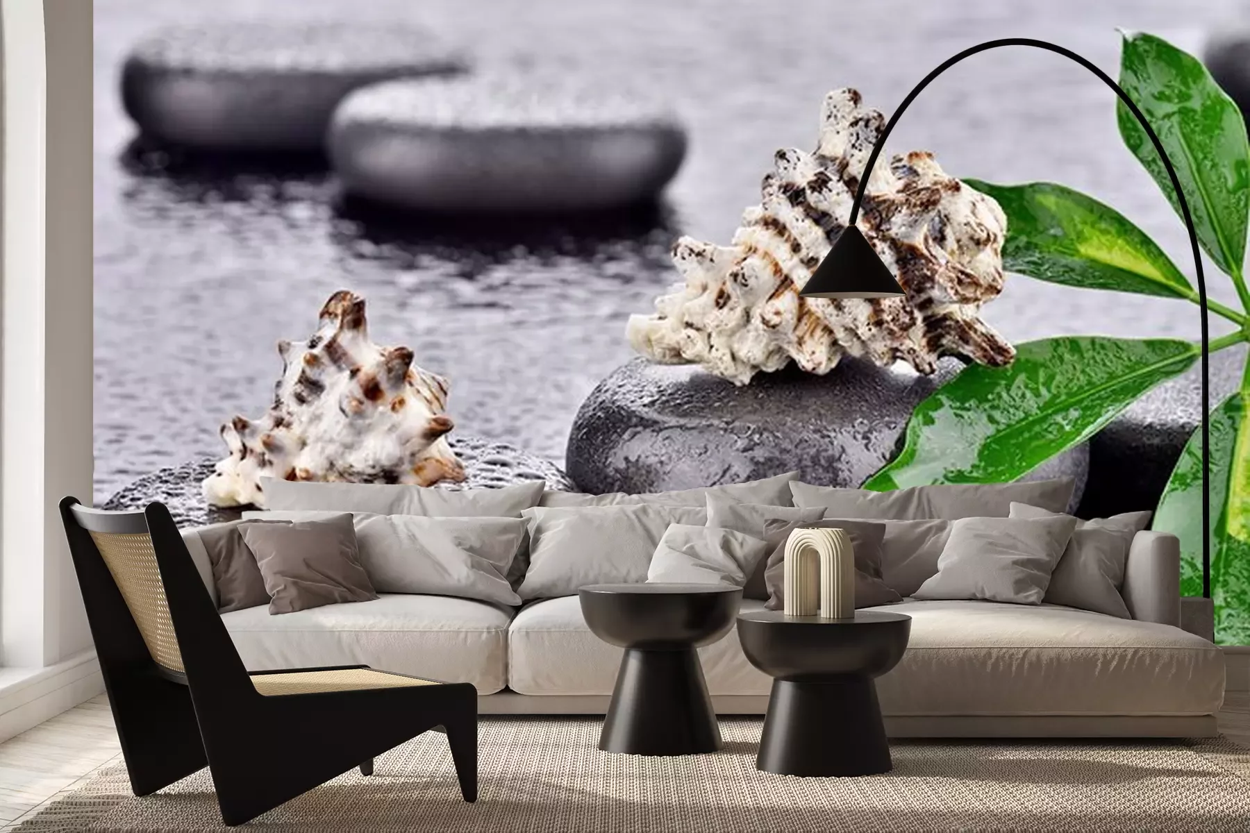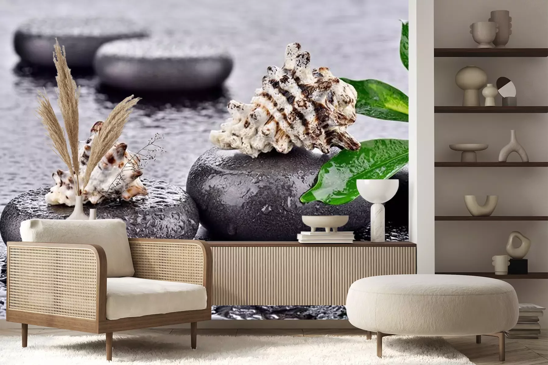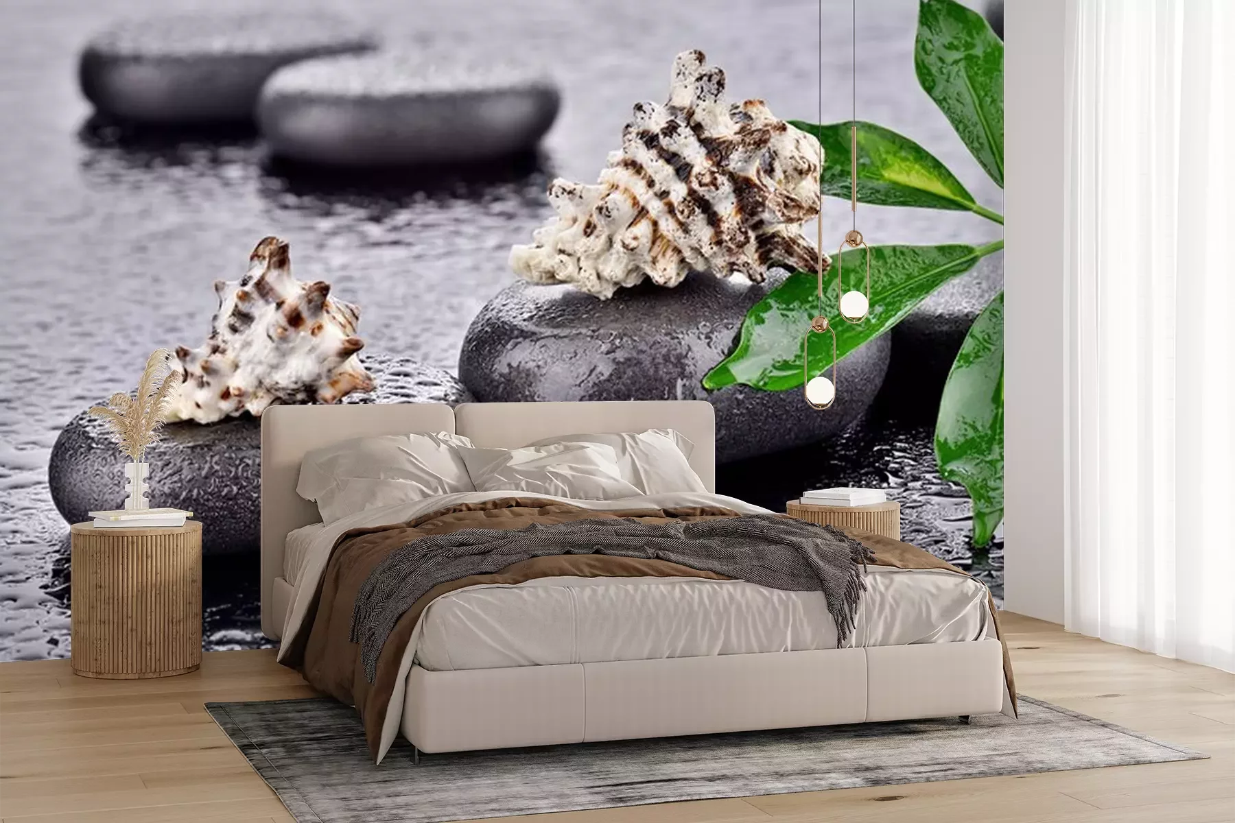 Kamień bazaltowy z liściem w tleProbleemloze bezorging verzorgd door vertrouwde vervoerders