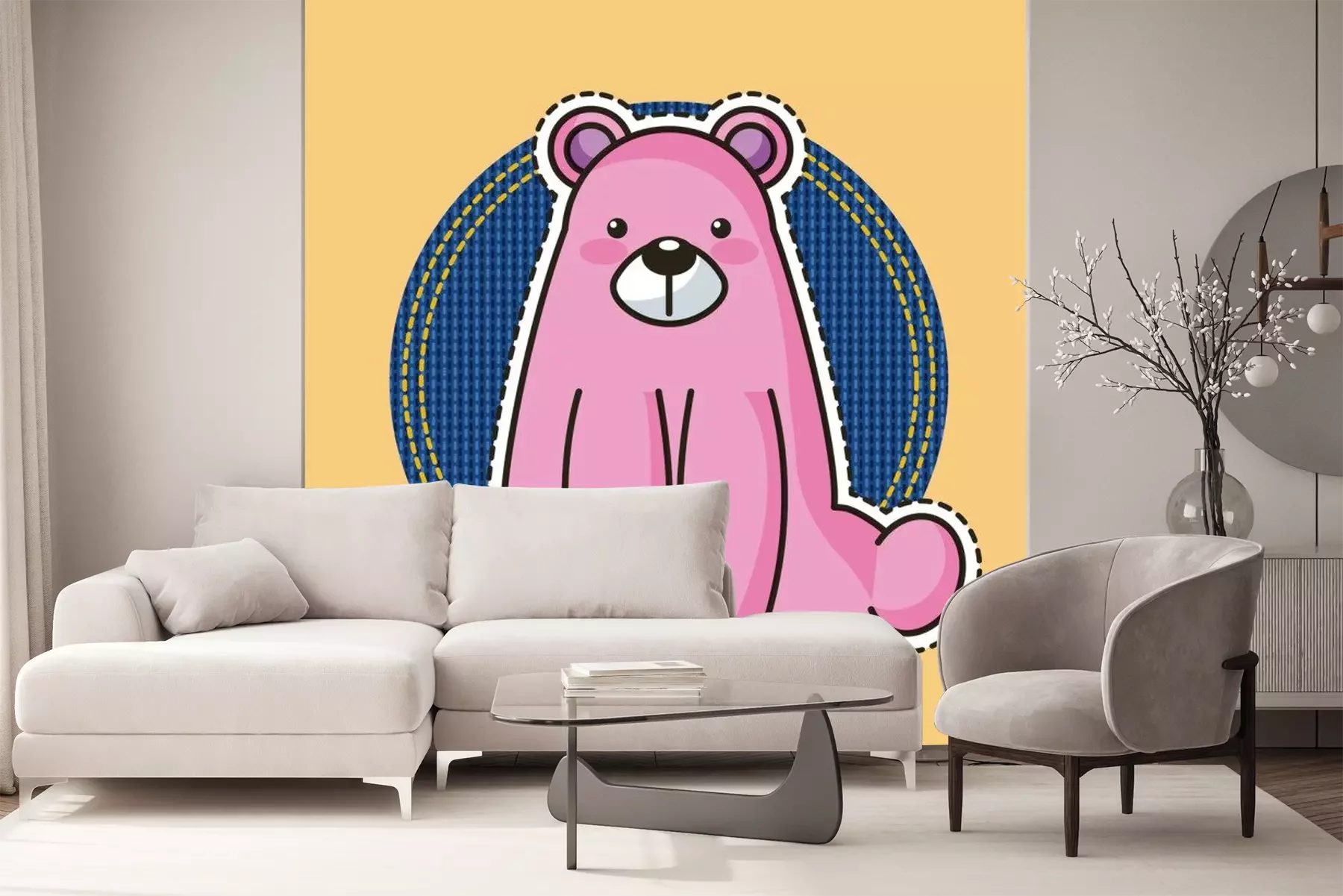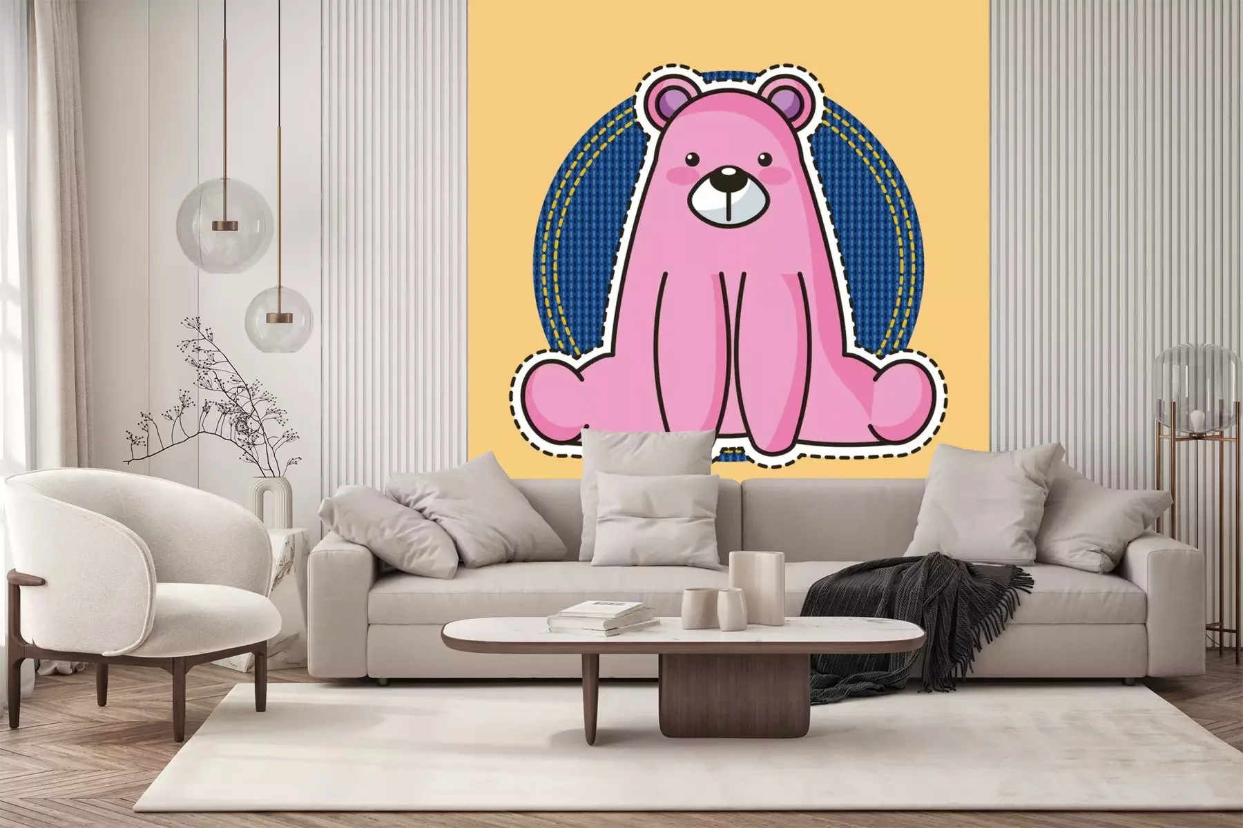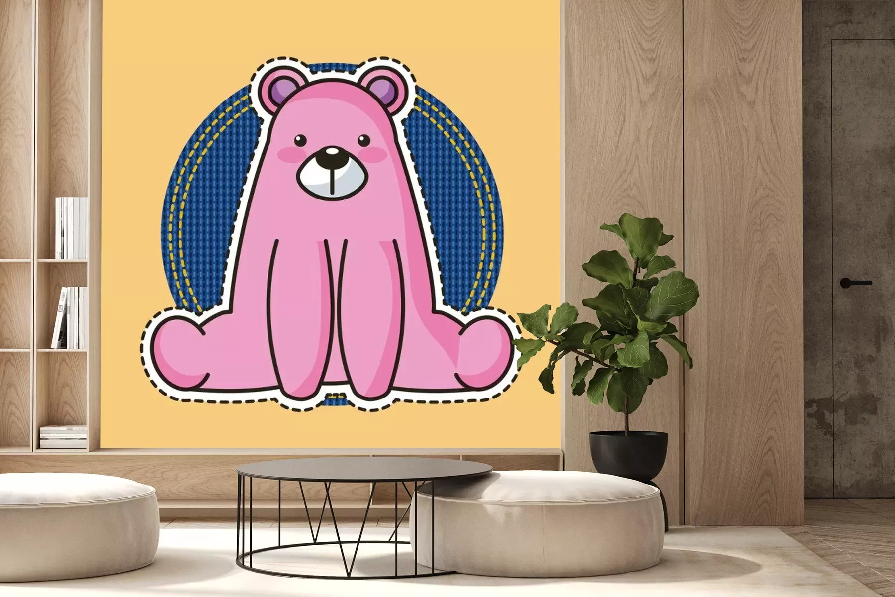 Sticker pink bear teddy sit patch sticker fashion vector illustration