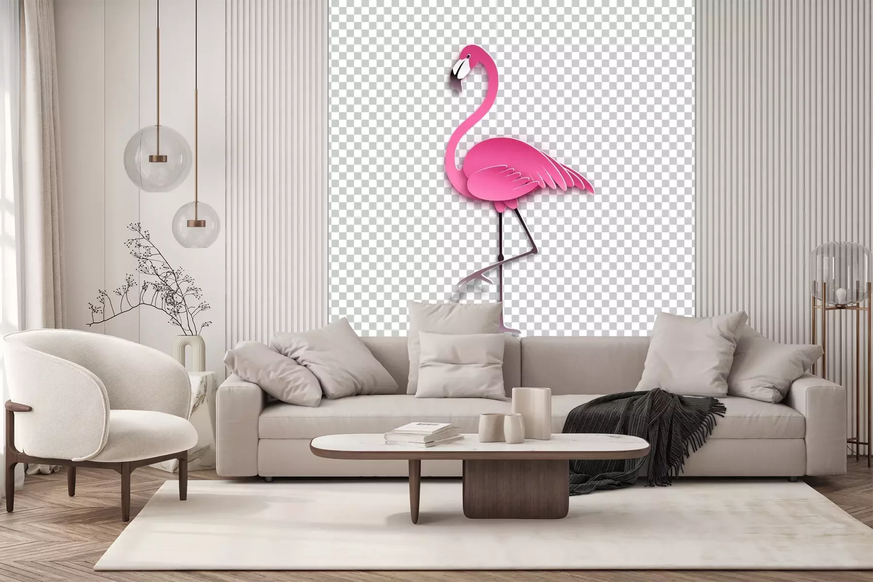 Sticker Pink flamingo standing on one leg. African exotic bird, cool sticker for birthday cards, party invitations, for tropical design element. Summer decoration, paper cut out style, vector illustration