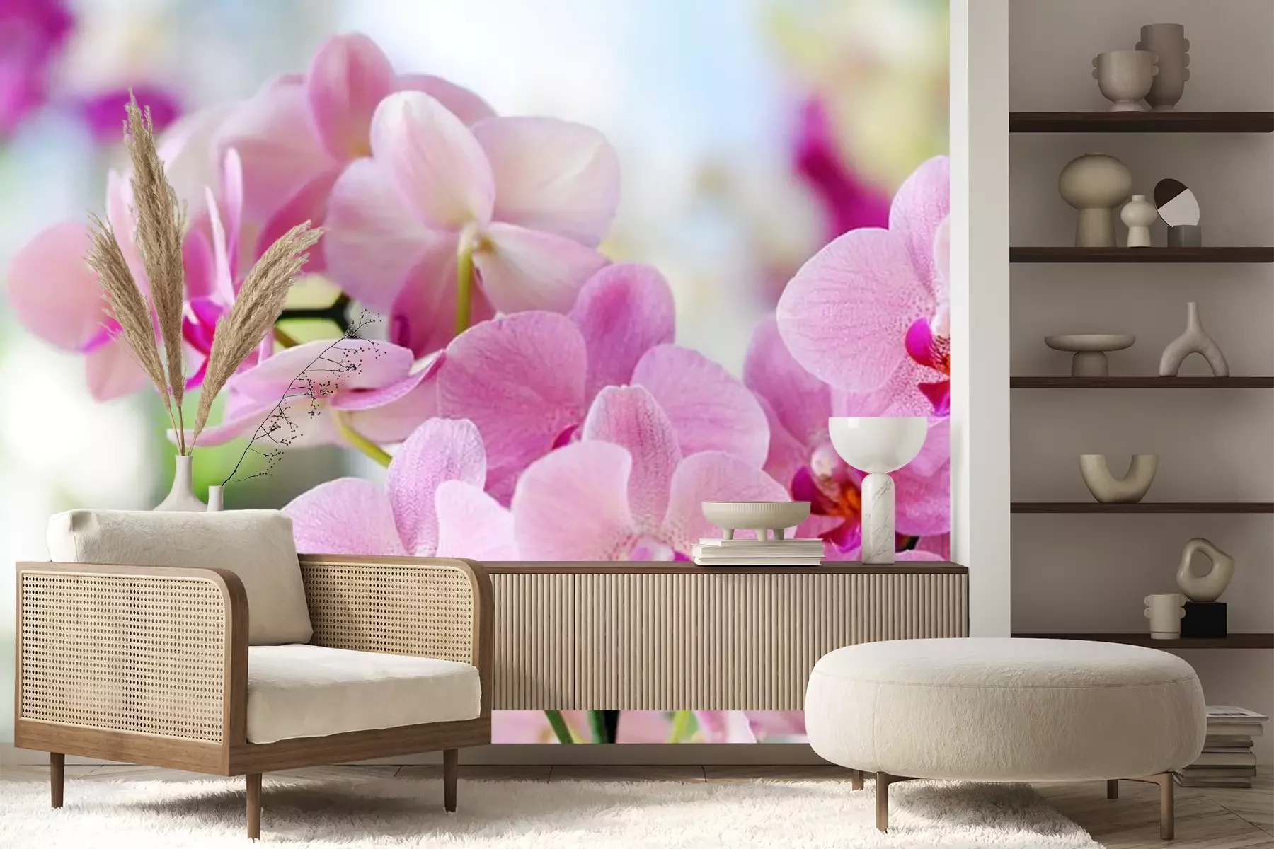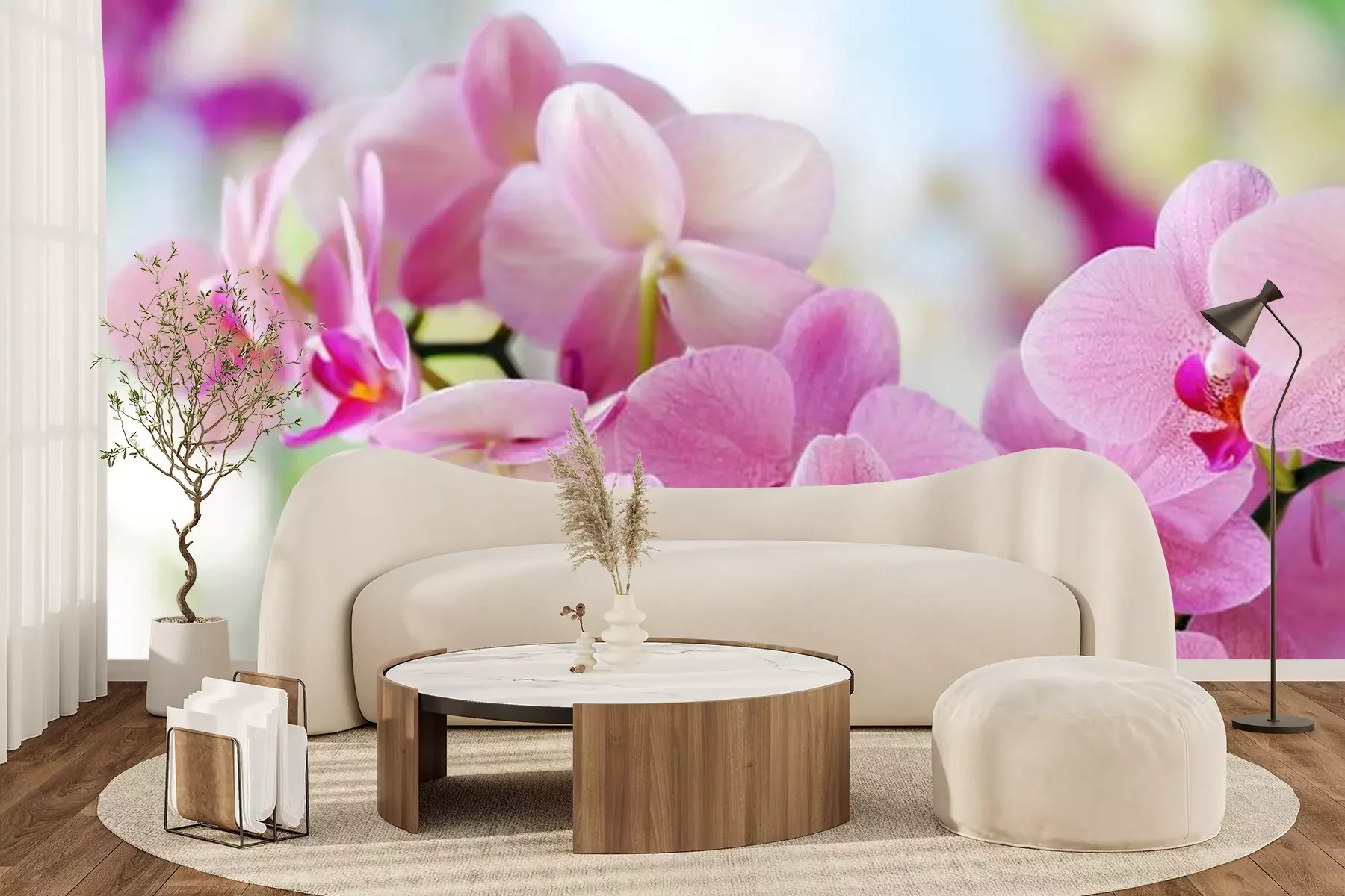 Roze bloemen in volle bloeiFotobehang