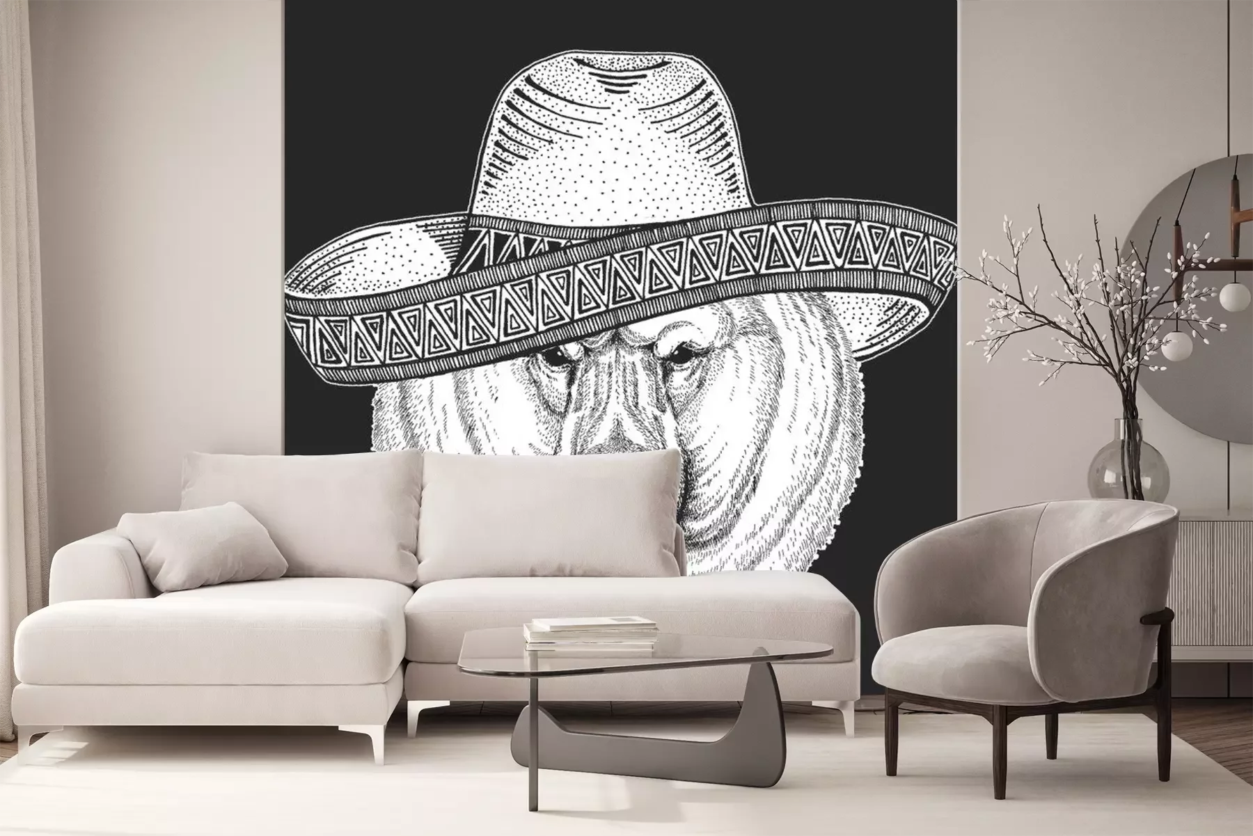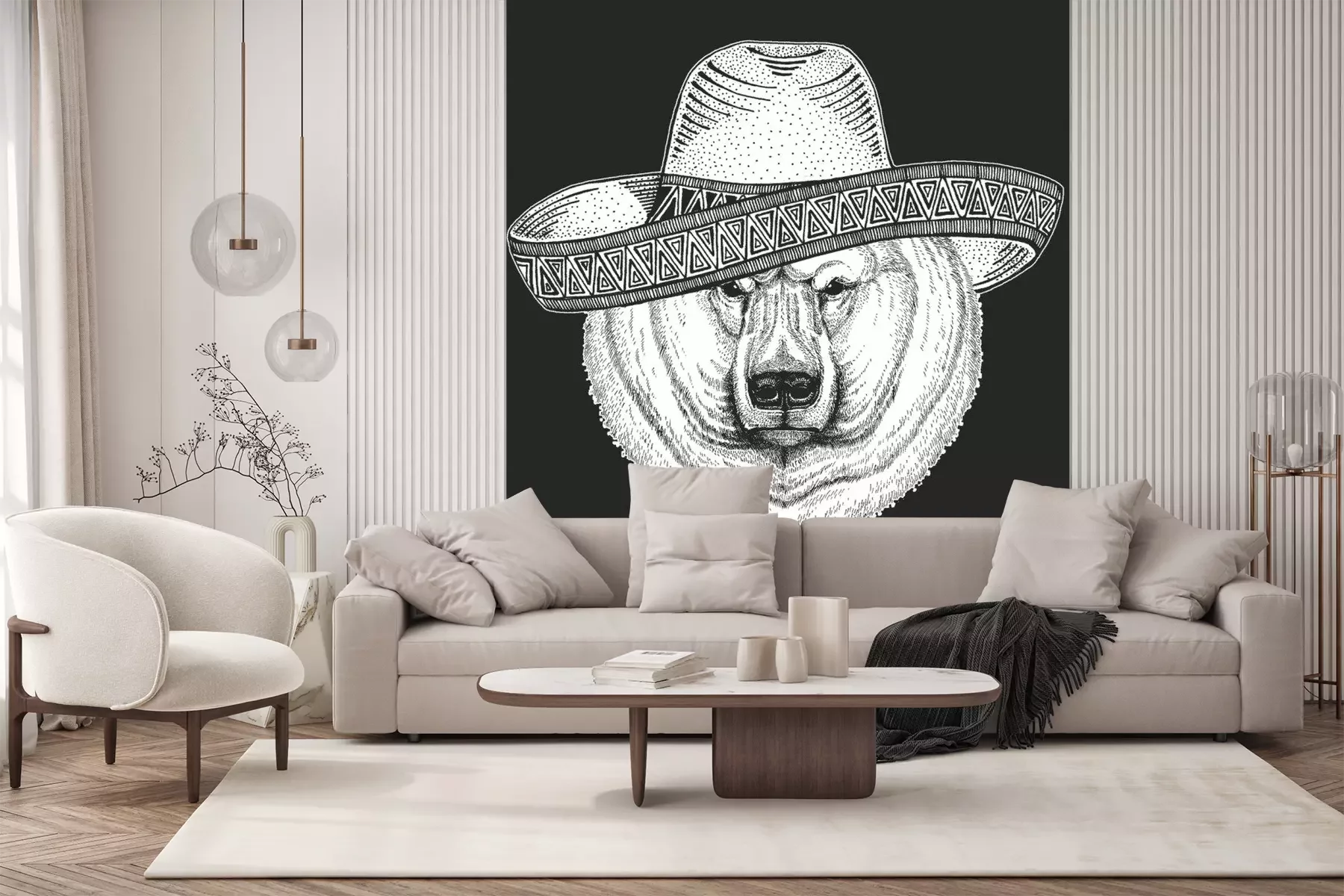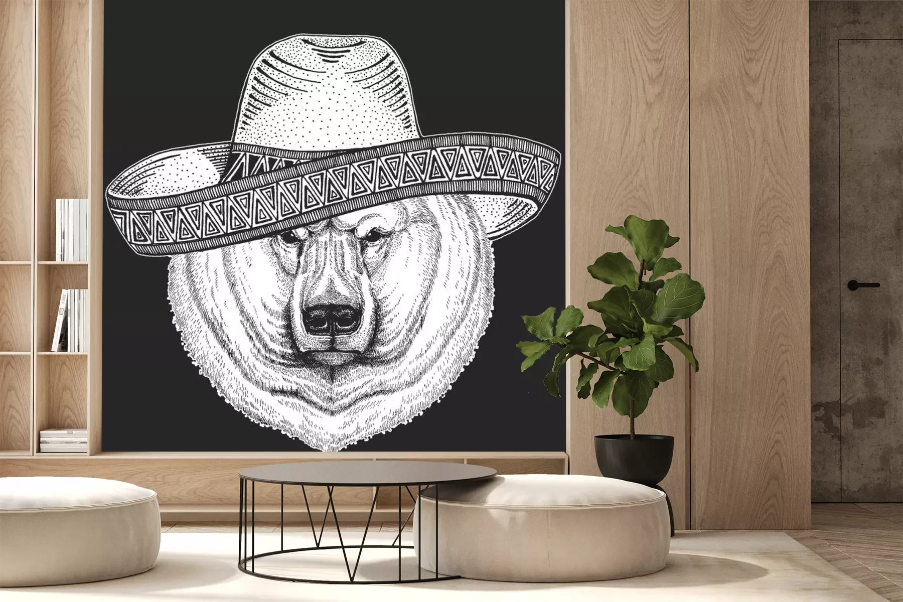 Sticker Polar bear portrait. Sombrero is traditional mexican hat. Mexico. Head of wild animal