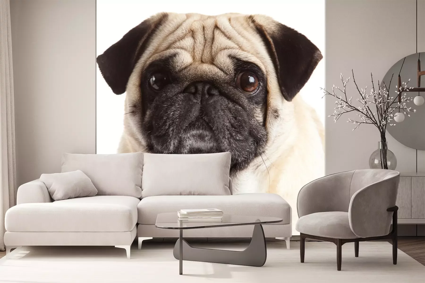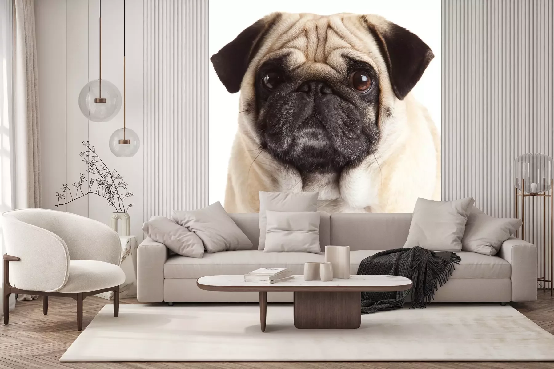 Pug Hond met laptop.Probleemloze bezorging verzorgd door vertrouwde vervoerders