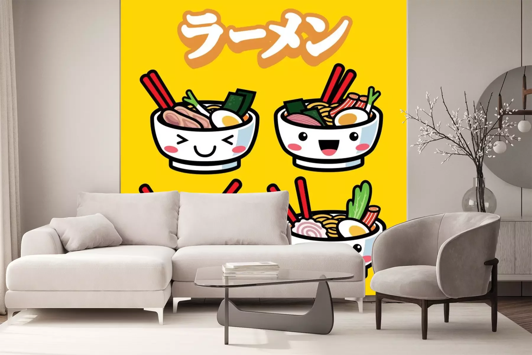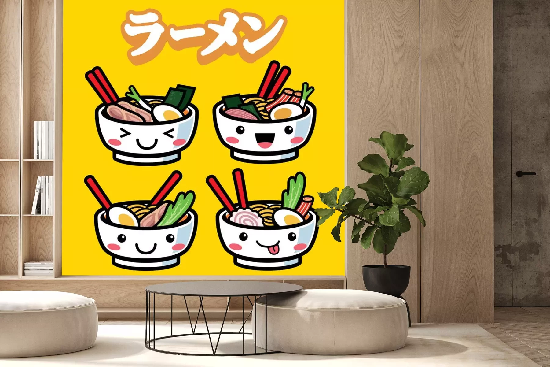 Sticker ramen met schattige cartoonstijl