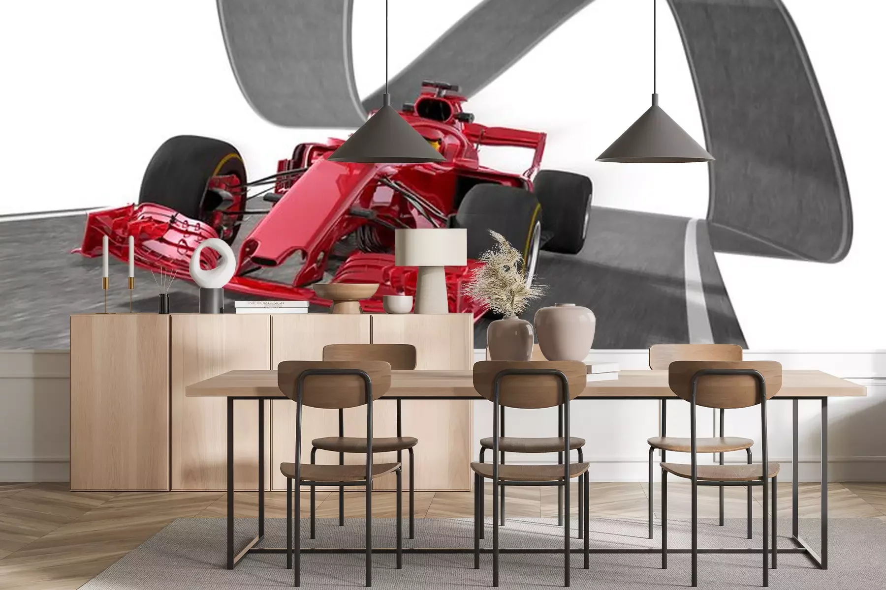 Rode raceautoFotobehang