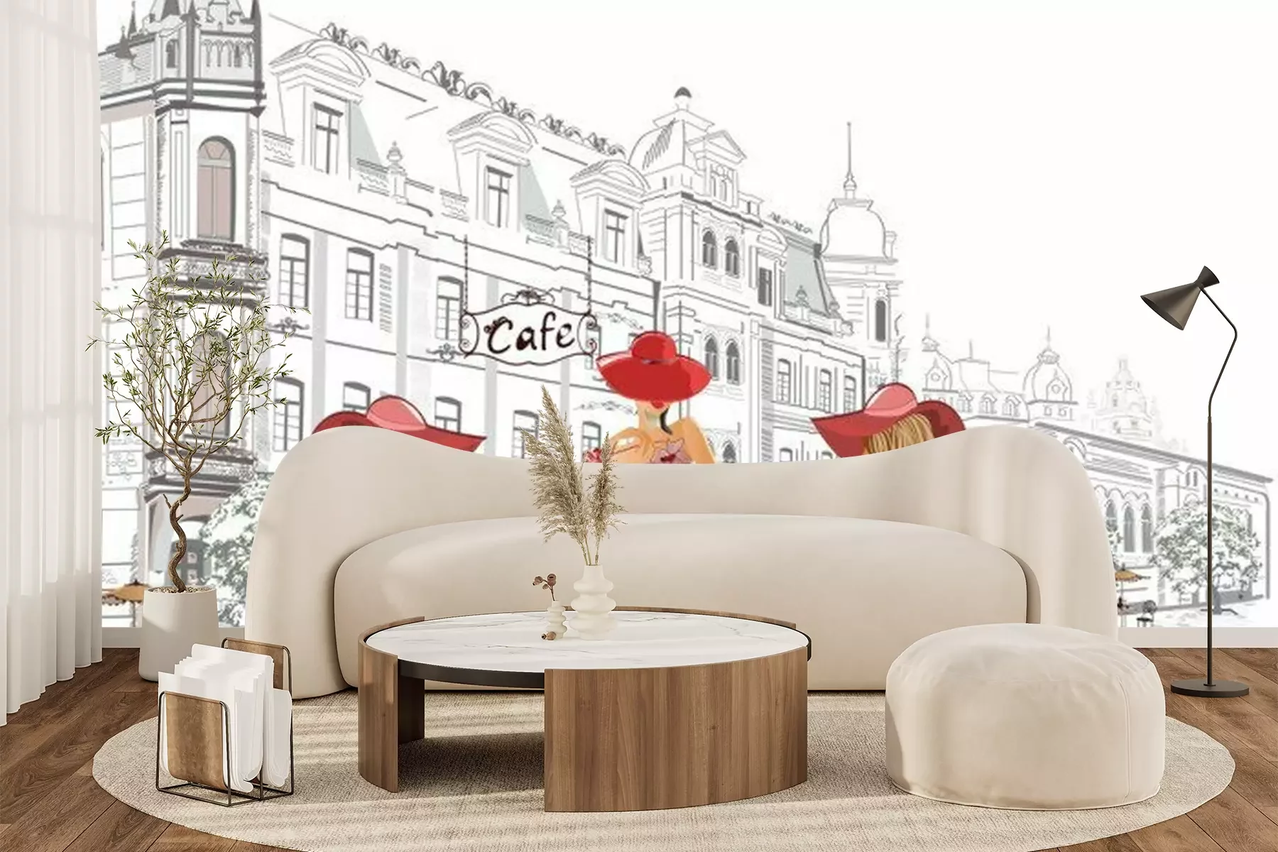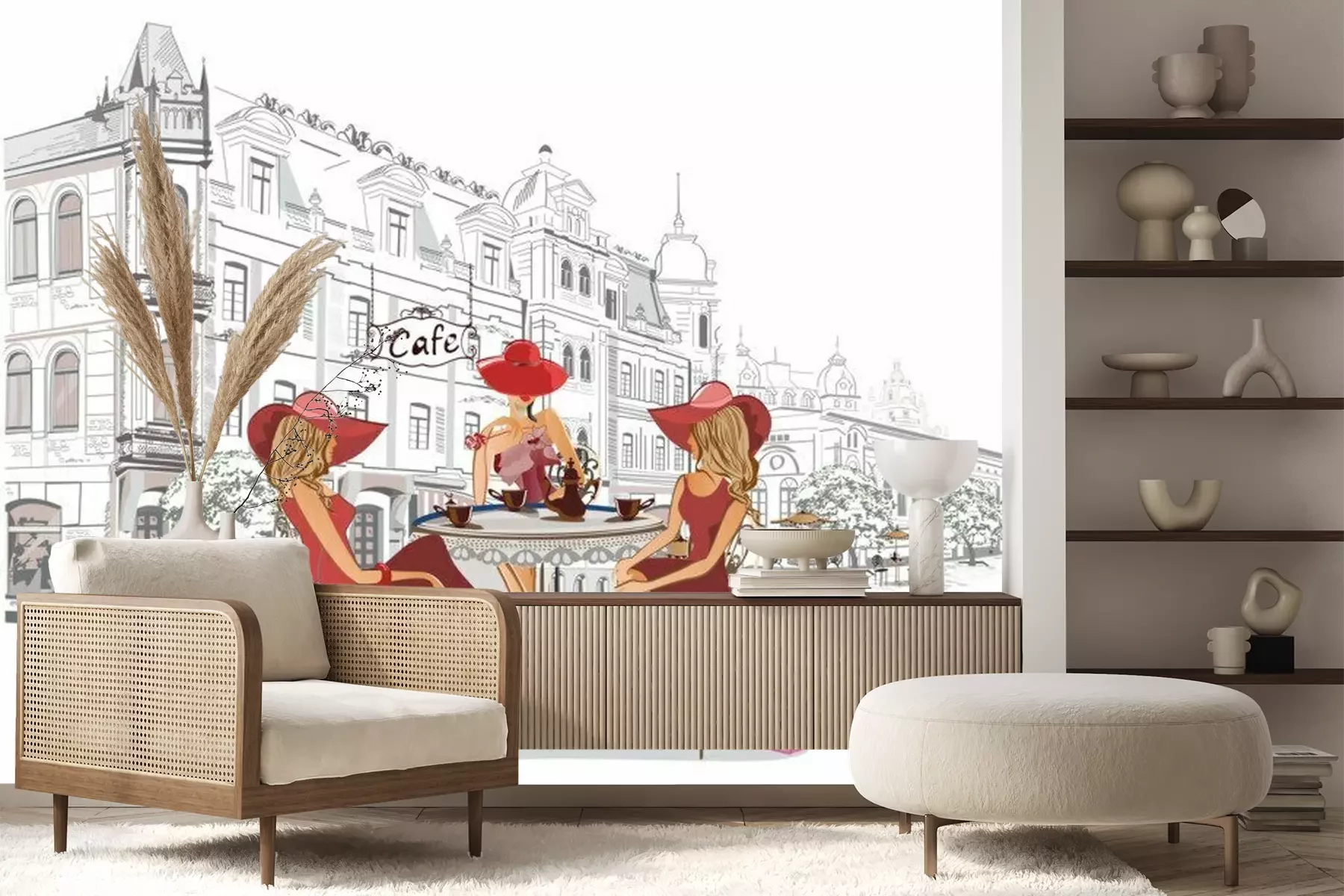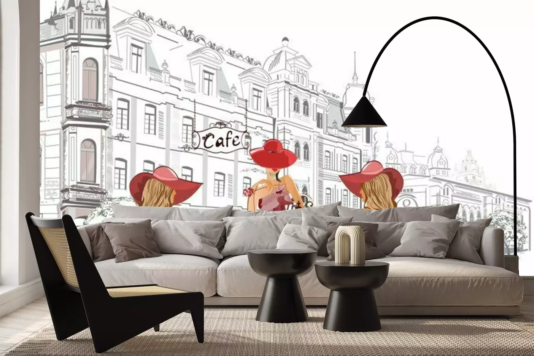 Stadscafé met vrouwen in hoedenCanvas