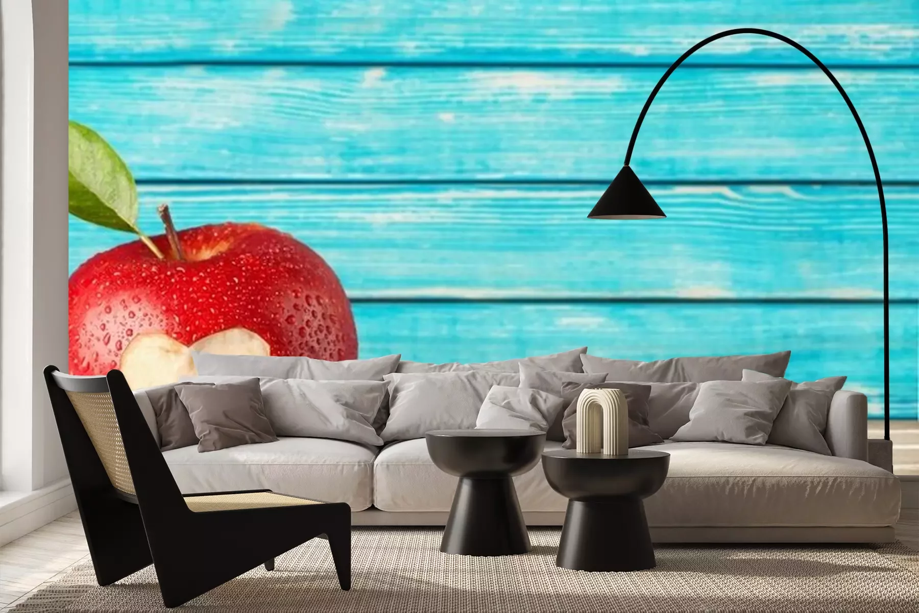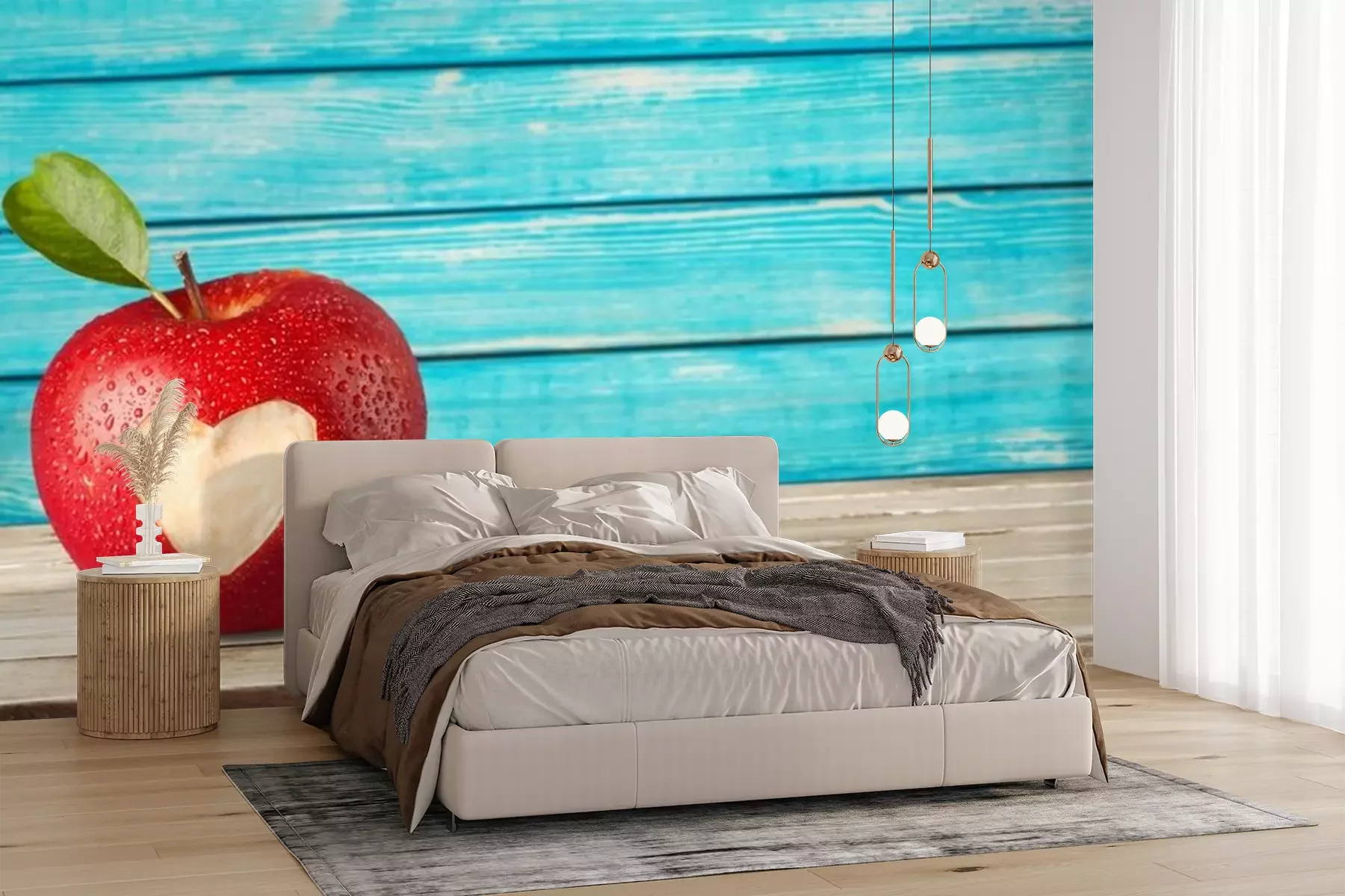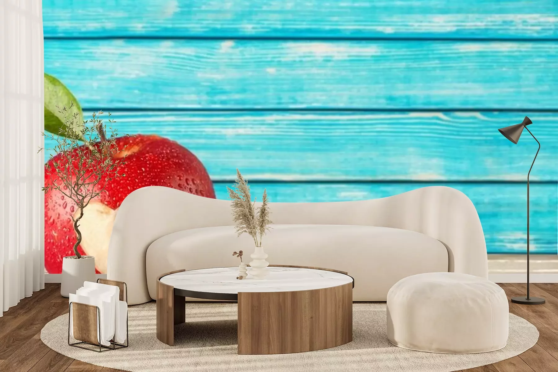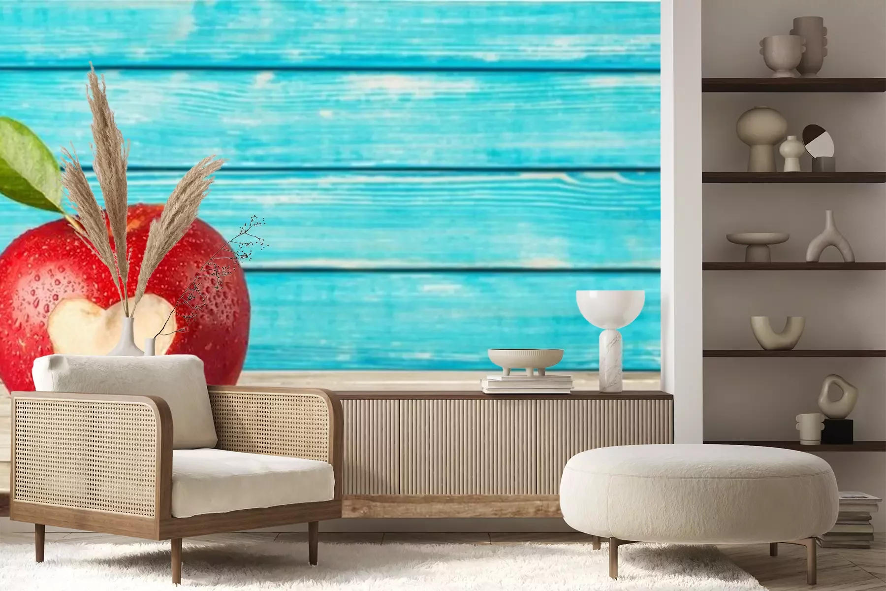 Rode appel op een houten tafelSticker