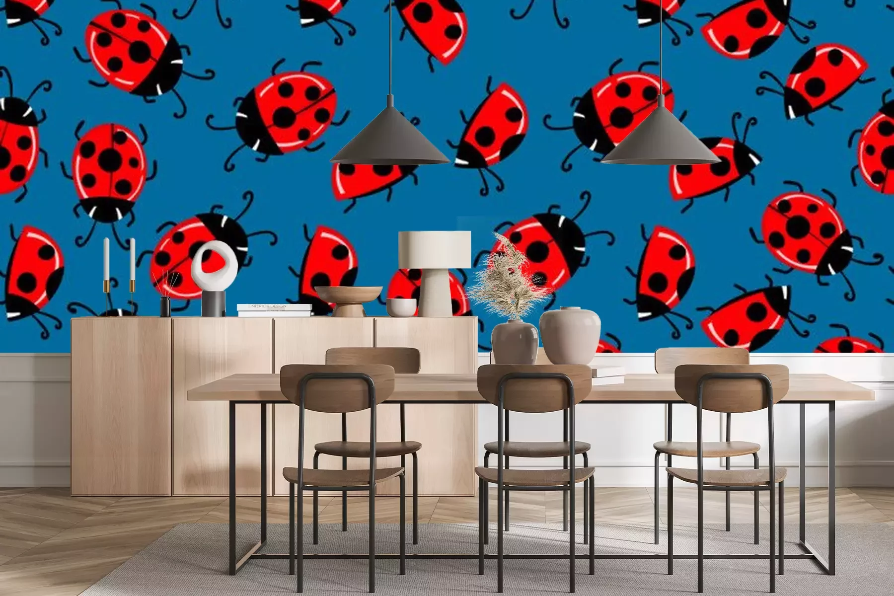 Sticker Rode lieveheersbeestjes op blauwe achtergrond