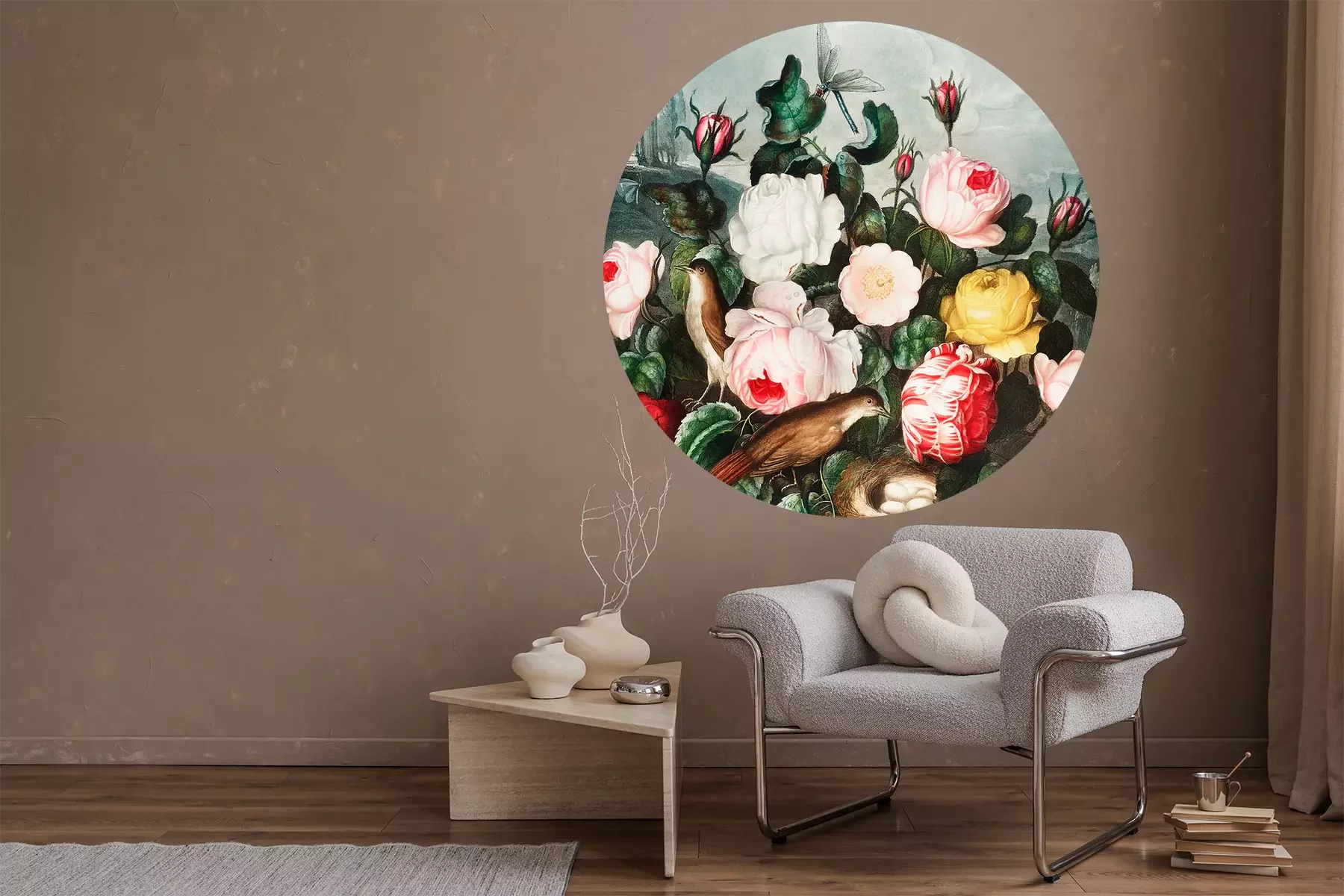 Ronde vintage illustratie met bloemmotief