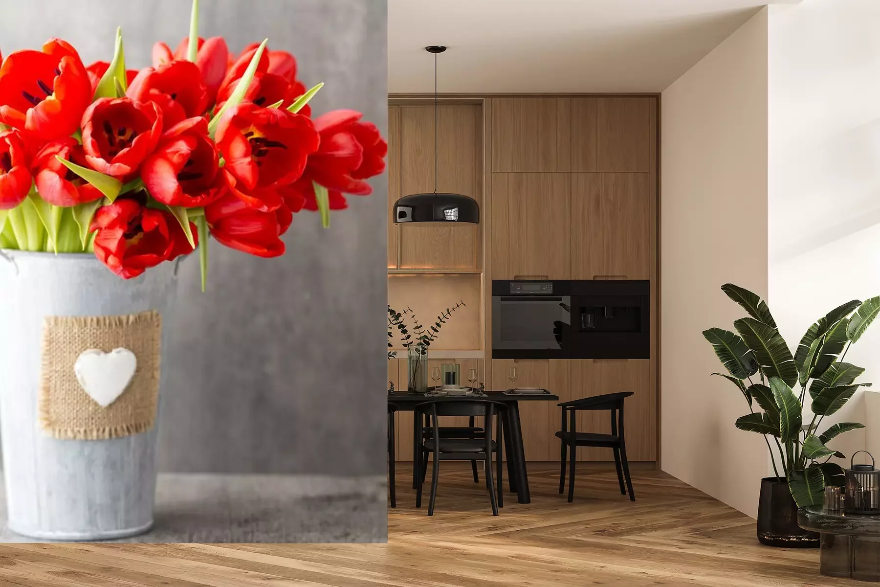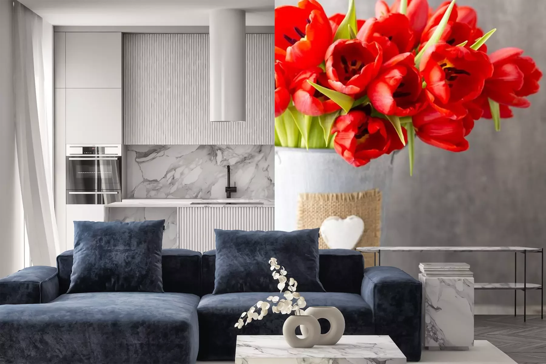 Rode tulpen op betonFotobehang