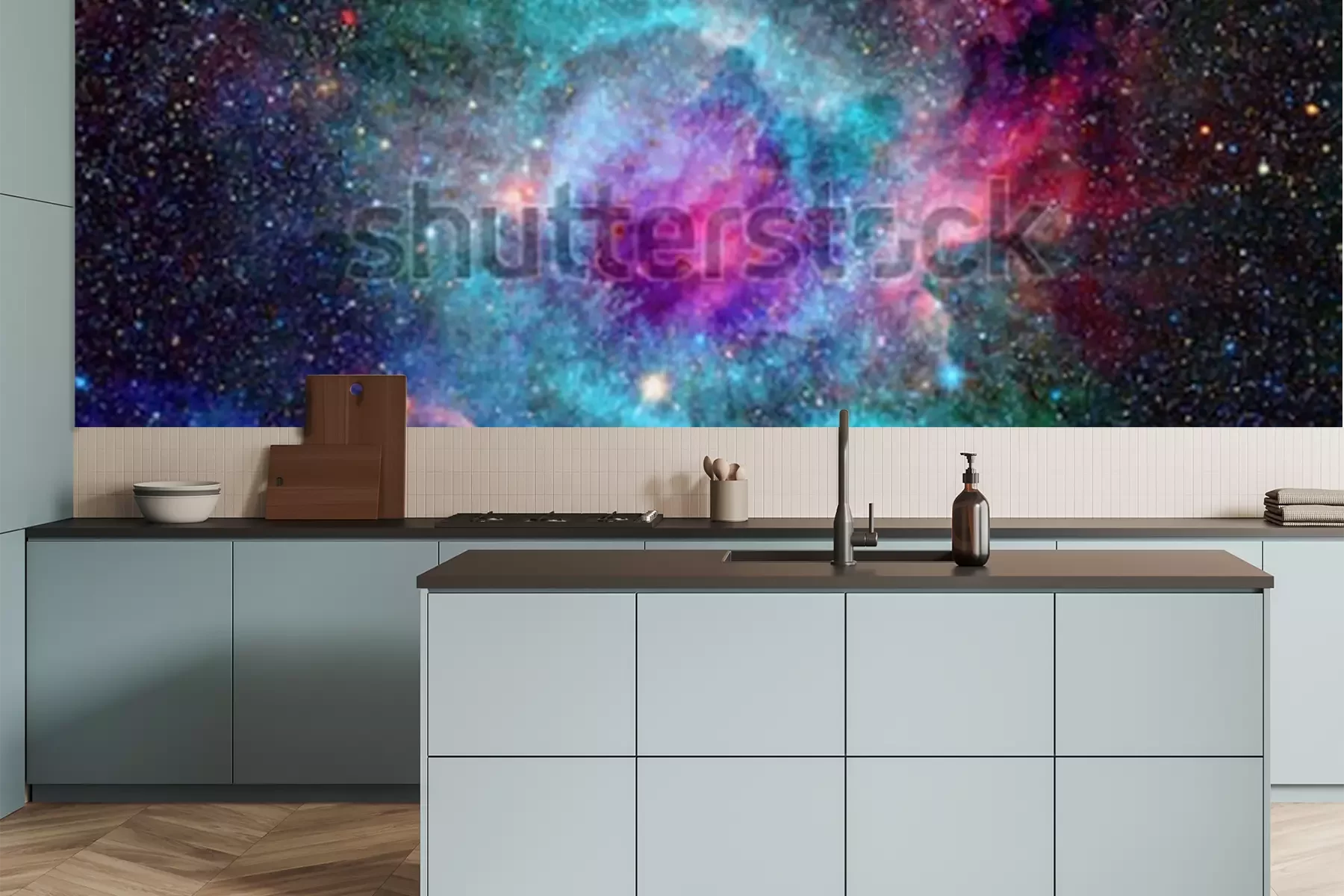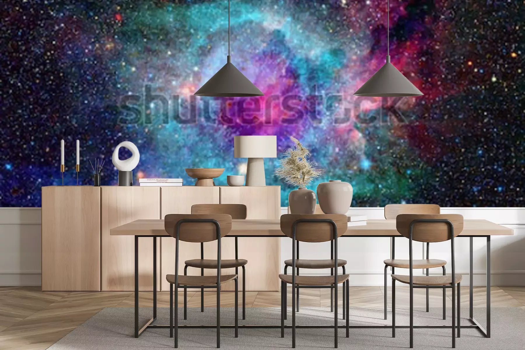 Sticker Roze-turquoise nevel tegen de achtergrond van de ruimte