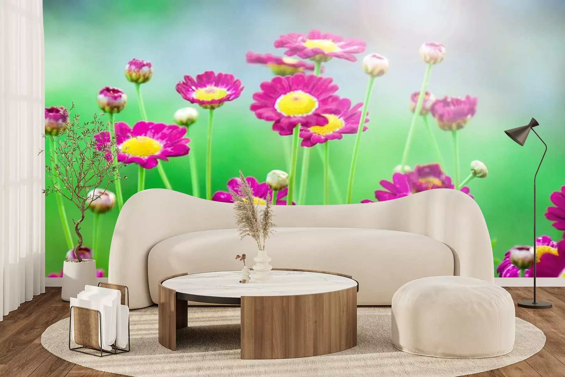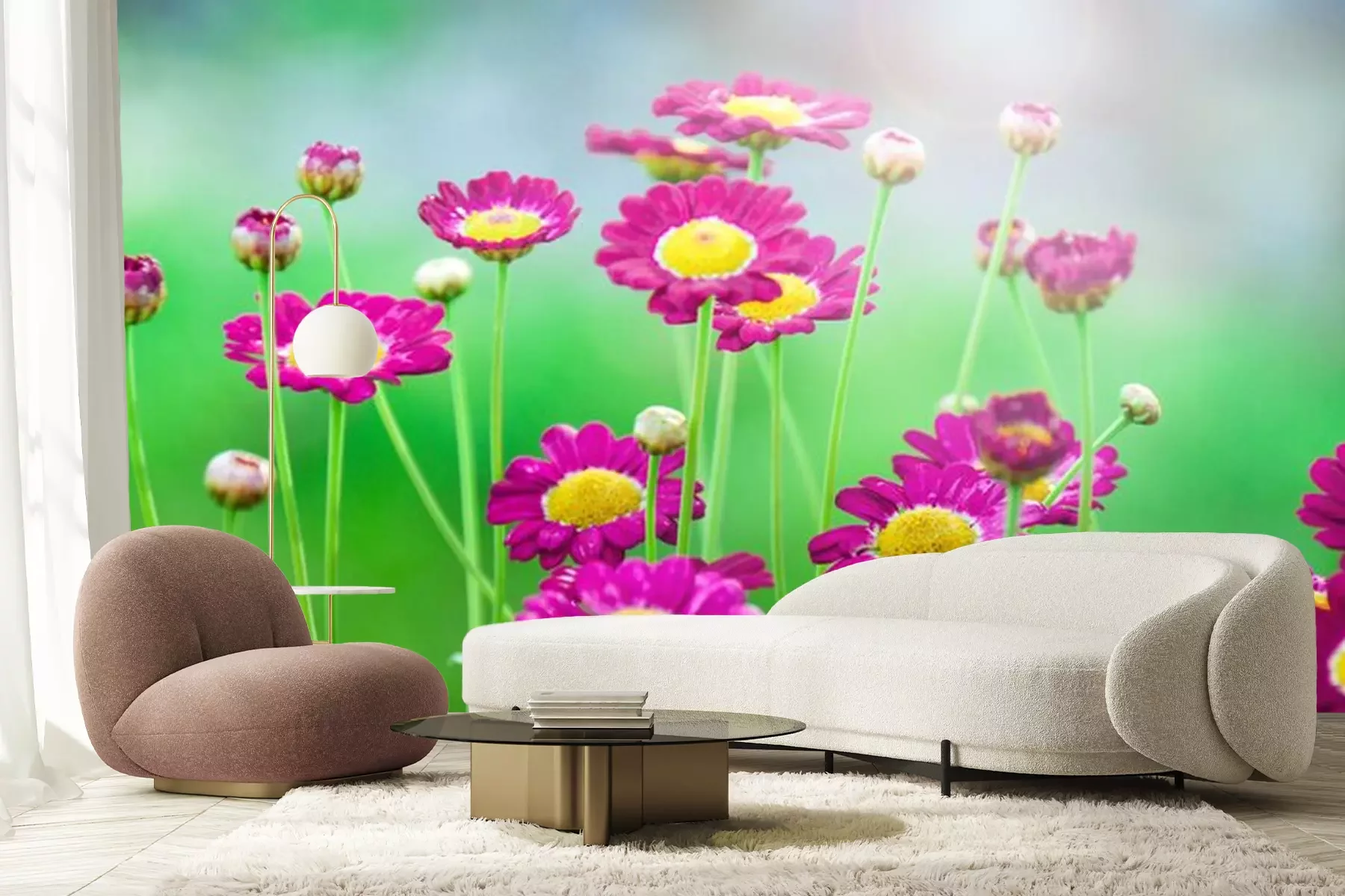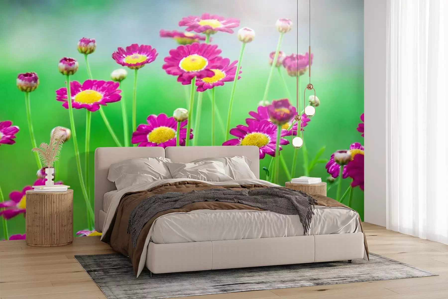 bloemen met waterdruppelsFotobehang