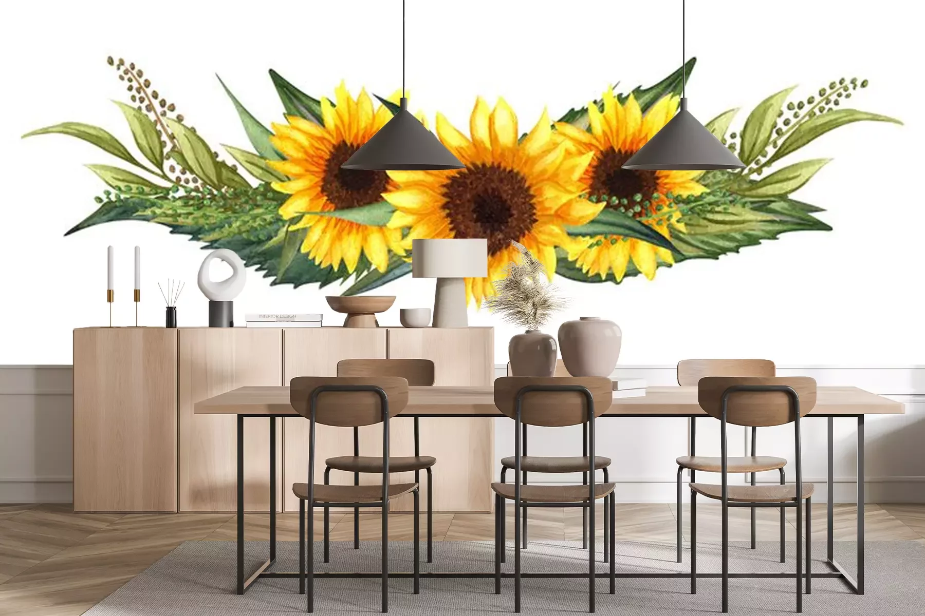 Drie zonnebloemen met bladerenSticker