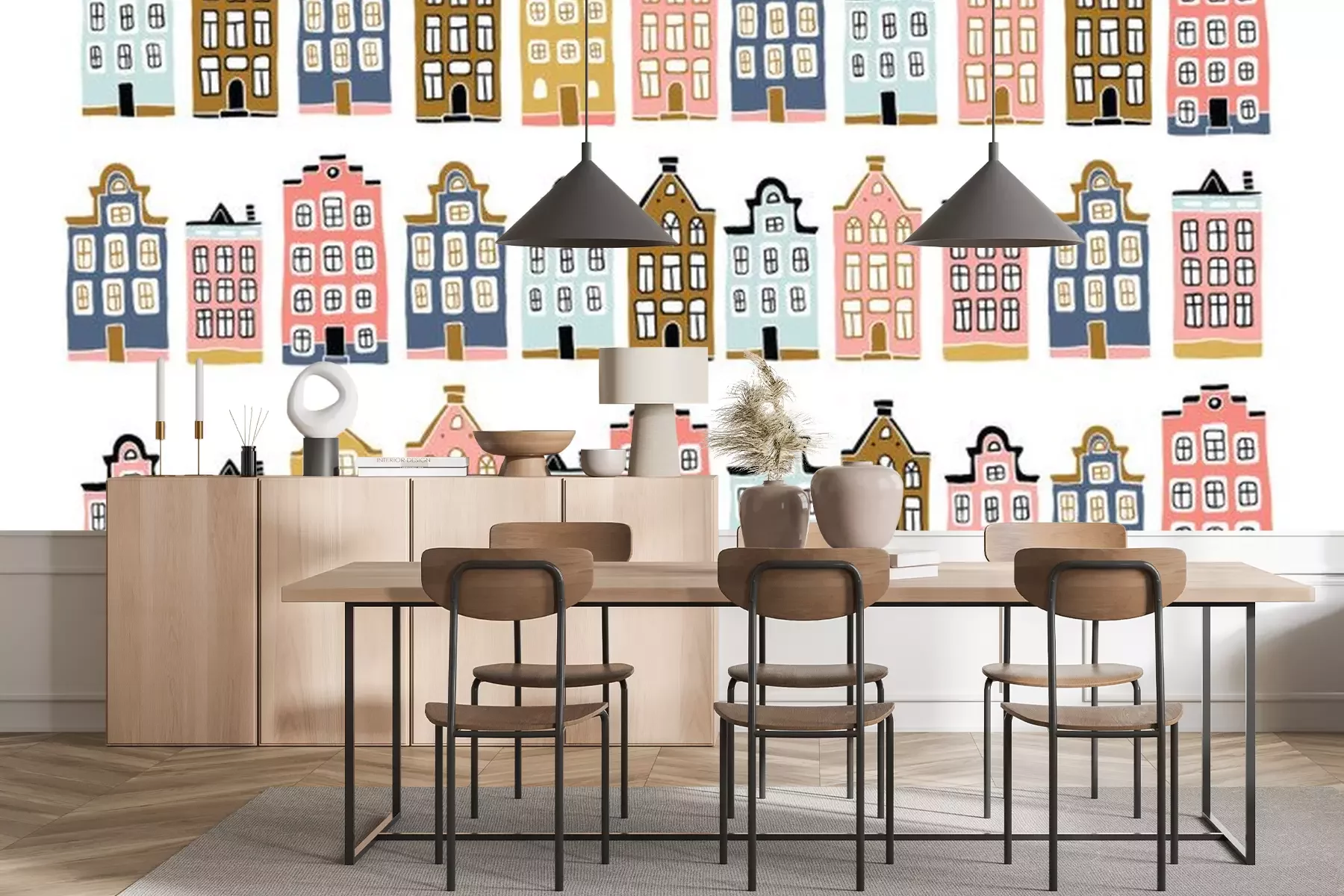 Sticker Scandinavian city landscape in hand drawn style