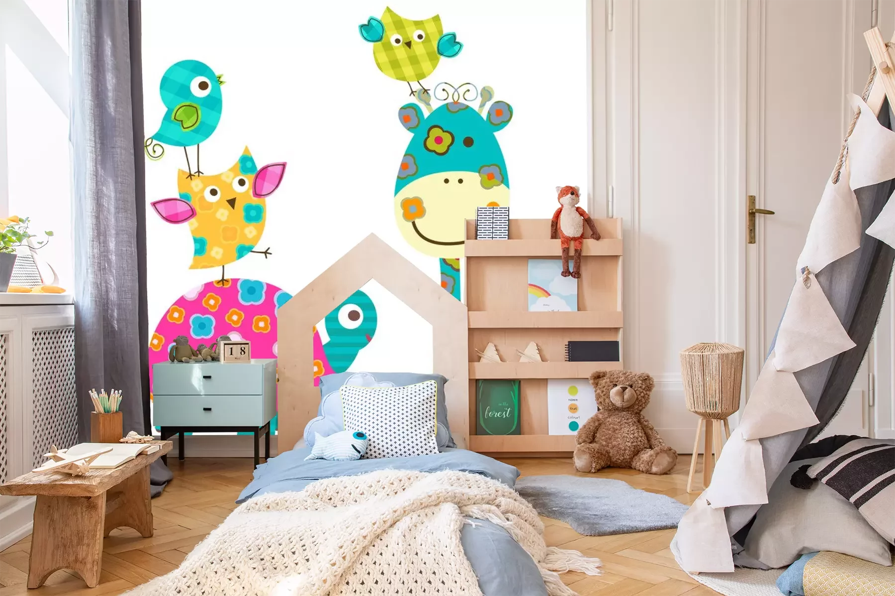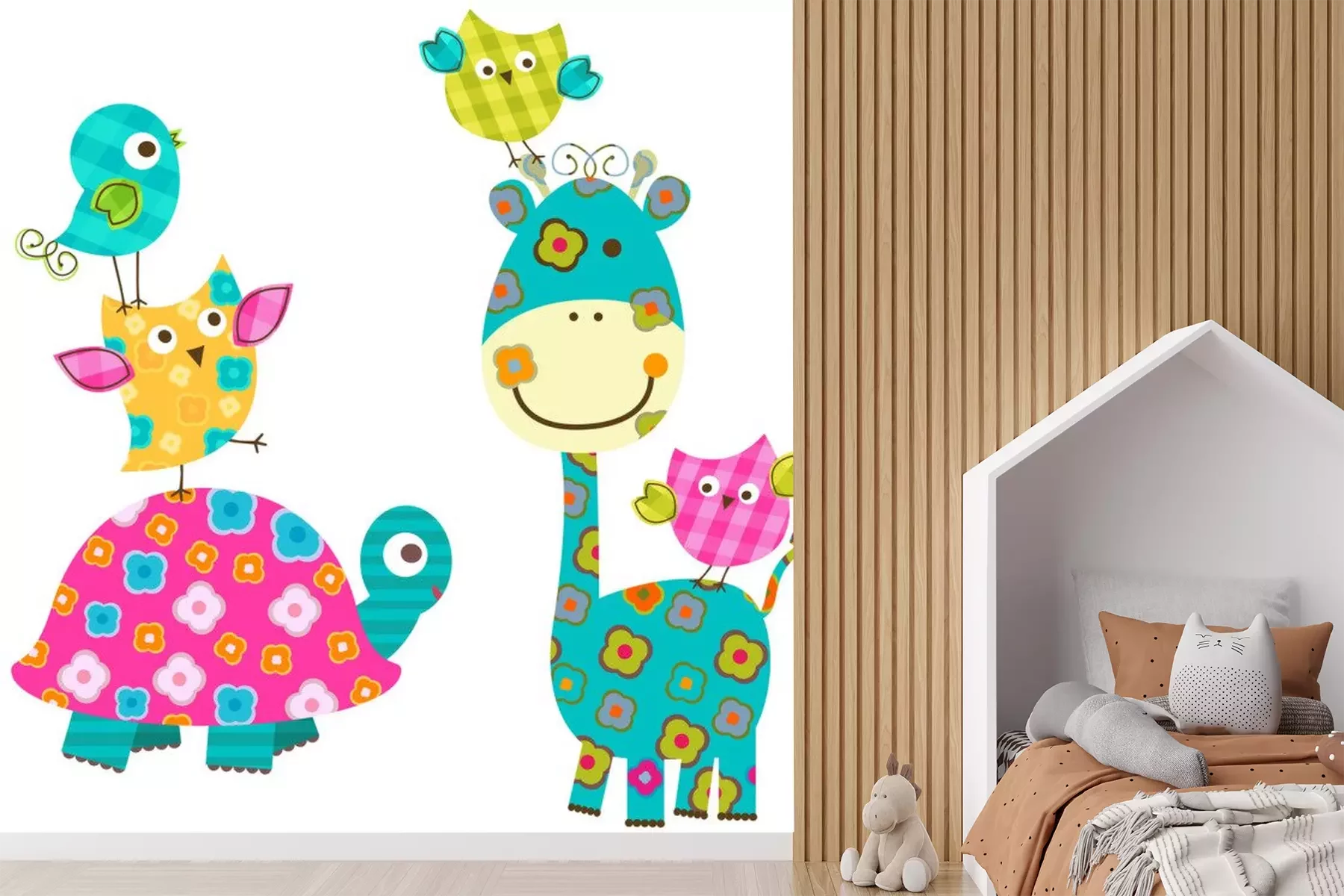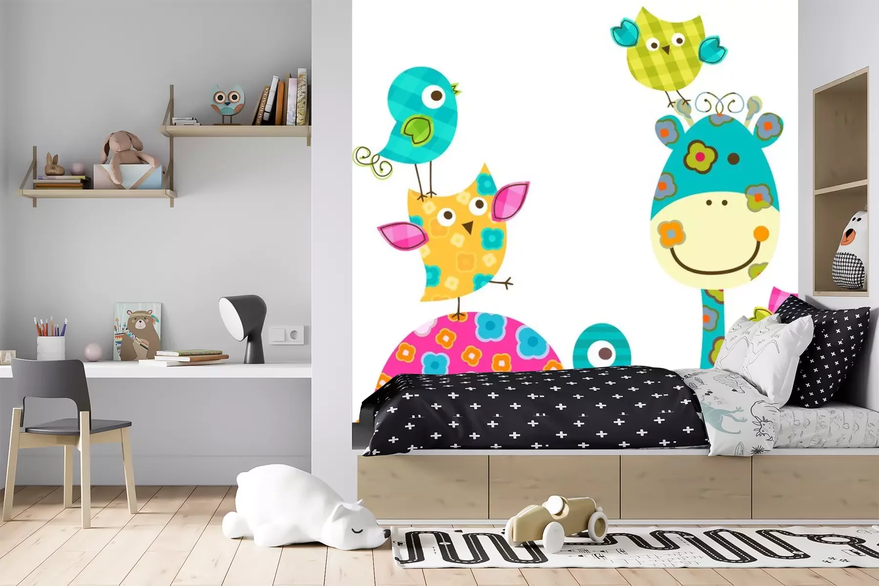 Gele geruite giraf onder vogelsProbleemloze bezorging verzorgd door vertrouwde vervoerders