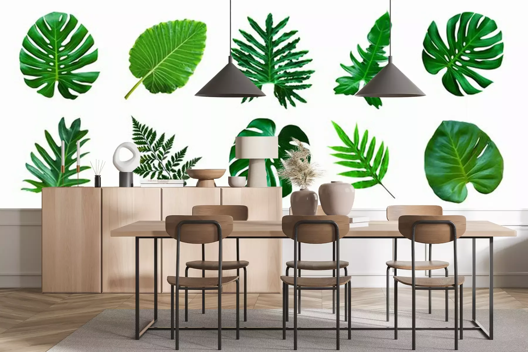 Tropische grote donkergroene bladerenFotobehang