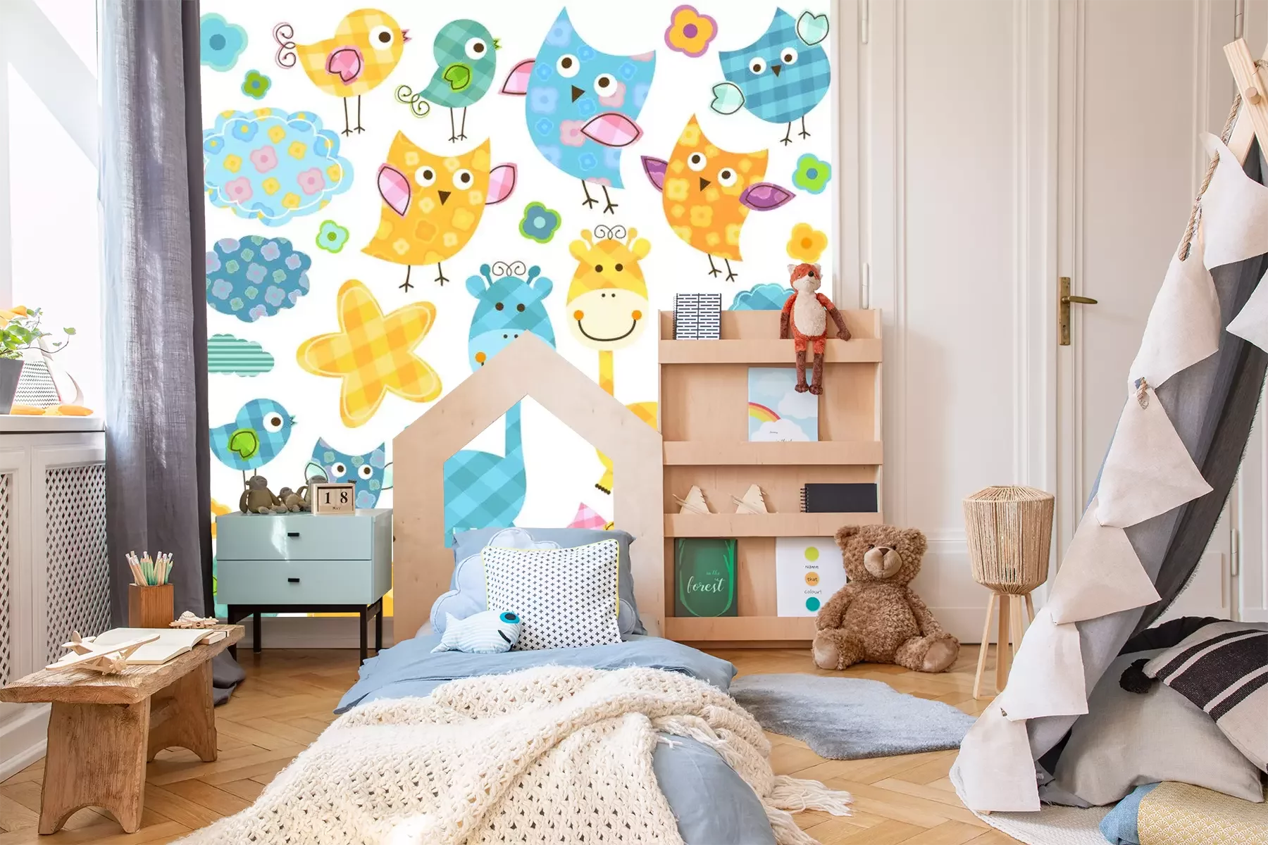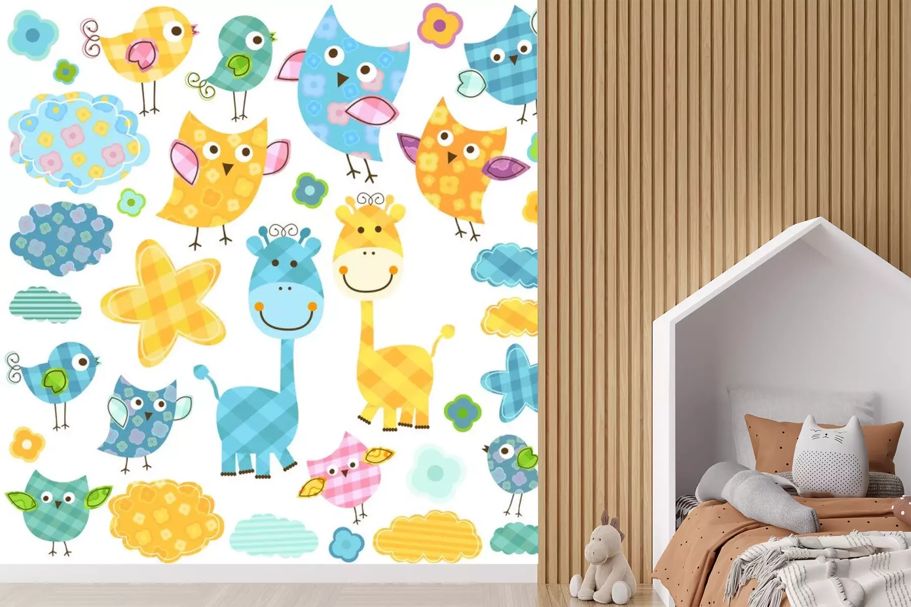 Gele geruite giraf onder vogelsProbleemloze bezorging verzorgd door vertrouwde vervoerders