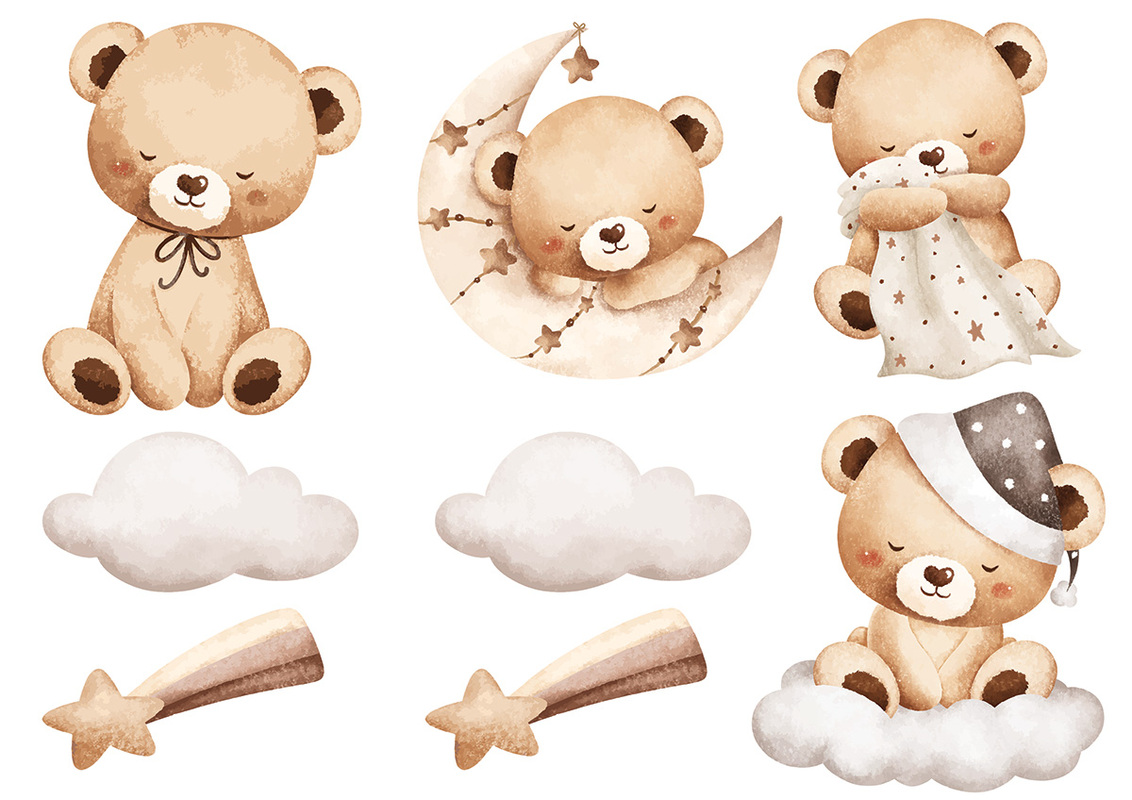 Slapende teddyberen wolken en sterren in pastelkleuren