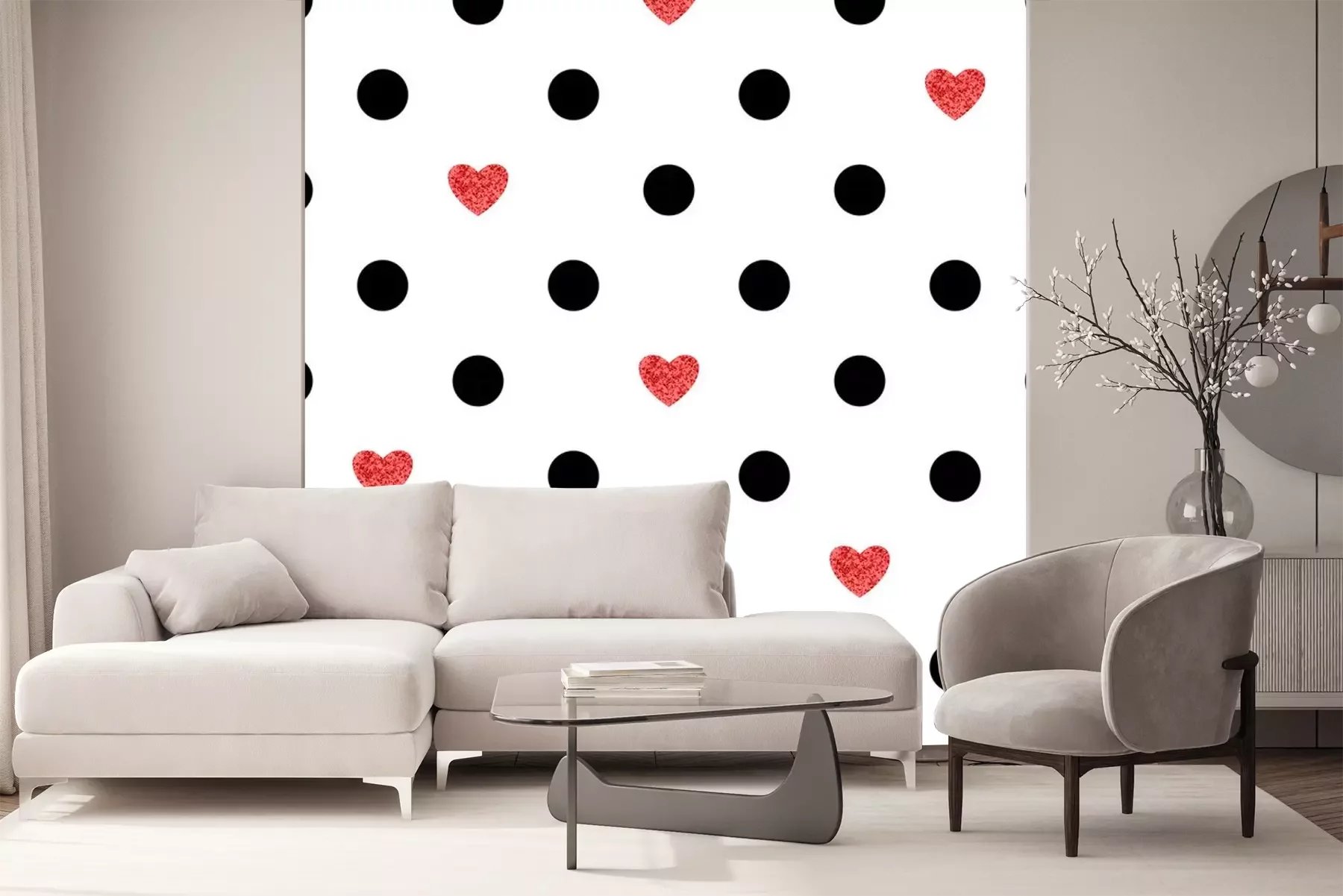 Zwarte en roze hartenBehang