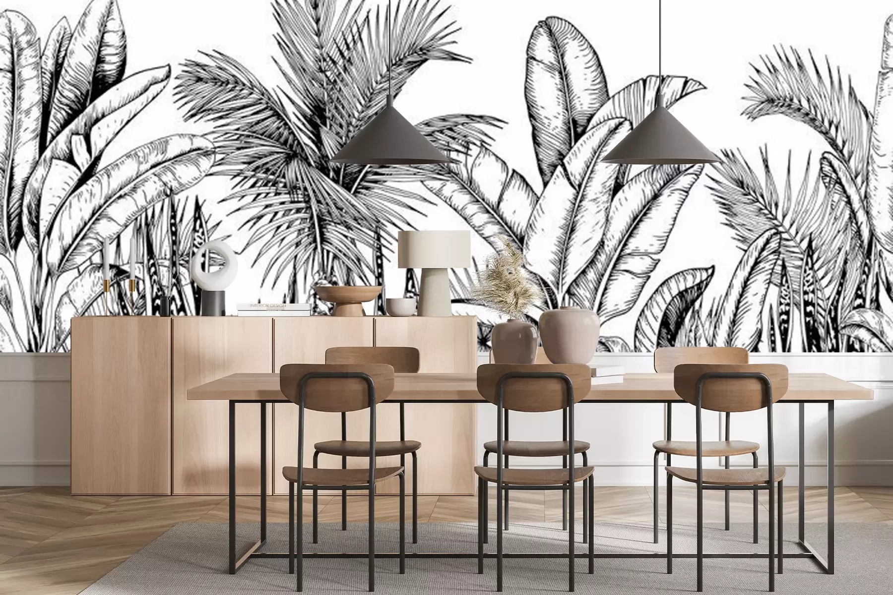 Jungle grijze schetsBehang