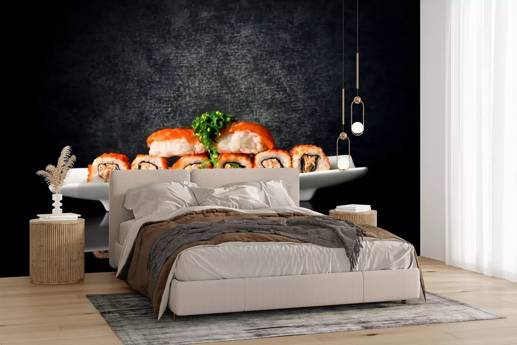 Stukjes sushi met eetstokjesProbleemloze bezorging verzorgd door vertrouwde vervoerders