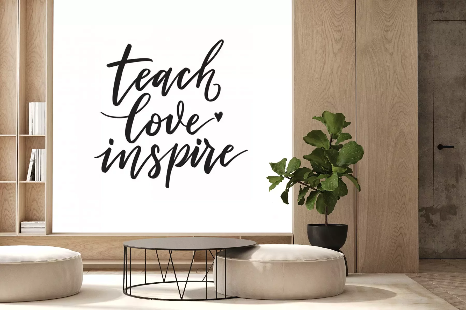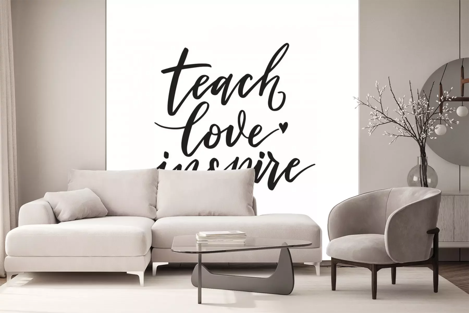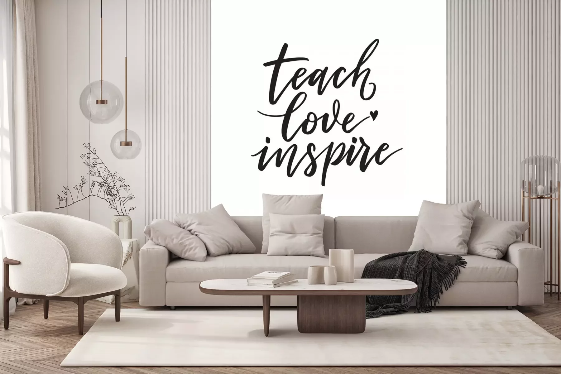 Sticker Teach, love, inspire. Inspirational quote.   Hand lettering. Hand drawn modern brush calligraphy. Vector illustration.