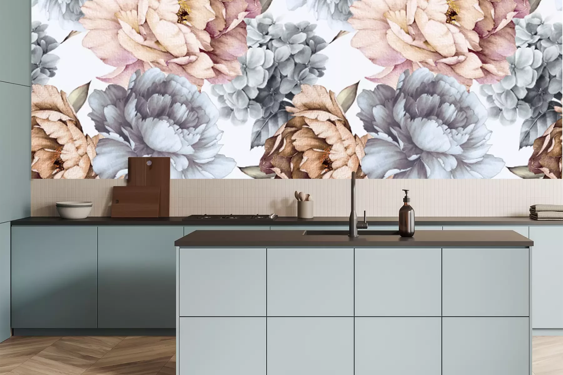 Floral pattern with peoniesFotobehang