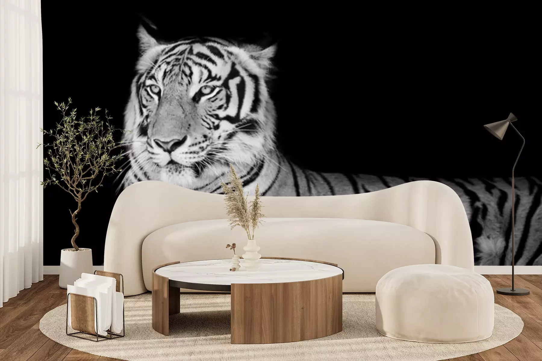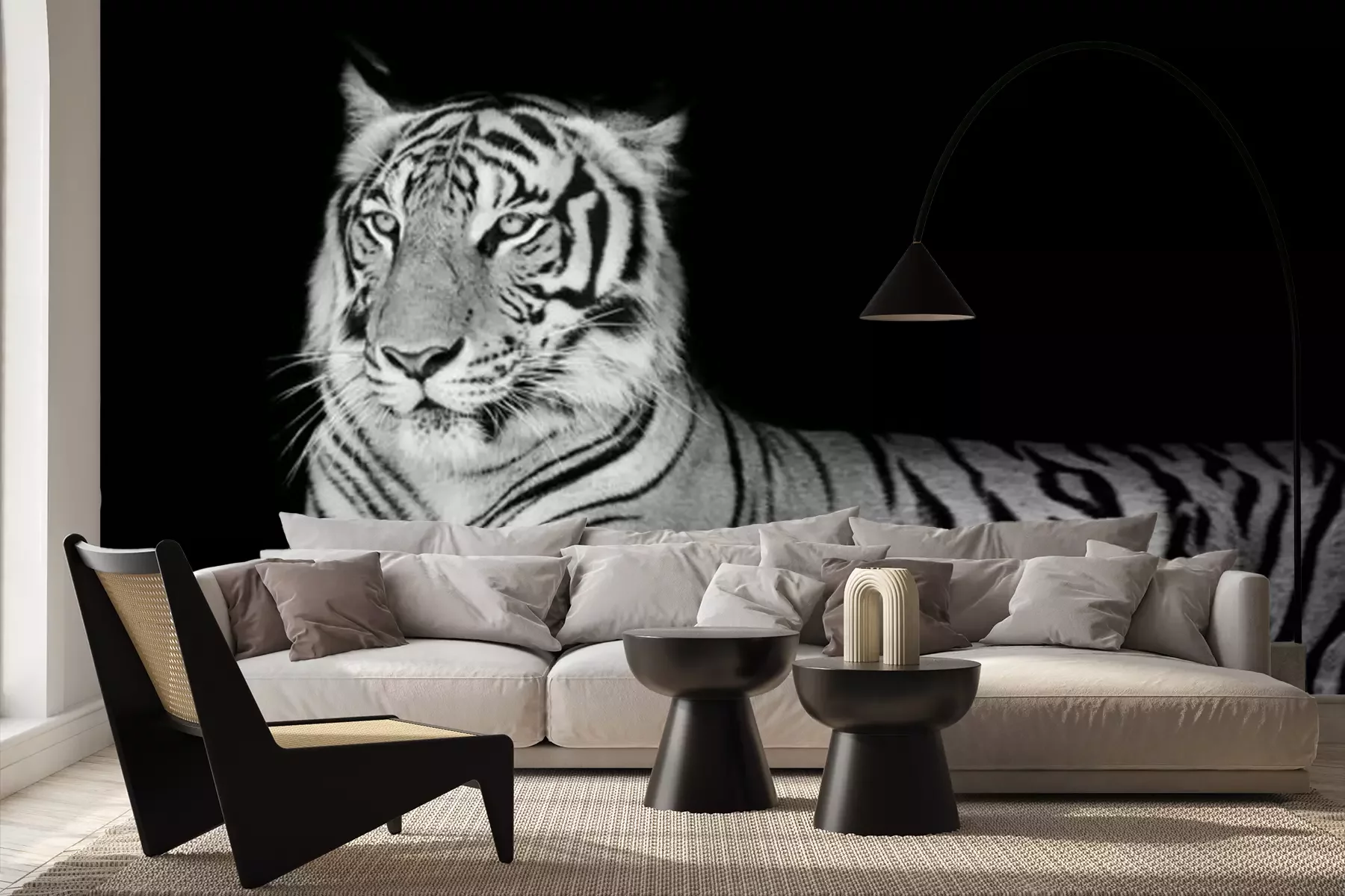 Tijger op een zwart-witfotoProbleemloze bezorging verzorgd door vertrouwde vervoerders