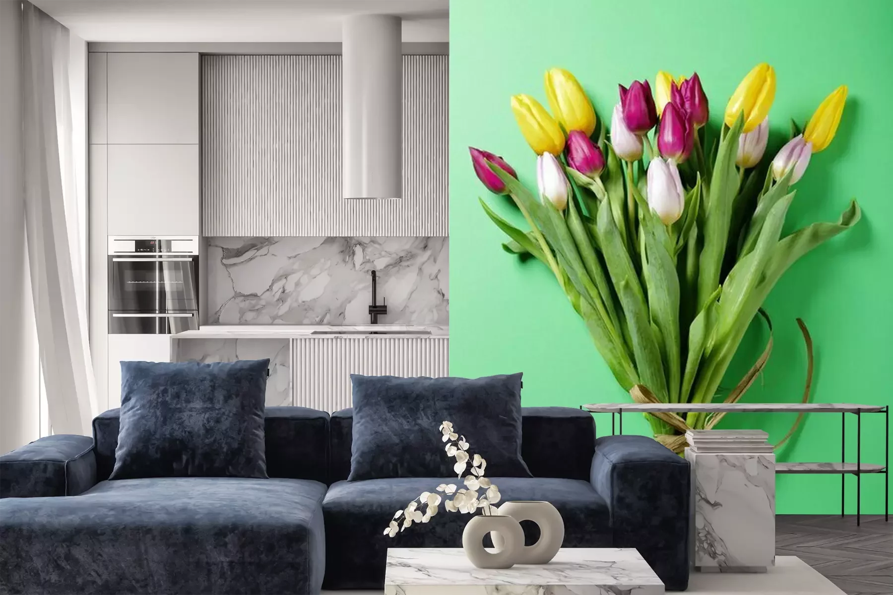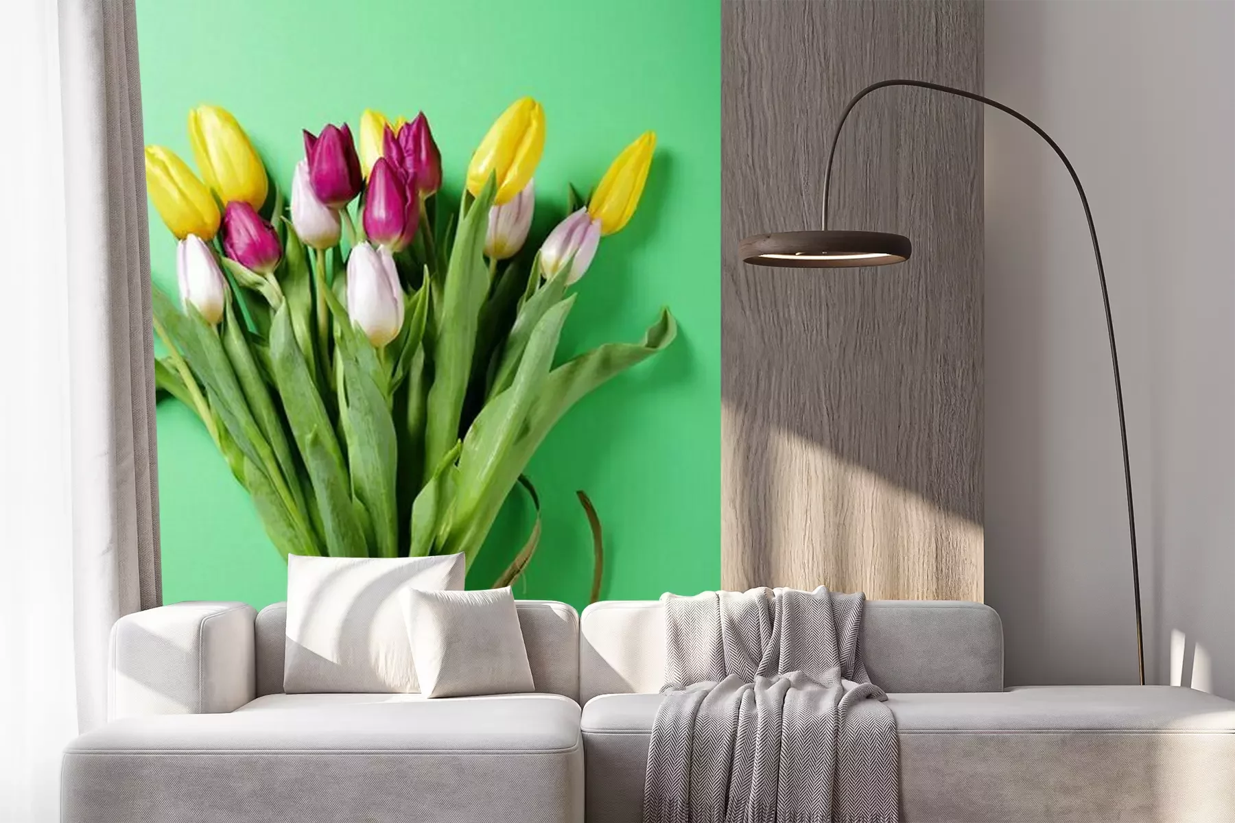 Gele tulpen gebonden met touwProbleemloze bezorging verzorgd door vertrouwde vervoerders