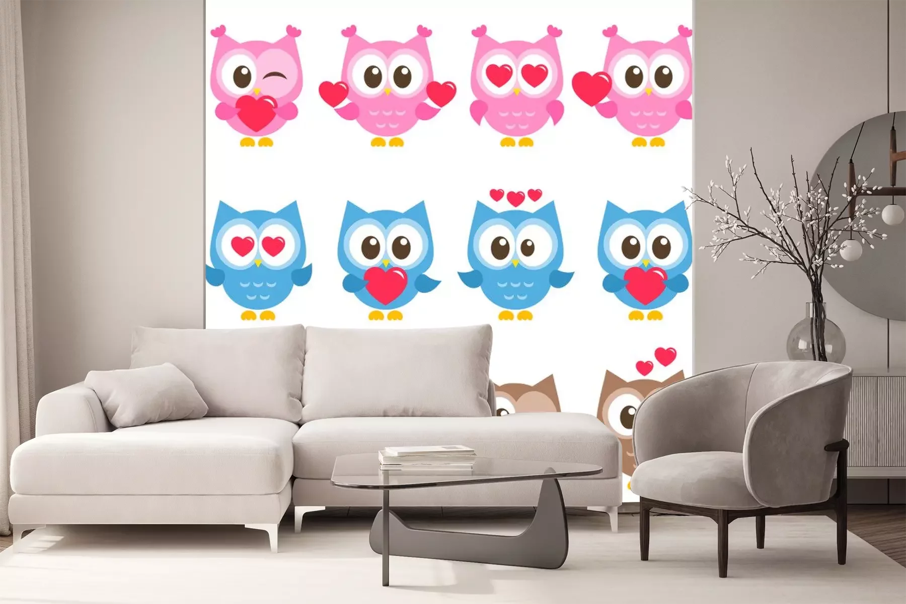Grijze en roze uilenSticker