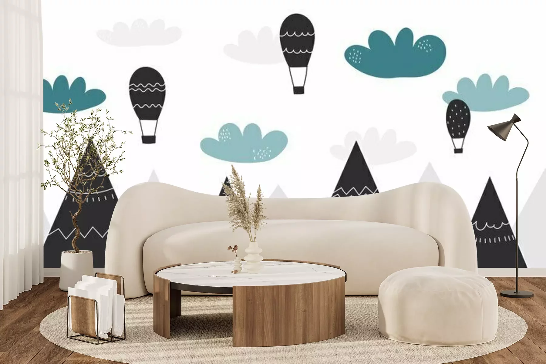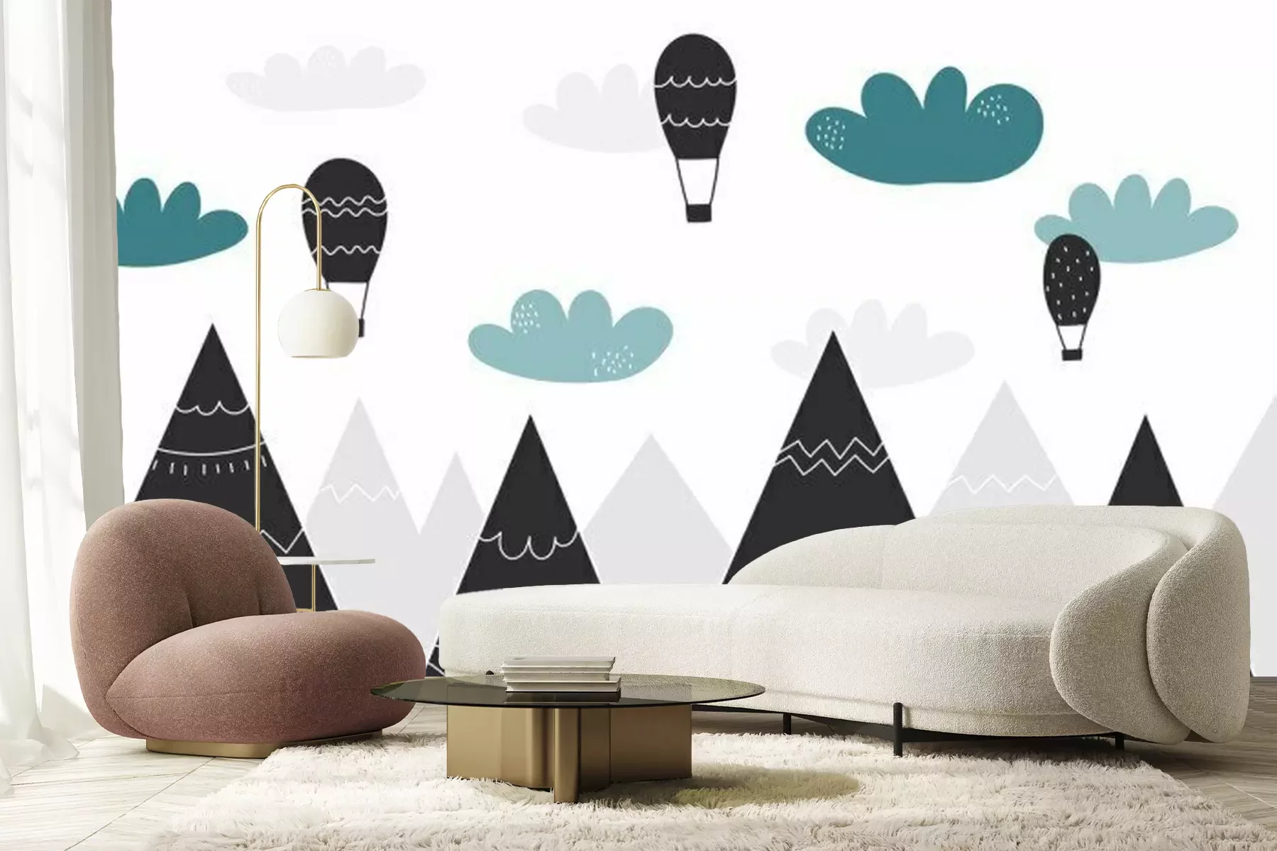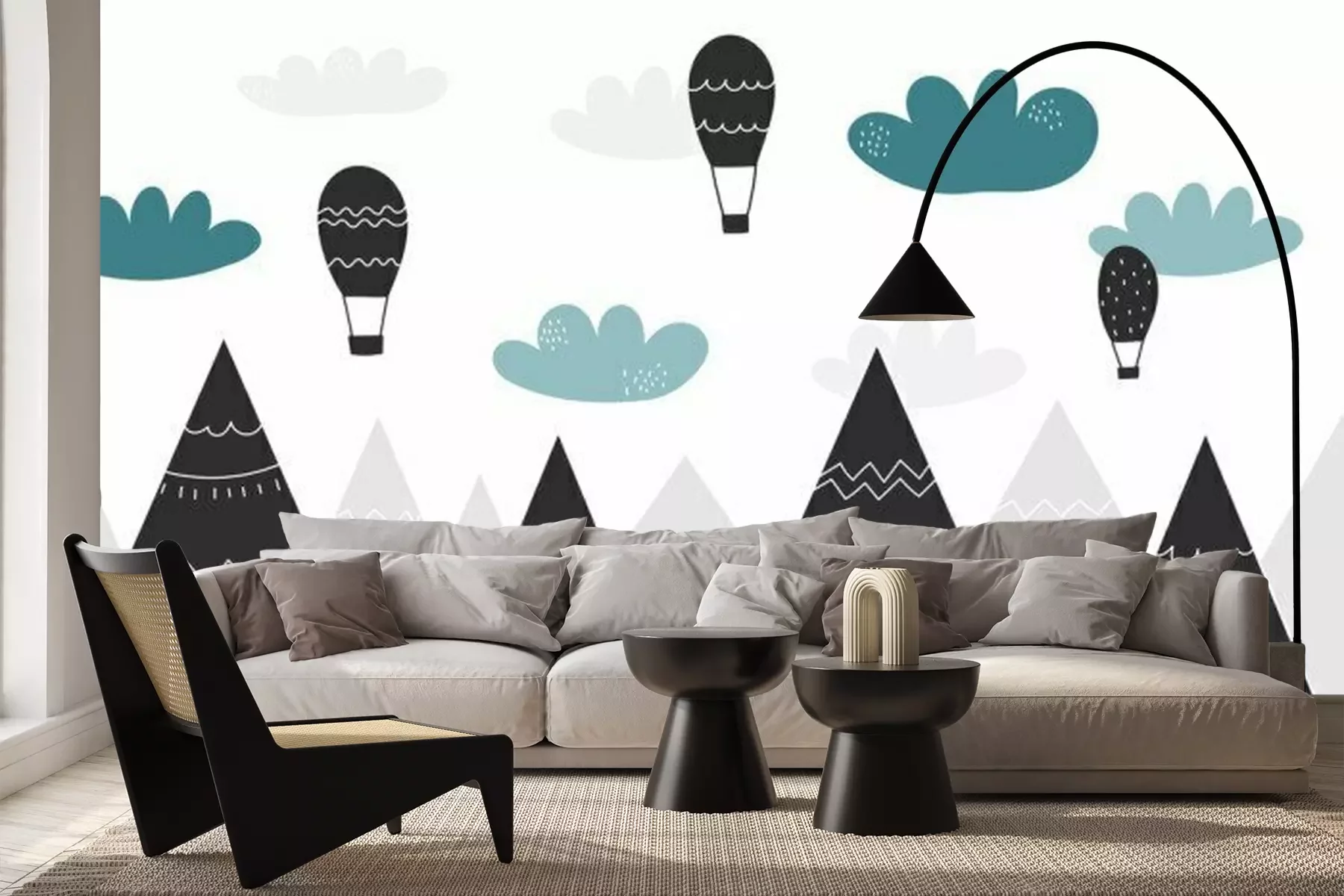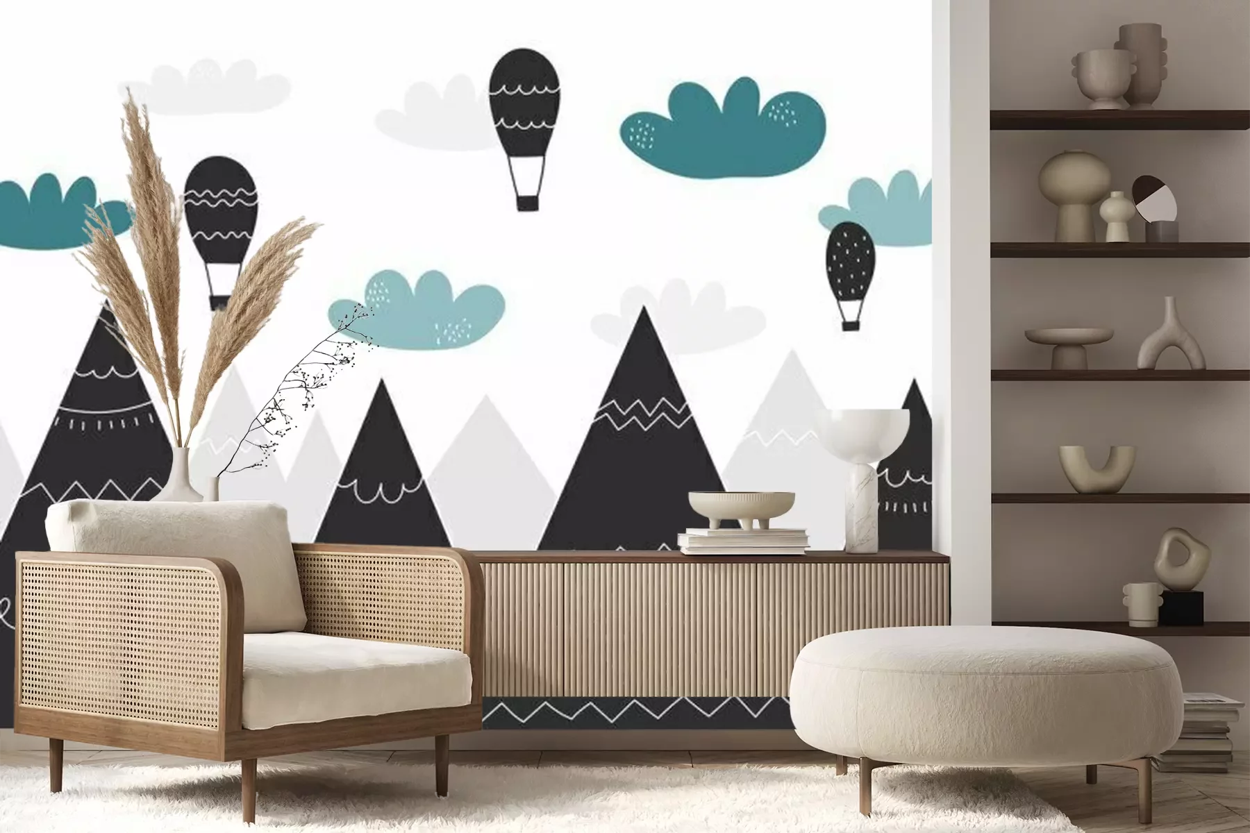 Sticker Vliegende ballonnen boven de bergen in Scandinavische stijl