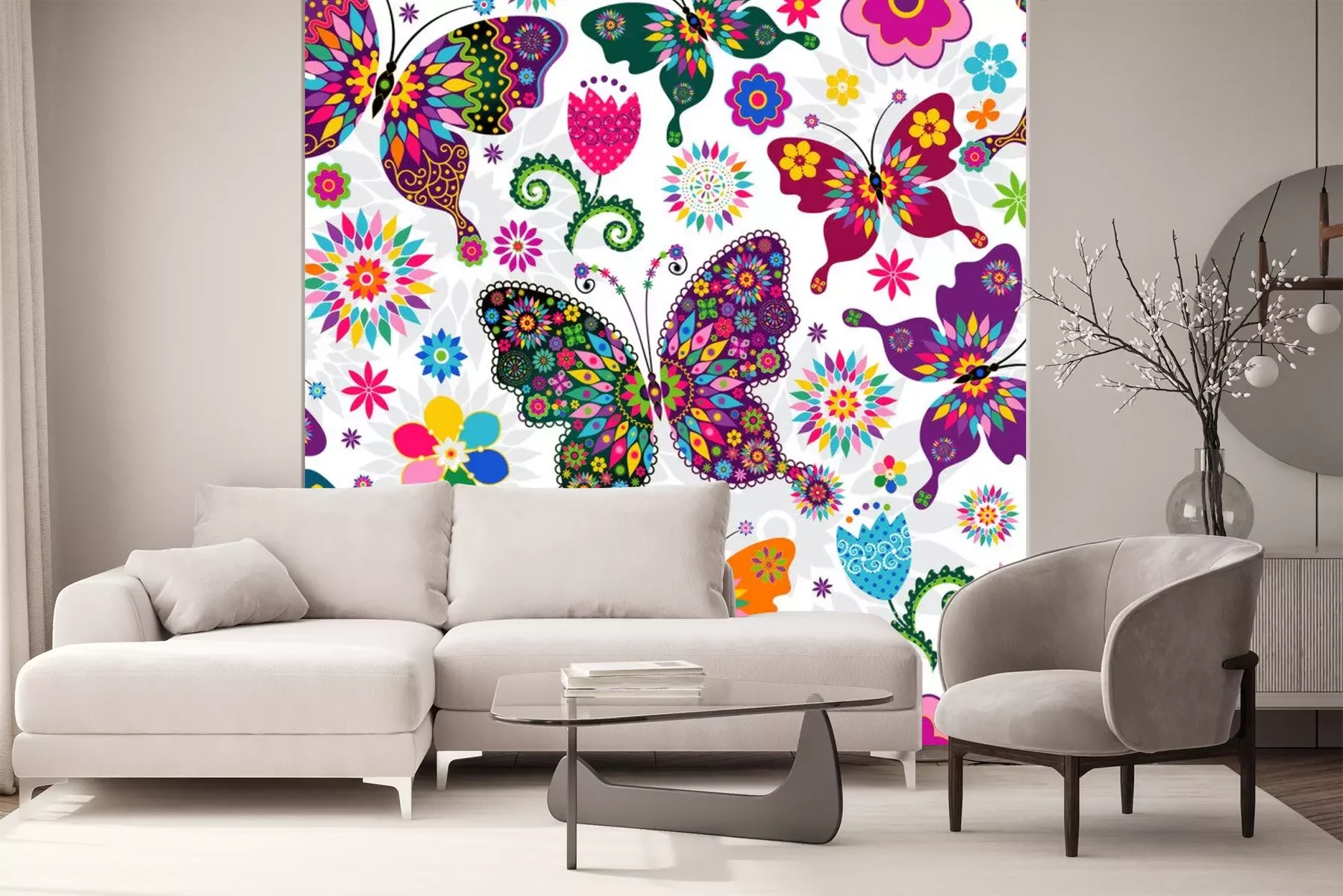Vlinders en bloemen in pastelProbleemloze bezorging verzorgd door vertrouwde vervoerders