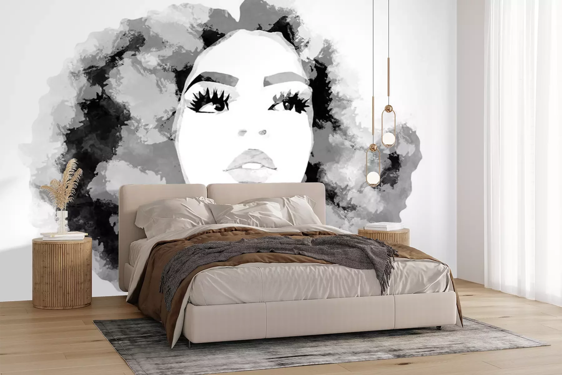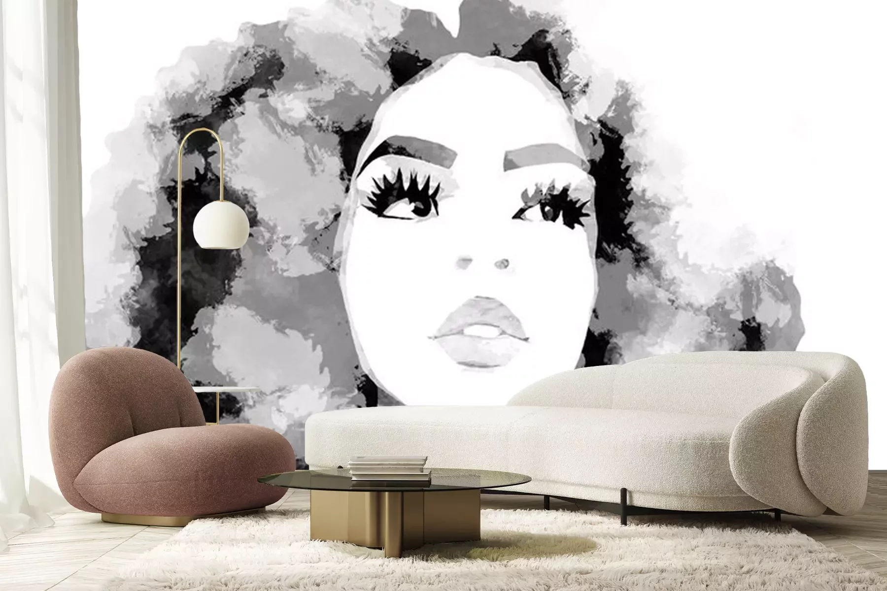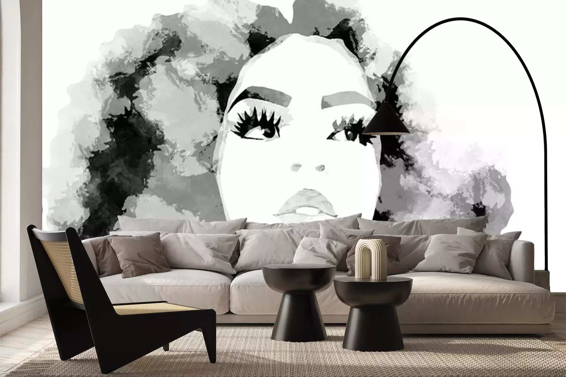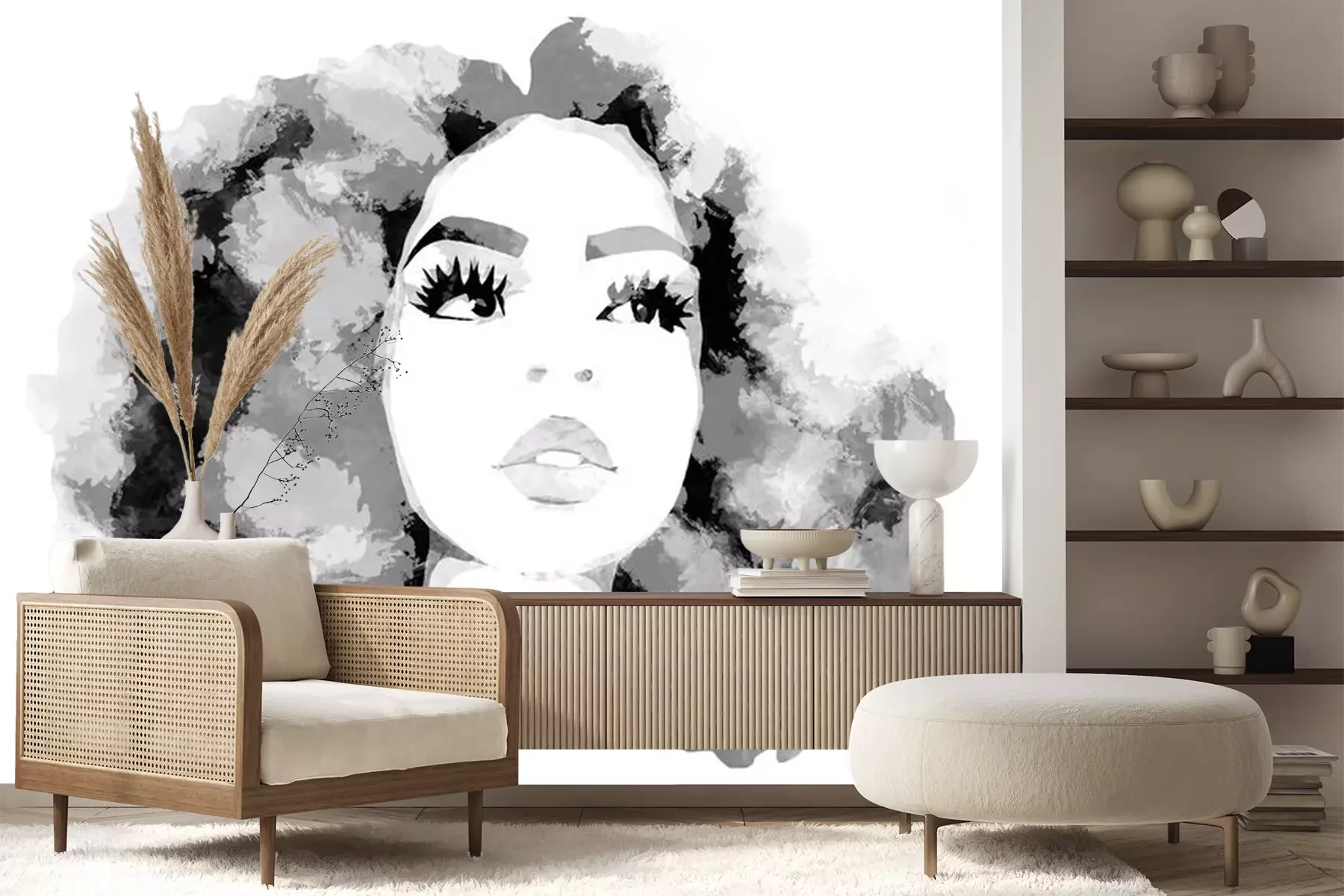 Sticker Watercolor art painting of Black woman. hair care. African american girl with afro hair, illustration