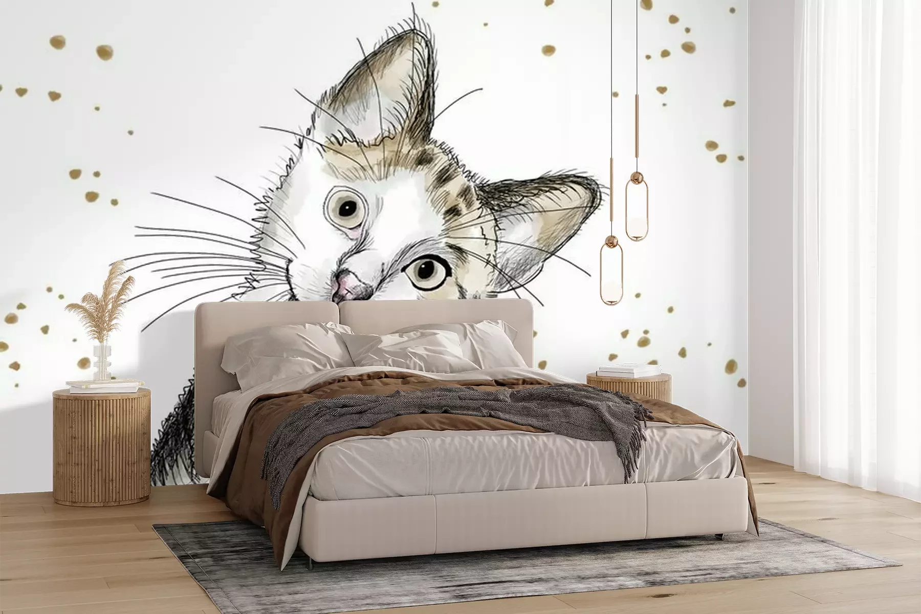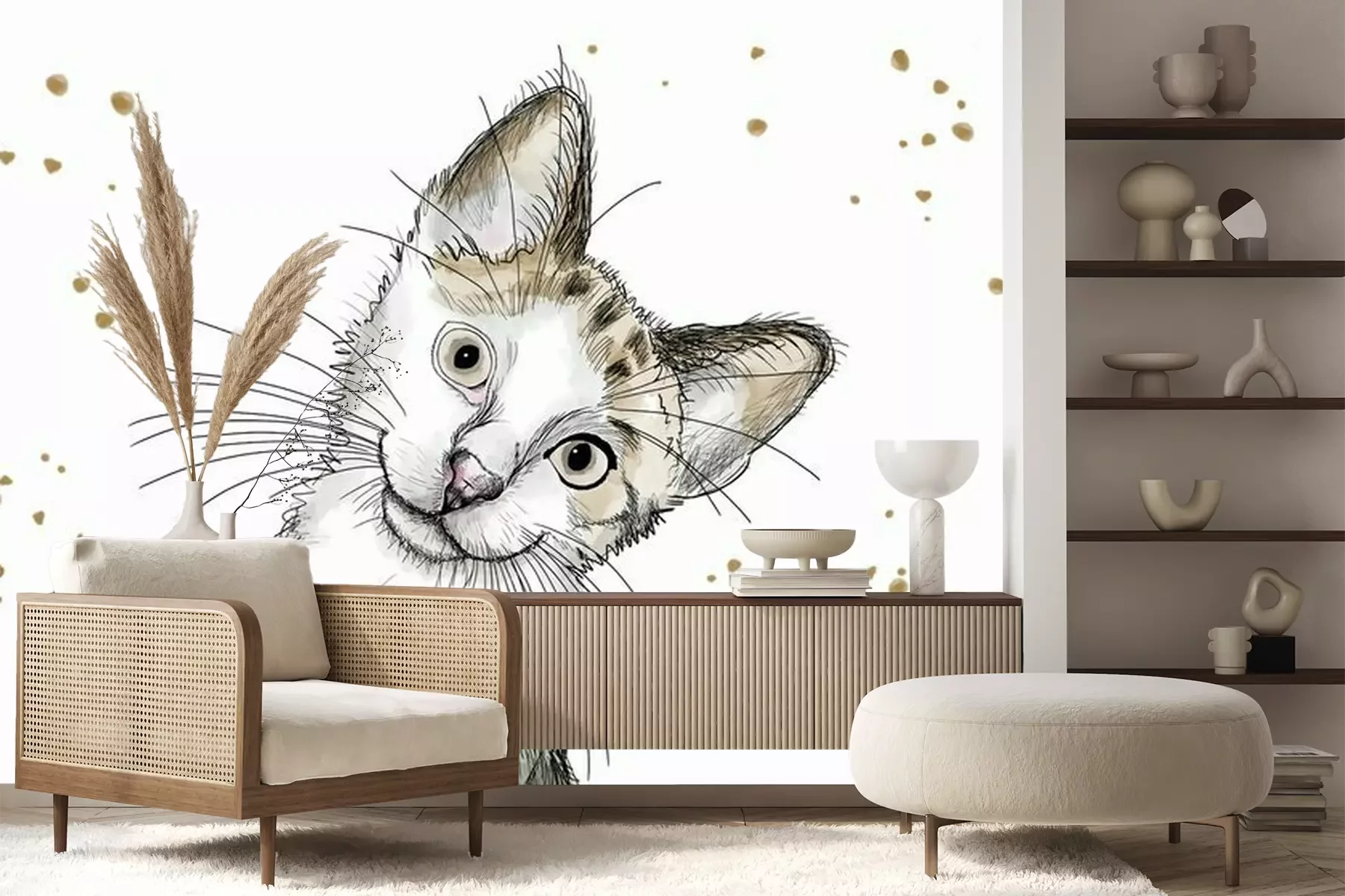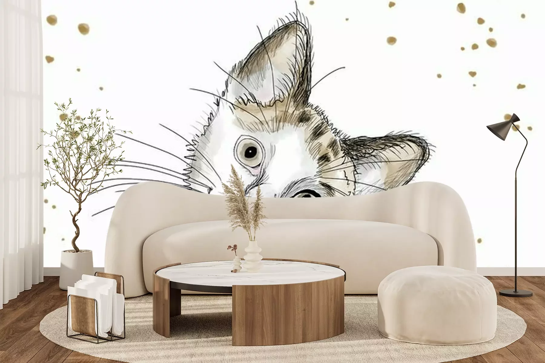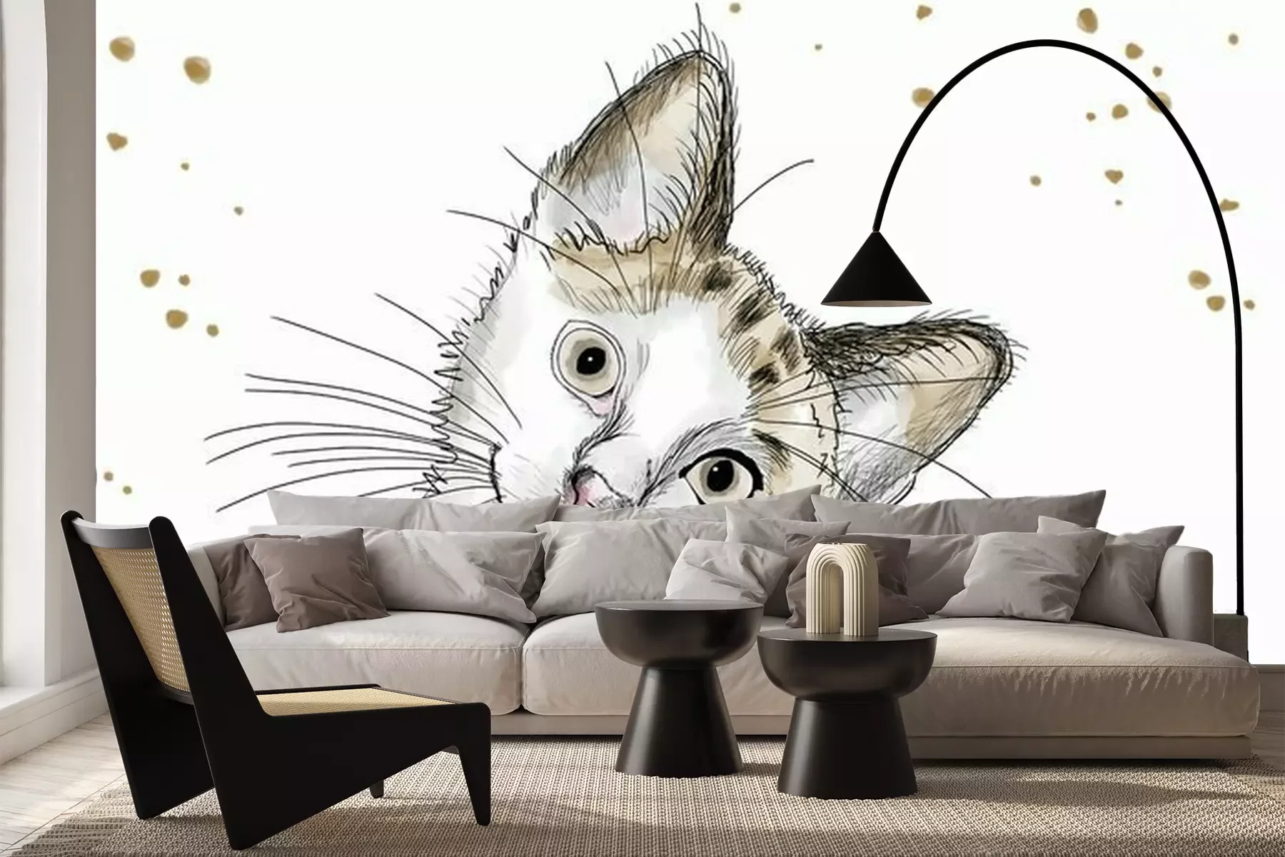 Sticker Watercolor hand drawn illustration: cute kitten with big eyes and a curious attitude
