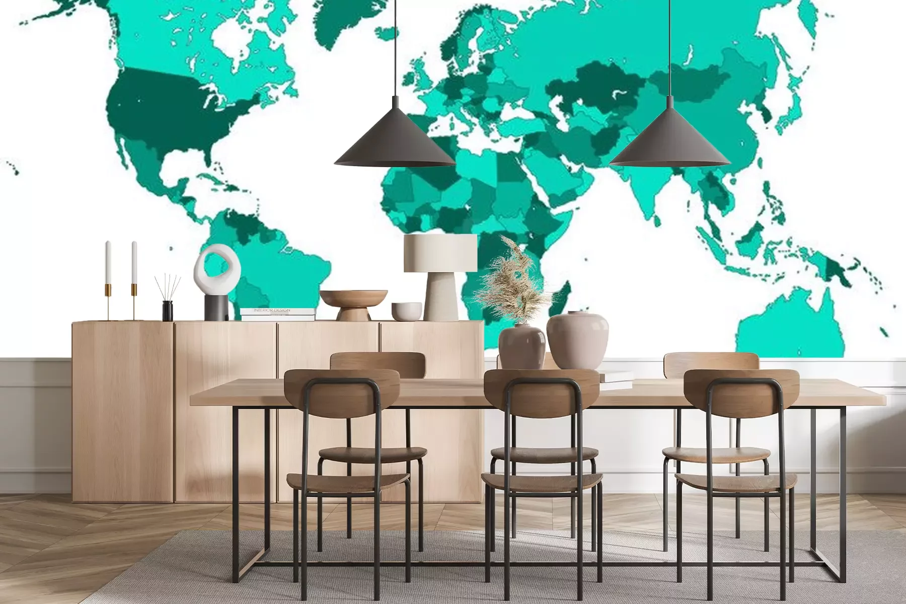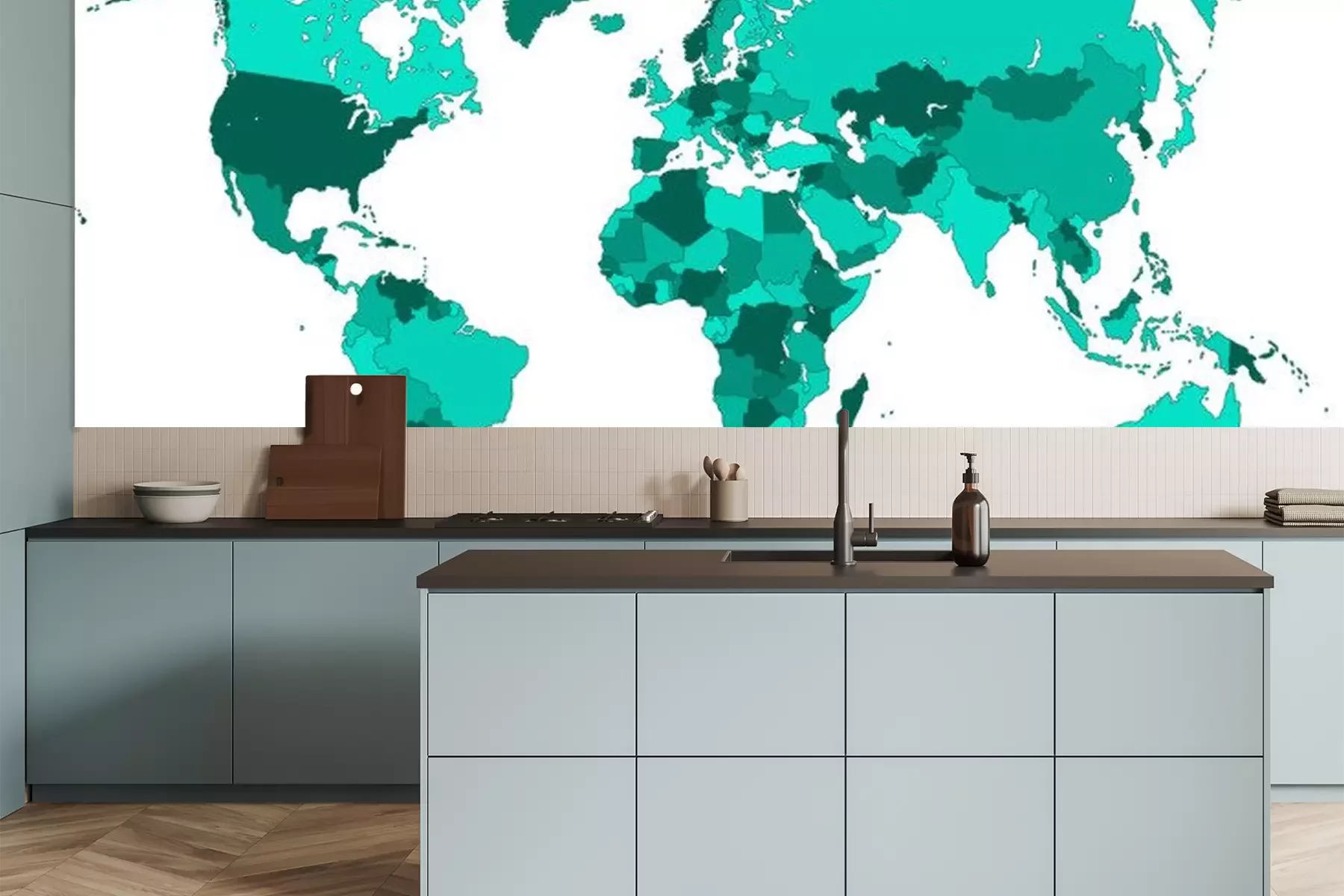 Kaart van de wereld in GreenFotobehang