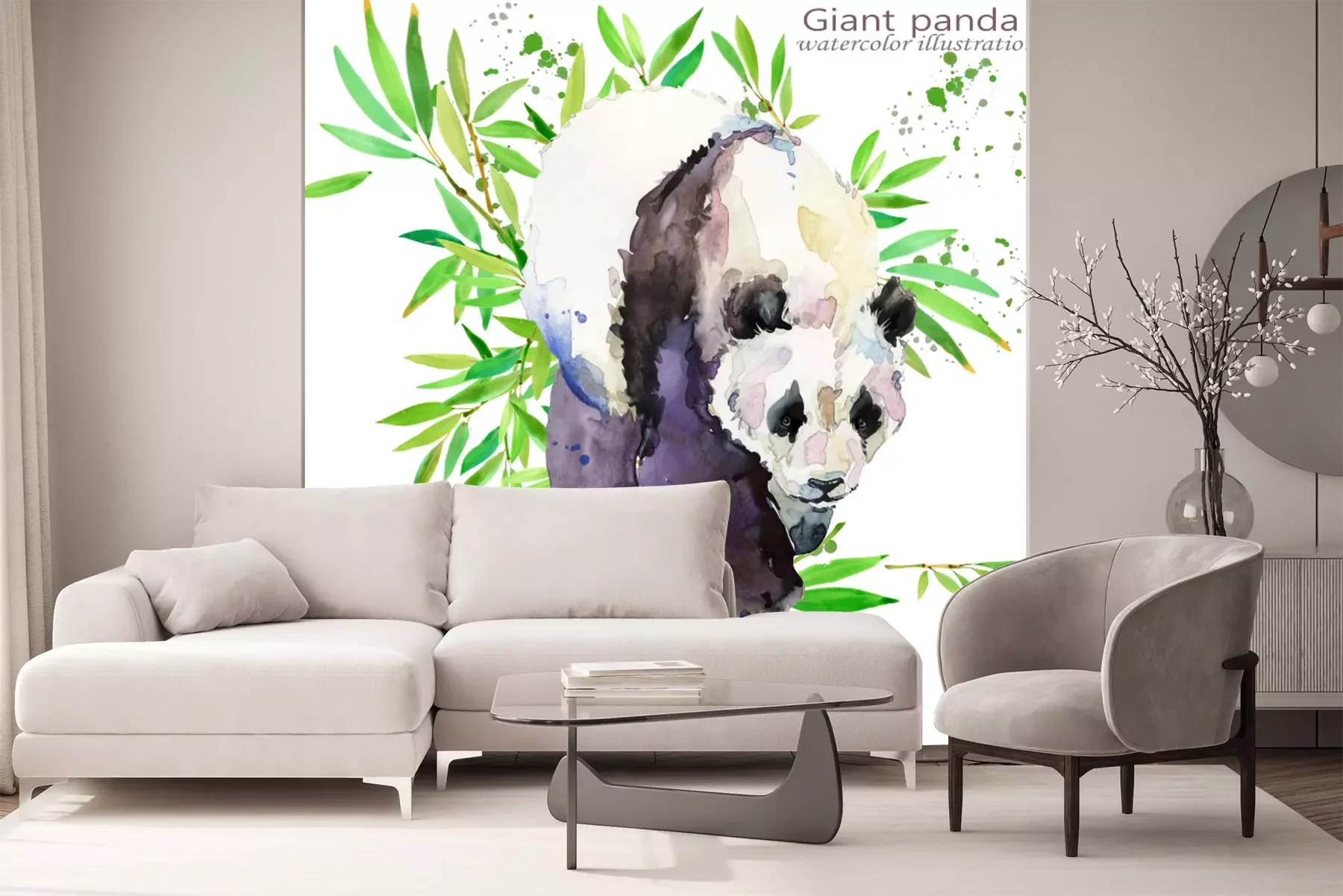 Sticker wilde Panda hand tekenen aquarel illustratie
