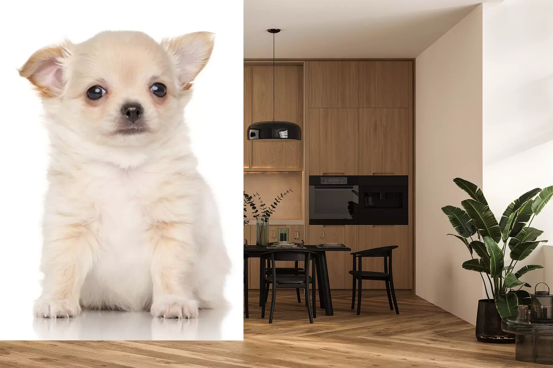 Chihuahua in een houten mandProbleemloze bezorging verzorgd door vertrouwde vervoerders