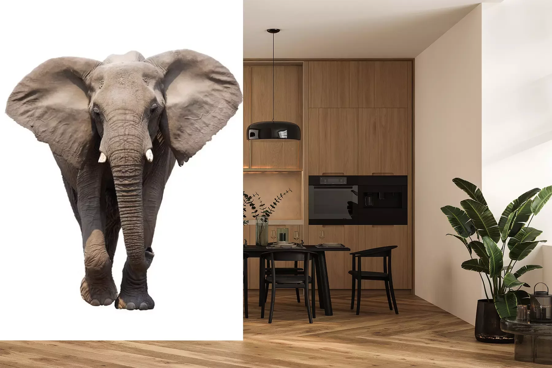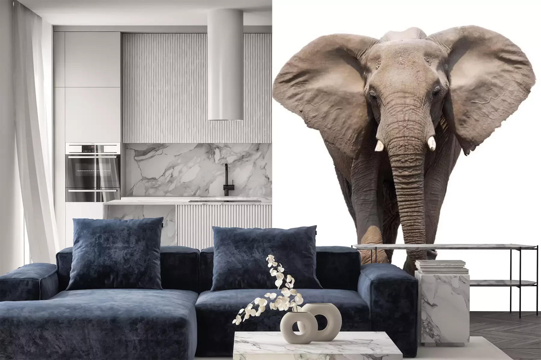 Olifant die op de weg looptFotobehang