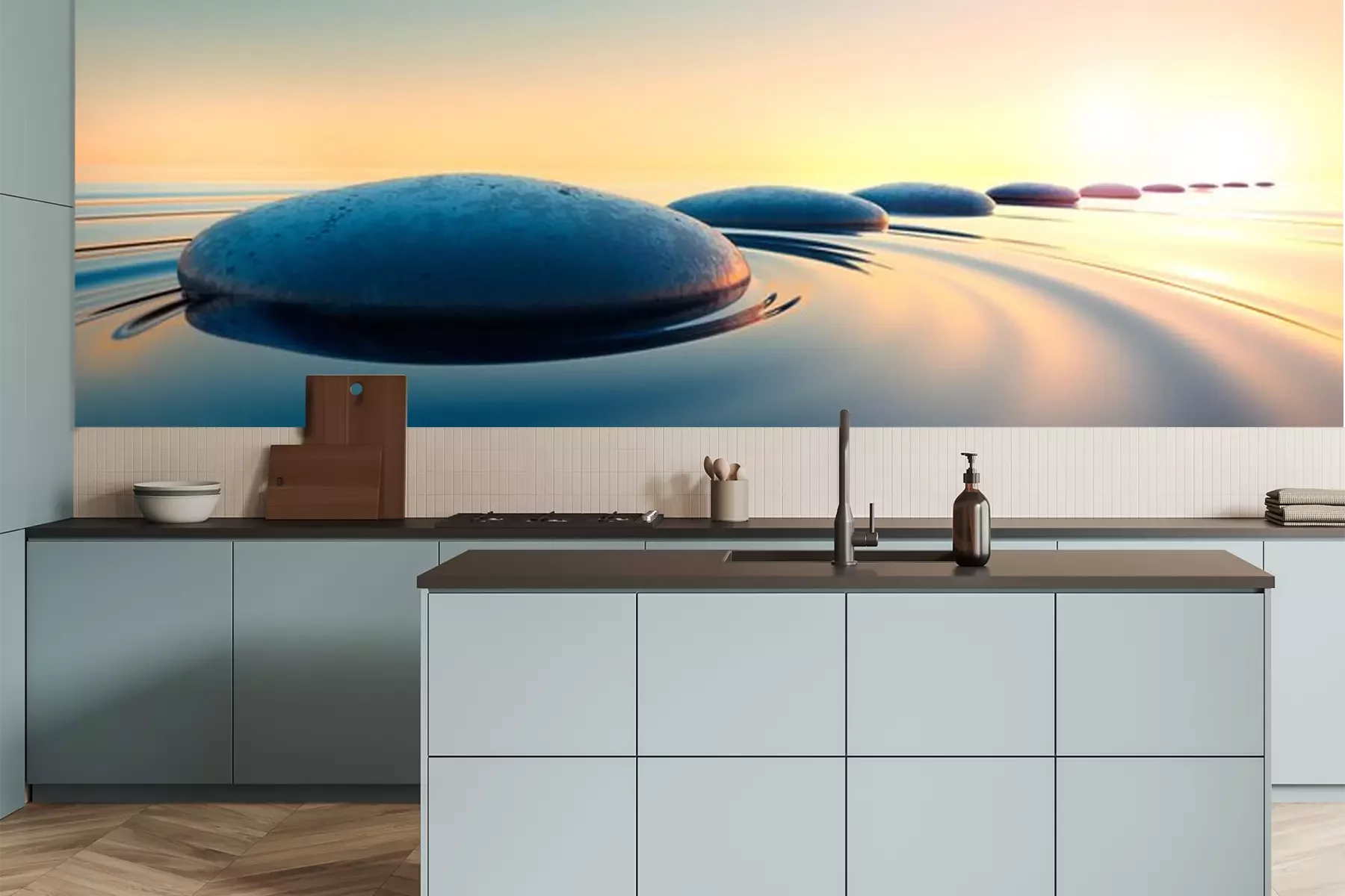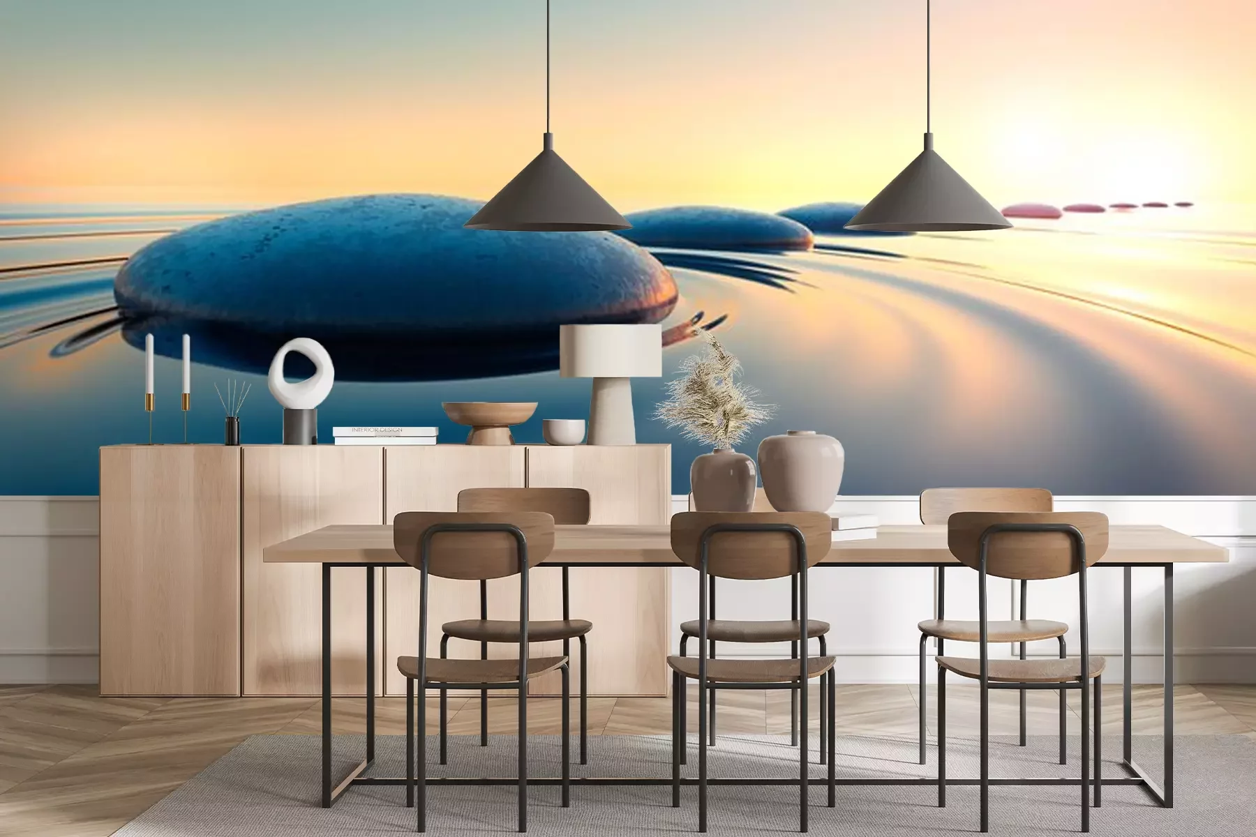 Stenen in de zeeFotobehang
