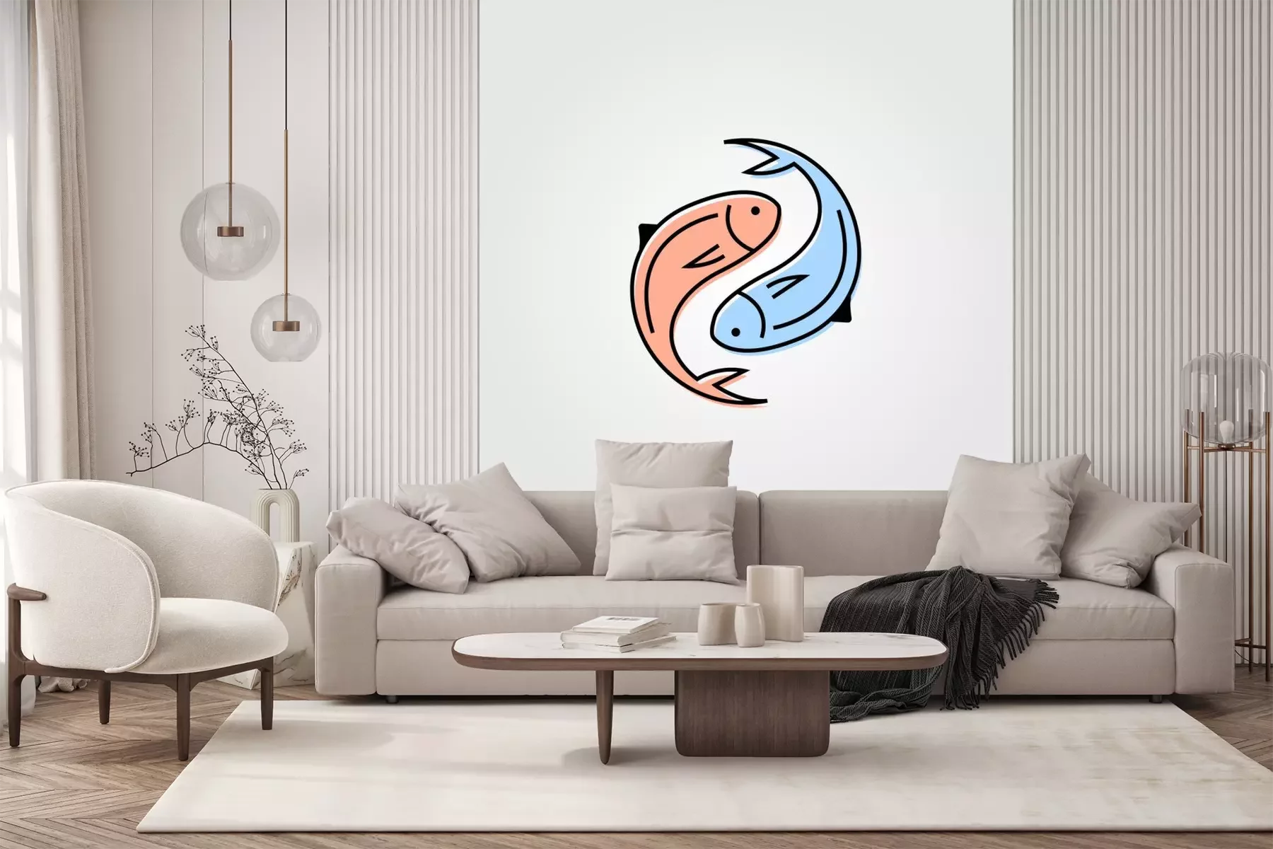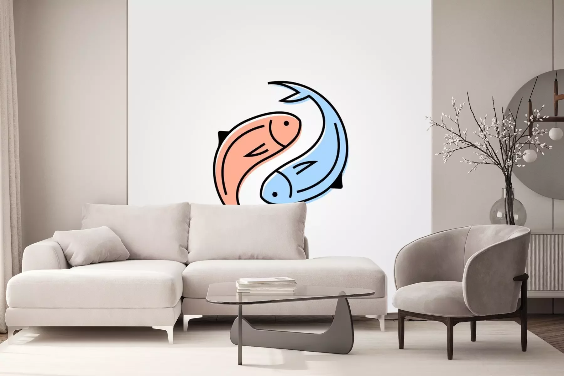 Sticker yin yang fresh fish logo label packaging vector seafood illustration