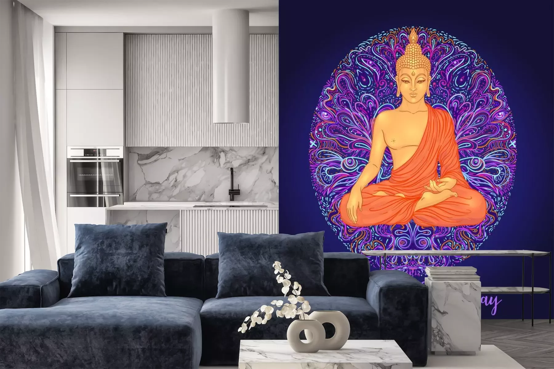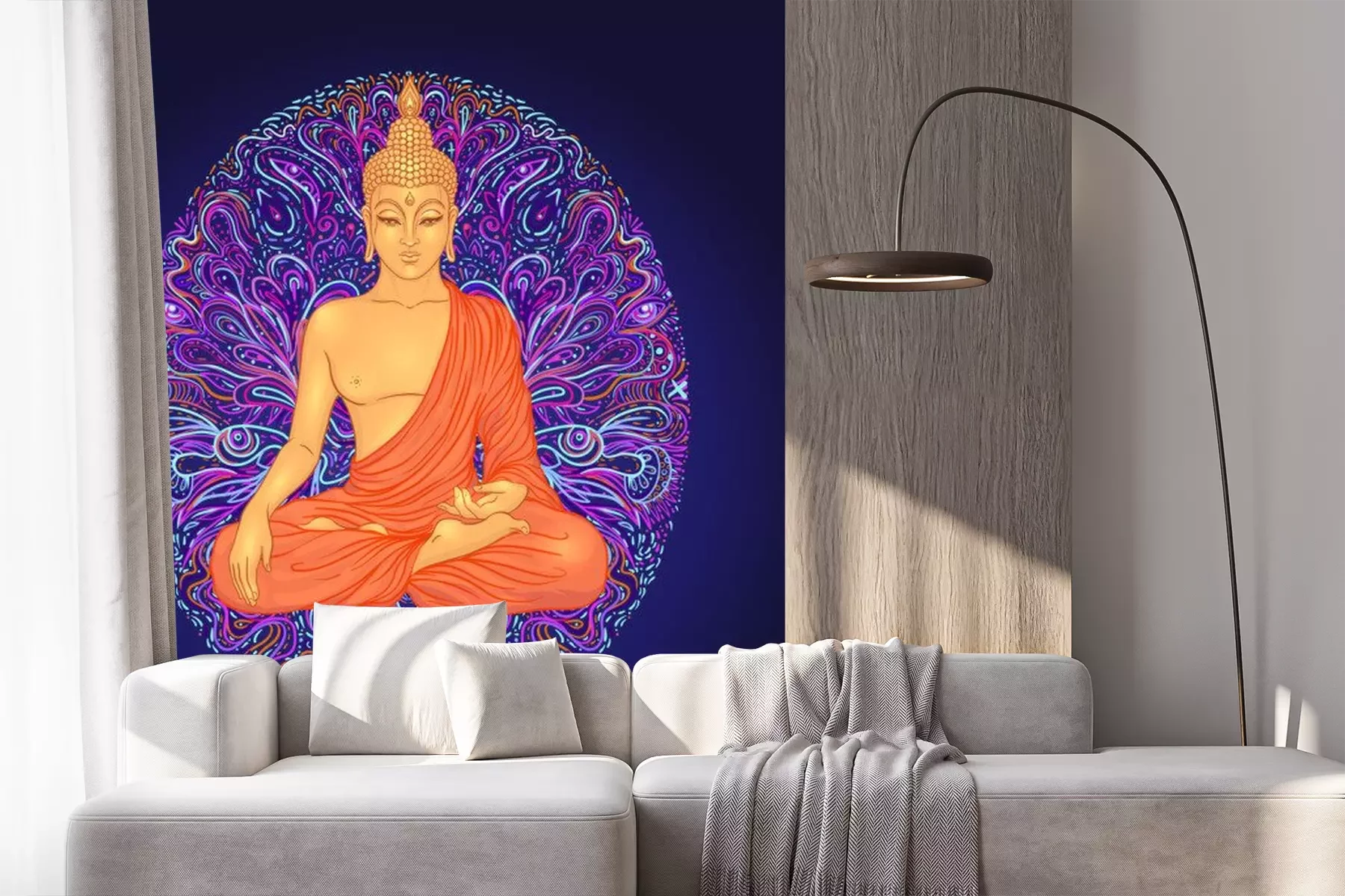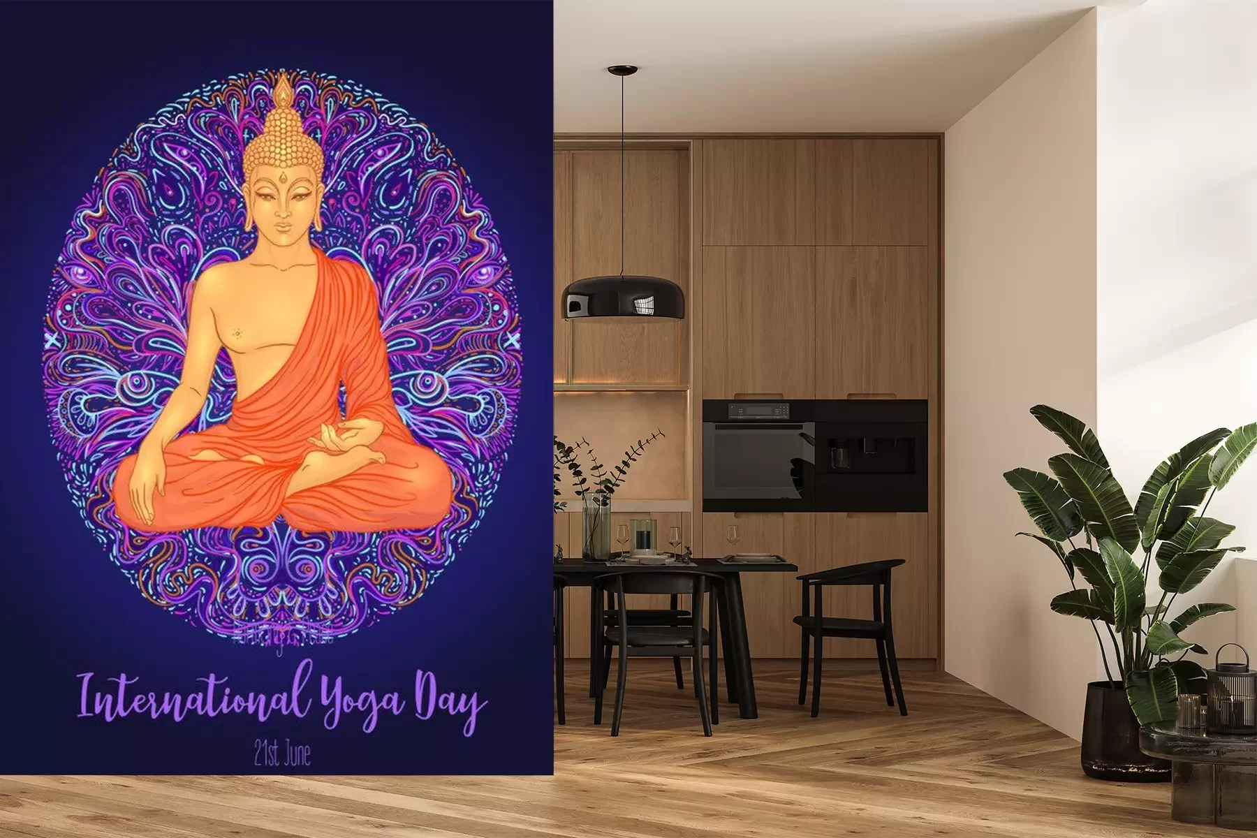 Sticker Yoga card, flyer, poster, mat design. Colorful neon template for spiritual retreat or yoga studio. Ornamental business cards, oriental pattern. Vector illustration. Sticker, patch, 60s hippie art.