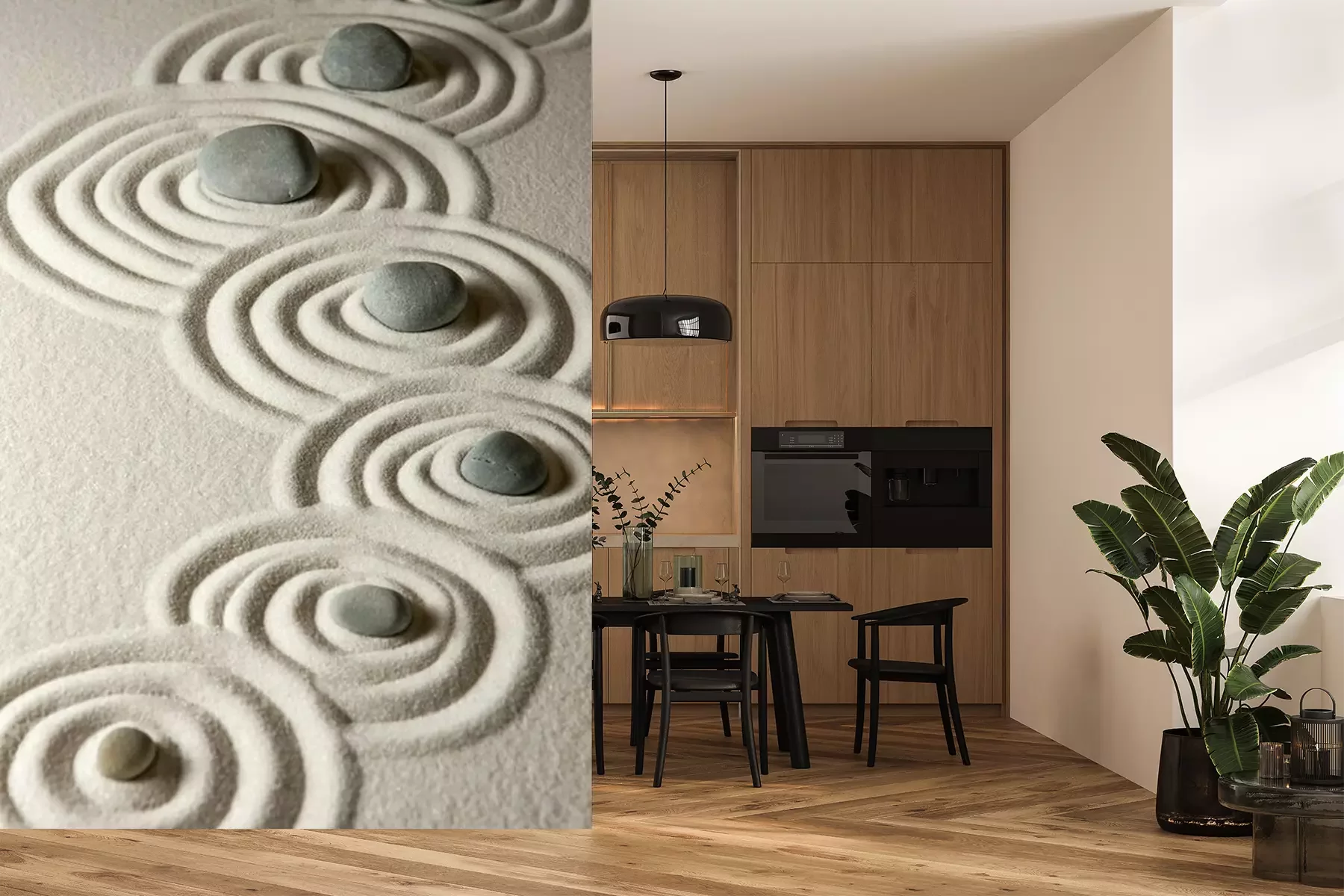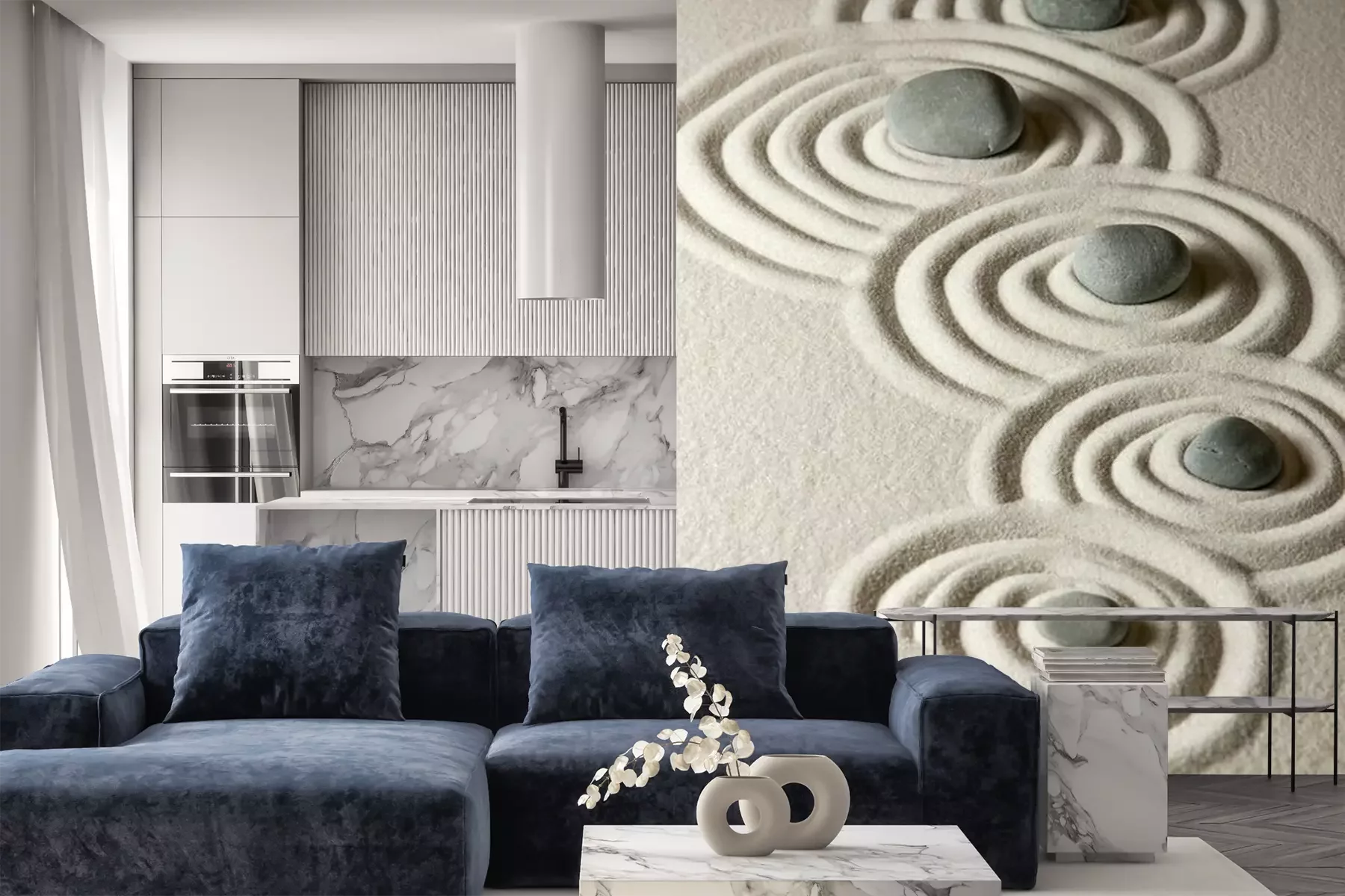Ronde stenen op een zandFotobehang