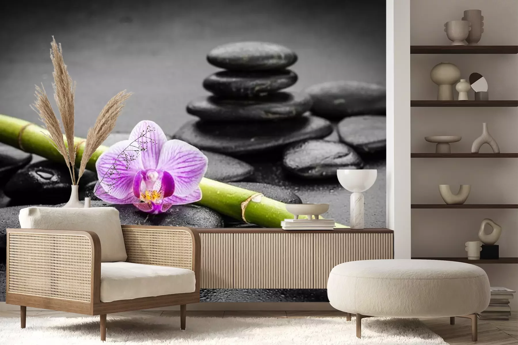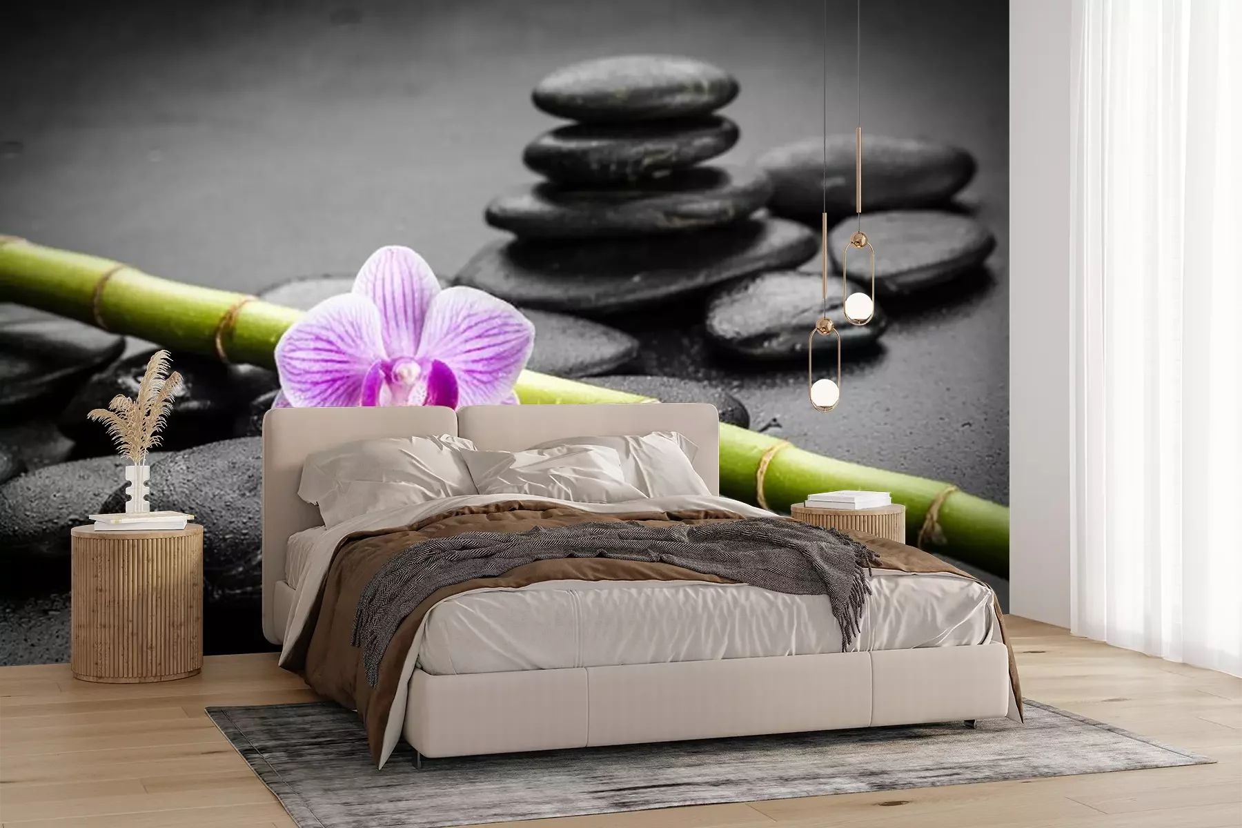 Orchideeën stenen en groene bamboeProbleemloze bezorging verzorgd door vertrouwde vervoerders